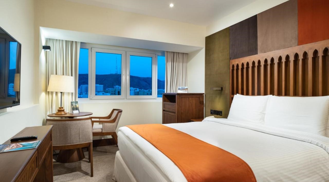 Очень хорошие впечатления. В Маскате я не первый раз, это один из лучших отелей данной категории, на мой взгляд. Выбирала не я, нас с коллегами поселила принимавшая организация, выбрав, как я понимаю, из соображений близости к месту работы. Номер стандартный, удобная кровать, по мебели и технике нареканий нет. Не очень удобная душевая - с популярной сейчас в отелях стеклянной стенкой на половину душевого пространства. На полу ожидаемо лужи. По уборке претензий нет. Дают мыло, шампунь, крем для тела. Нету тапочек и шапочки для душа. Ежедневно пополняется вода, есть чайник и чайные принадлежности. Многие, в том числе коллеги, жившие в соседних номерах, жаловались на шум и гул за окном, но лично мне не мешало, наверное, крепко сплю. Вай-фай стабильный. Очень хороший завтрак, с выбором блюд европейских и местных, в том числе горячих. Готовят яичницу на выбор. Как большой минус отмечу бассейн. В него пускают не только гостей отеля, но и всех желающих, наверное, за плату. Как результат, вечером плавать - именно плавать - в бассейне просто невозможно, он битком набит детьми, которые плещутся, играют, прыгают. Считаю это недопустимым. Если отель и предоставляет такие услуги, необходимо рассчитывать количество посетителей так, чтобы они мешали гостям отеля, это же не муниципальный бассейн. Район спокойный, правда, мало кафе и магазинов поблизости