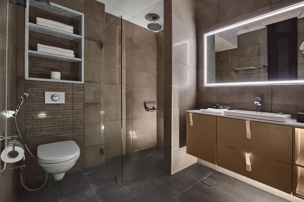 Номер включает спальню с двуспальной кроватью и гостиную с мягкой мебелью, террасу, ванная комната оснащена душем и ванной, набором фирменной косметики. В числе прочих удобств кондиционер, Wi-Fi, телевизор, мини-бар, сейф.