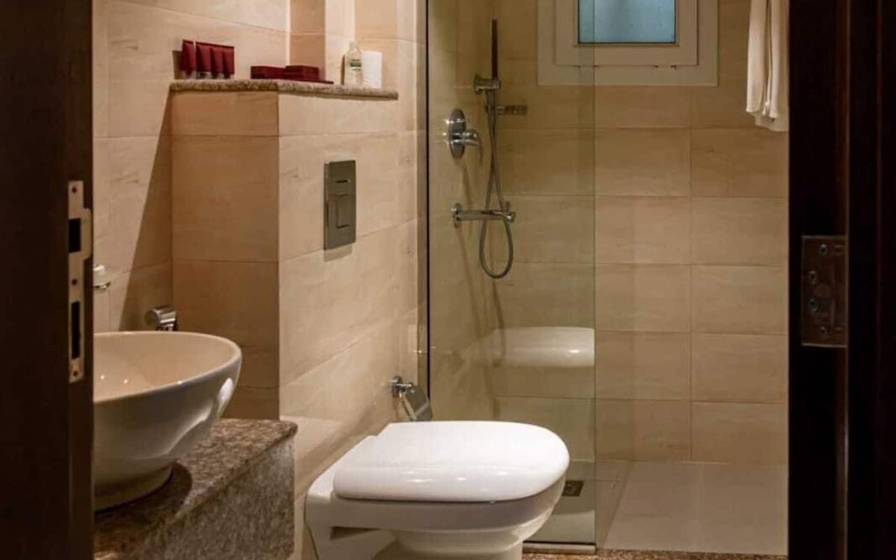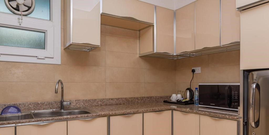 В люксе две спальни, гостиная с диваном, оборудованная кухня, три ванные комнаты с душем и балкон. В удобства включены Wi-Fi, кондиционер, телевизор, телефон, набор для приготовления чая/кофе, холодильник, микроволновая печь, туалетно-гигиенические принадлежности. Гости размещаются на одной двуспальной кровати king-size и двух двуспальных кроватях.