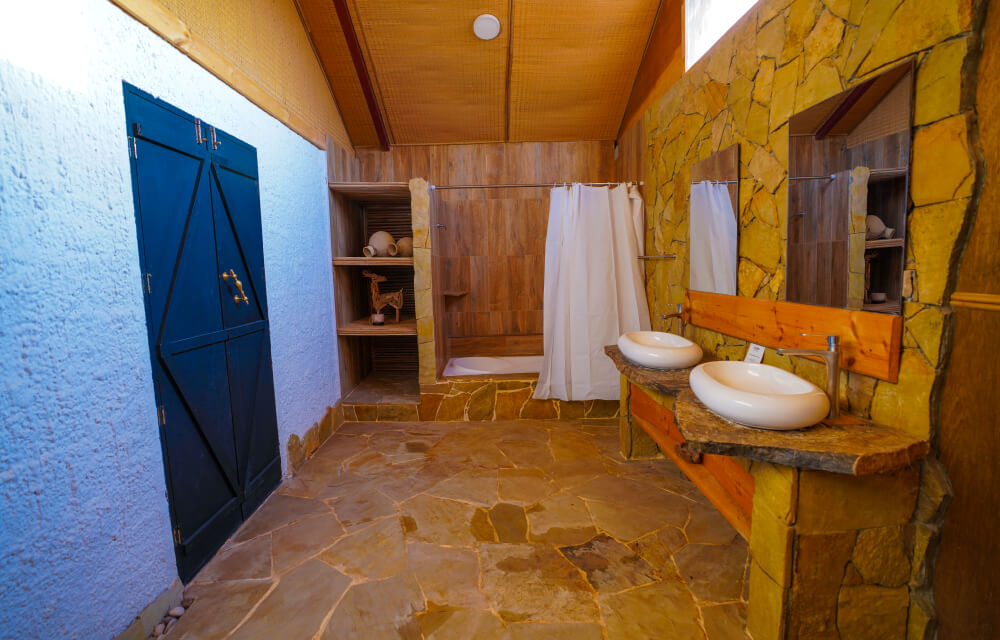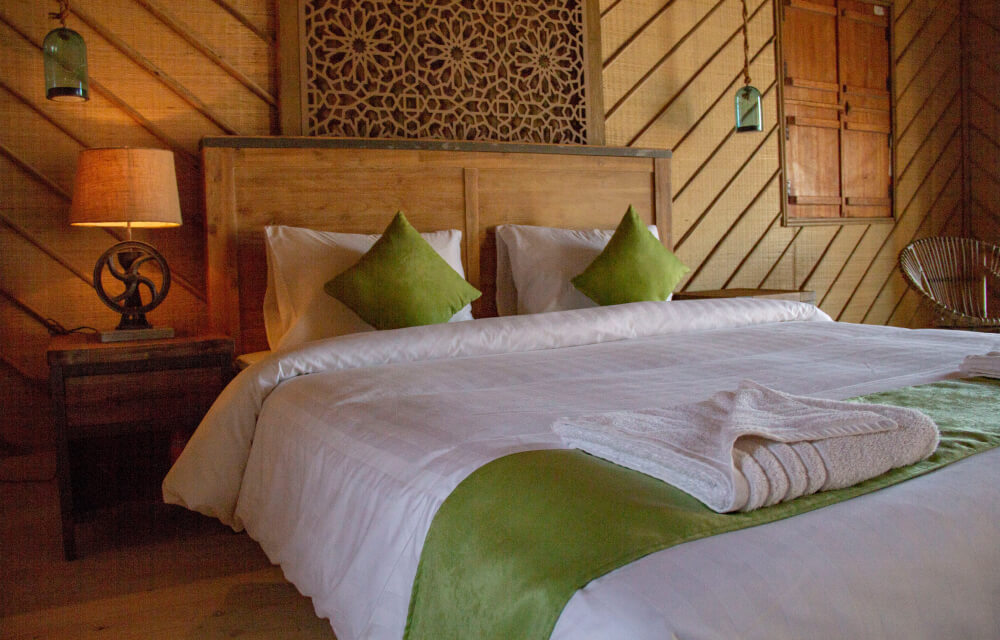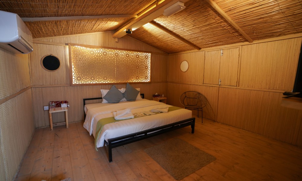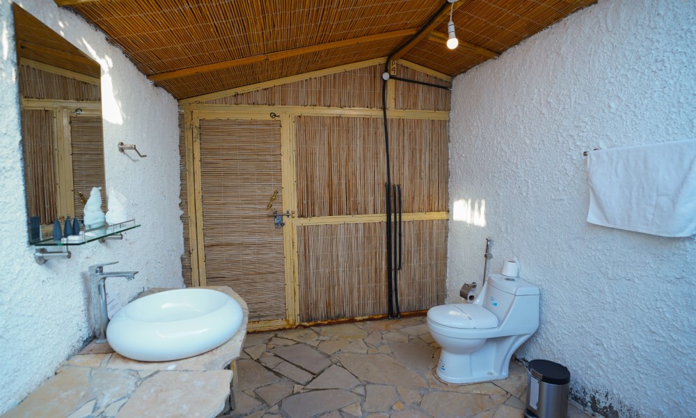 В комплектации номера зона отдыха на открытом воздухе, двуспальная кровать, кондиционер, телевизор. Ванная комната с душем.