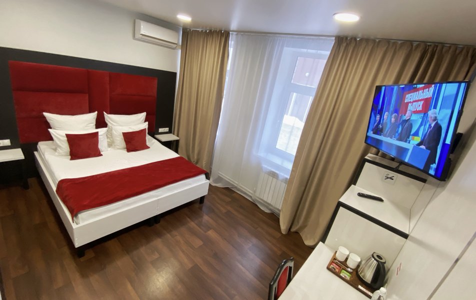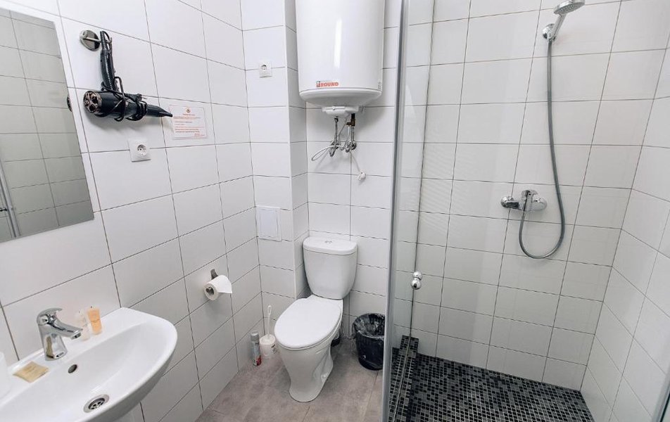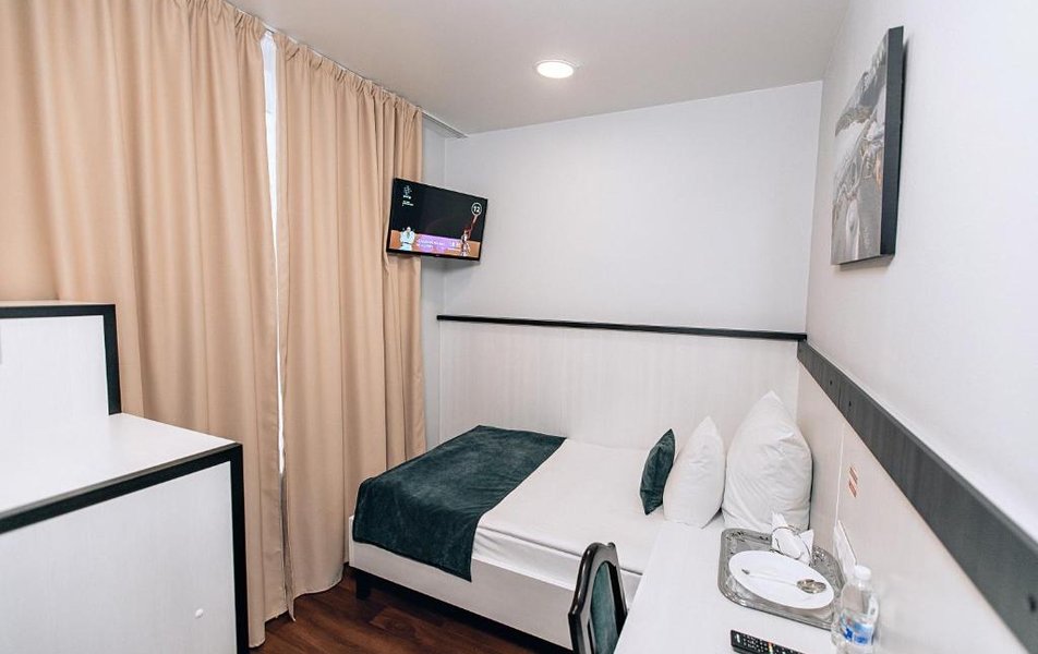 Стандартный 1-местный 1-комнатный Количество комнат: 1-комнатный Тип номера: Стандартный Кол-во основных мест: 1 Площадь (кв. м): 16 Мебель: вешалка, зеркало, кровать односпальная, прикроватная тумбочка, стол, стул, шкаф Оборудование: кондиционер, мини-холодильник, телевизор ЖК Санузел: с душем, туалетные принадлежности, фен Сервис: Wi-Fi бесплатно, смена полотенец, смена постельного белья, уборка номера