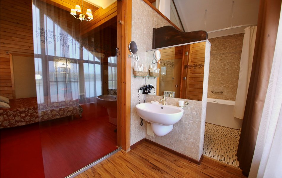 Отдыхали в «Заречье» с 1 по 5 июля , первый раз! Жили в номере стандарт (номер 3). Очень красиво, уютно , спокойно! Приятные девушки на ресепшен, помогли с культурной программой. Бесплатная парковка для клиентов. В номере все было - сейф, кондиционер, мини-бар, фен, тв, касаемо туалетных принадлежностей - все по списку! Ресторан в отеле отличный, завтракали по предложенному меню, также ходили на ужин -разнообразная кухня ! Все отлично, единственное что не удалось, это погулять - мешали огромные комары !