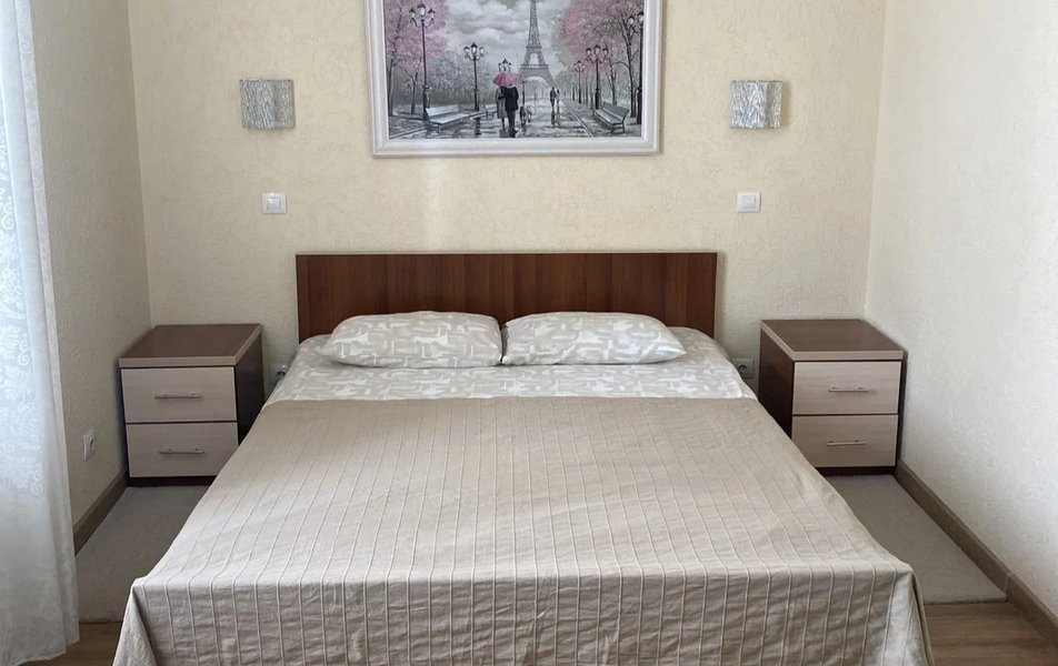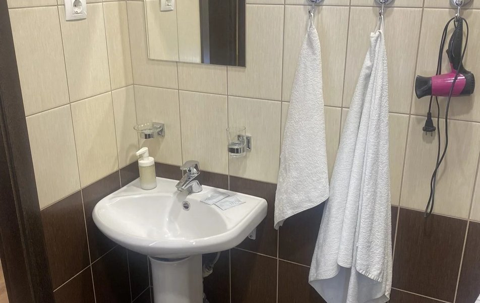 Полулюкс 2-местный Количество комнат: 2-комнатный Тип номера: Полулюкс Кол-во доп. мест: 2 Кол-во основных мест: 2 Площадь (кв. м): 30 Мебель: диван, кровать двуспальная, прикроватные тумбочки, стол, стулья, шкаф Оборудование: кондиционер, микроволновая печь, телевизор, холодильник, чайный набор посуды, электрочайник Санузел: с душем, туалетные принадлежности, фен Сервис: Wi-Fi бесплатно, смена полотенец: ежедневно, смена постельного белья: 1 раз в 3 дня, уборка номера: ежедневно