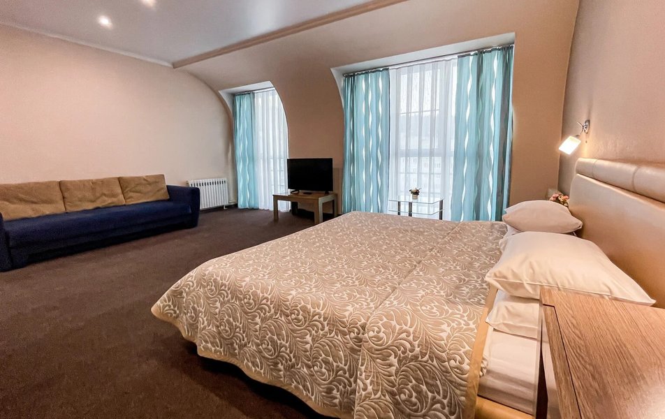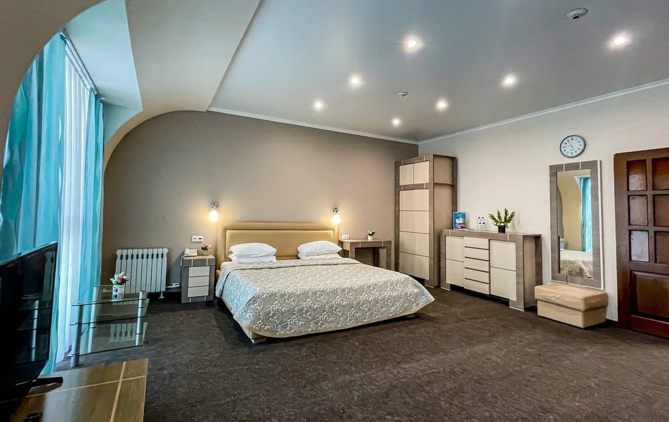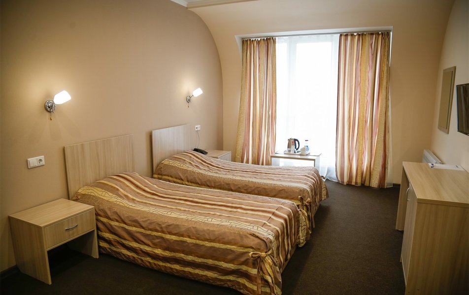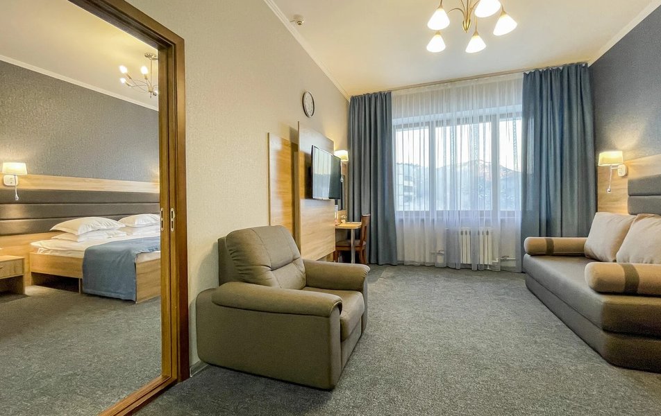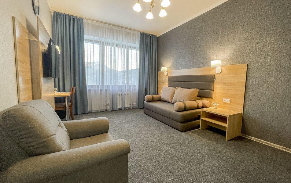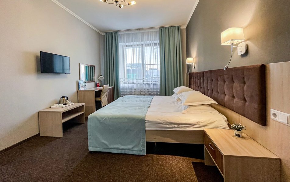 Приехали по короткой трех дневной программе В цену проживание включается еще несколько процедур. А также трех разовое питание (шведский стол) ️ Номера чистые На кроватях хорошие матрасы ️ Персонал приветливый В гостинице присутствует детская игровая комната с няней Взрослая игровая с настольным теннисом и бильярдом На первом этаже есть ресторан (была даже живая музыка) Тренажерный зал! ️️ А главное!!! Для всех гостей хоть на весь день доступен Аква Парк с разнообразными саунами и джакузи!! Вообщем можно не покидать территории гостиницы и получать все необходимое! Рекомендую