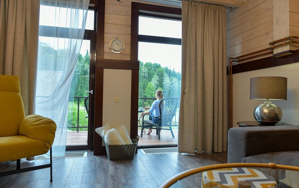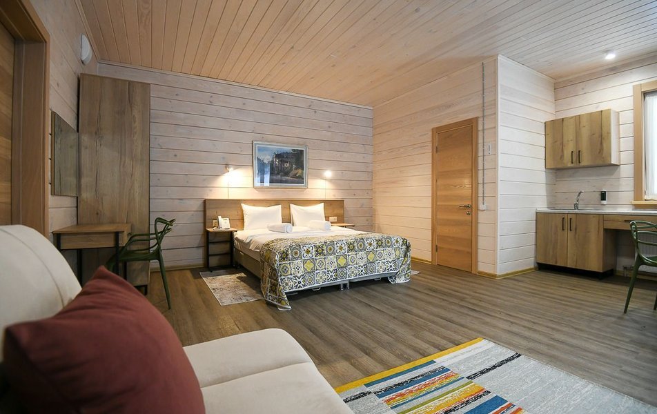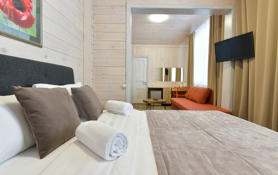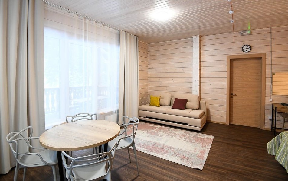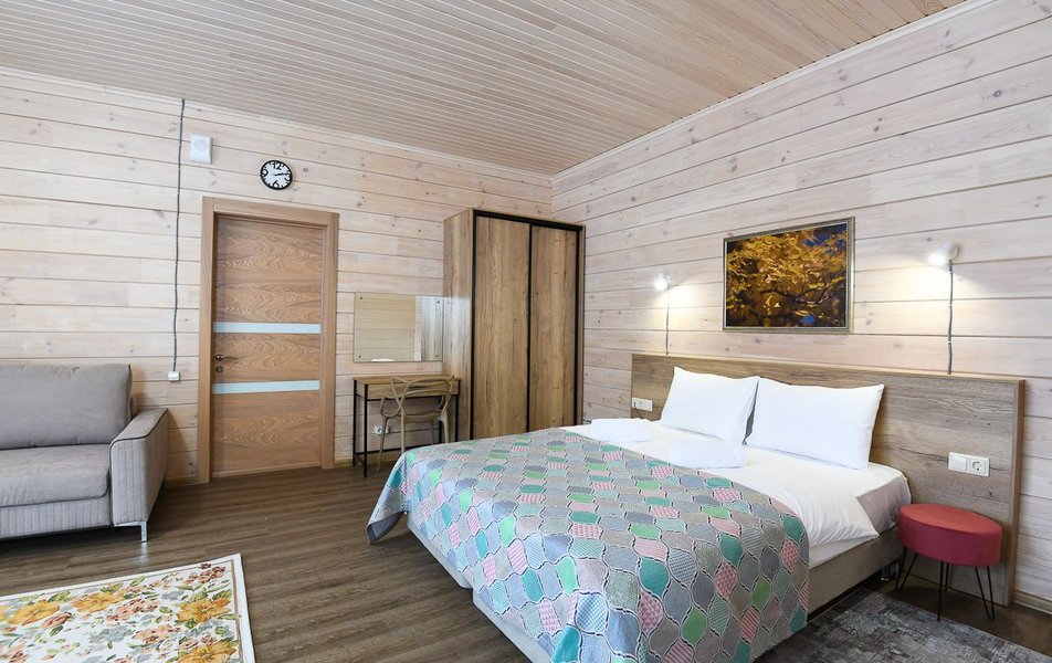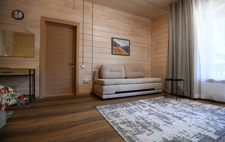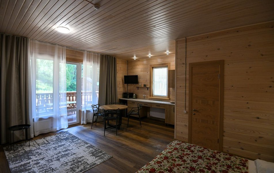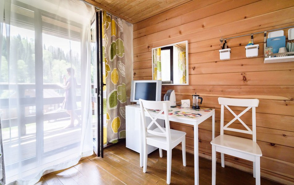 КРАСИВОЕ МЕСТО СО СЛАБЫМ СЕРВИСОМ Отдыхали семьей из 4 человек (два взрослых и два ребенка) в период с 10 по 17 июля 2023 года. Из плюсов: красивое месторасположение, шум горной речки, ухоженная территория, везде скамейки, качели. Неплохое оснащение номера (жили в коттедже "Прибрежный"), за некоторым ВАЖНЫМ исключением, о чем ниже. Есть возможность бесплатно посещать открытый бассейн в санатории Россия, правда об этом на ресепшене не говорят, узнали случайно. В жару спасались в этом бассейне Из минусов: достаточно высокие цены, причем неоправданно высокие. Мы жили в прибрежном коттедже (второй этаж , №3). За 7 суток отдали без малого 90 тысяч. А в номере нет ни то что кондиционера, а даже вентилятора!!! На ресепшене также подтвердили отсутствие вентиляторов, хотя у самого администратора он стоял. Ну, не так же это дорого, сложно закупить вентилятор в каждый номер? Температура на улице около 40С, в номере - как в финской сауне. Только вечером можно нормально дышать, когда температура на улице падает. Завтраки - питание среднее, не особо разнообразное: каша, яйца, макароны, колбаски, в какие-то дни вместо этого была крылышки, фрикадельки. Но голодным не останетесь. Однако большие очереди , в какое бы время не пришел, что также говорит о низком уровне организации, официанты бегают в мыле, не успевают, места в основном зале всегда не хватает. Насколько я понял, эта проблема далеко не первый год. При этом в большом зале, где много места, столы стоят по краям стен, не накрытые. Отдельная фишка - работа ресторана до 19:00))) А чего не до 14:00? Не фиг гостям питаться после 18:00, худейте, ЗОЖ )))) Но если серьезно, бред редкостный, после 19:00 люди в рестораны начинают только подтягиваться.
