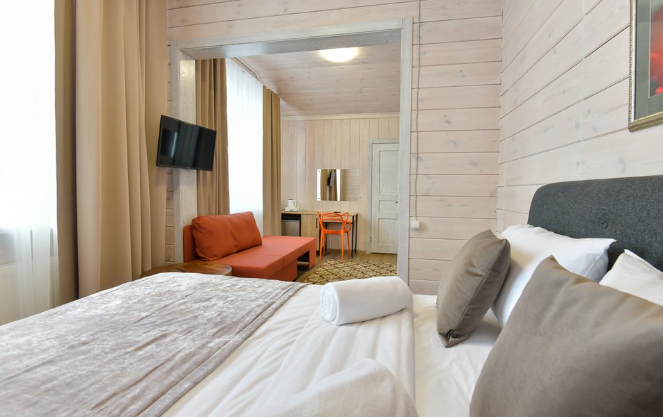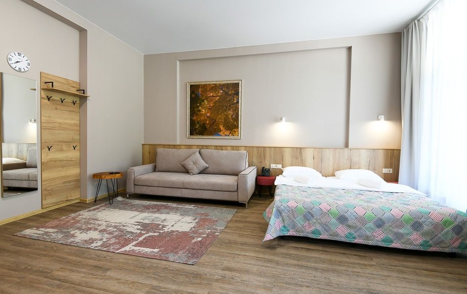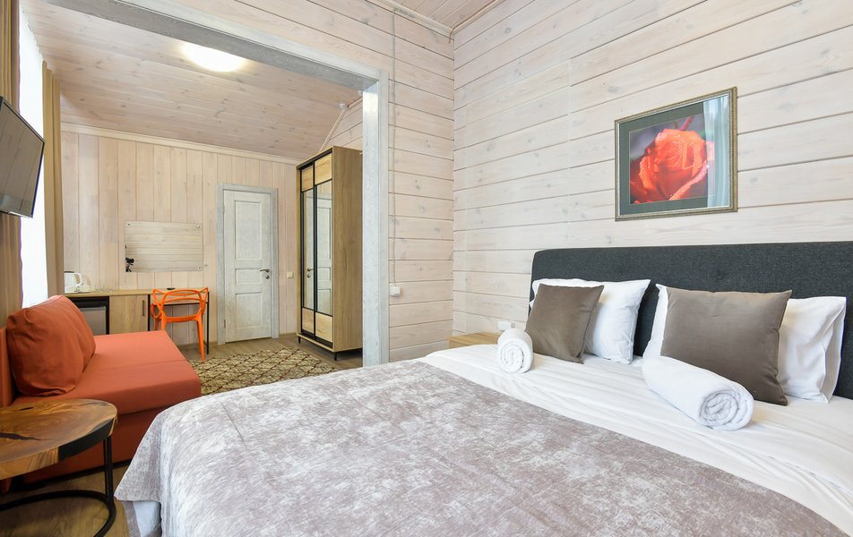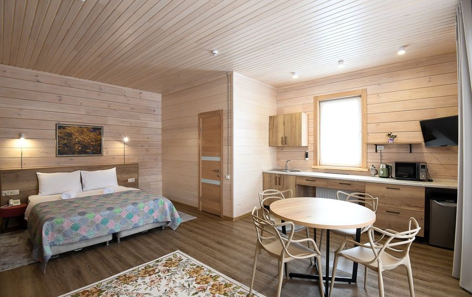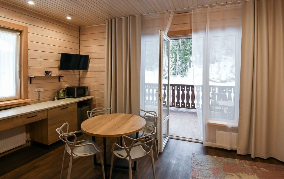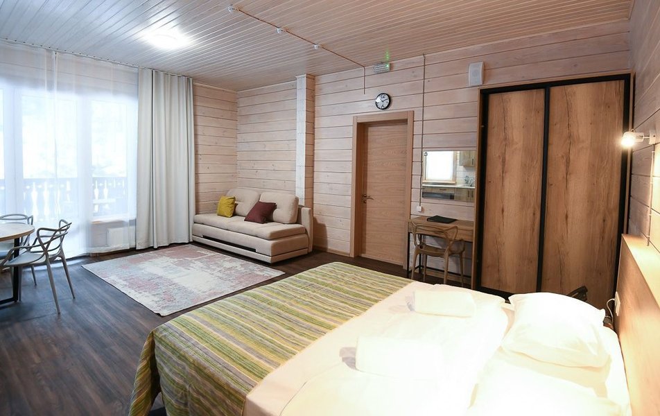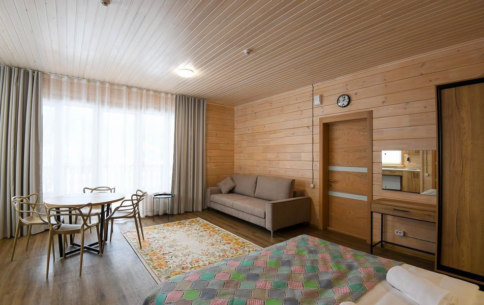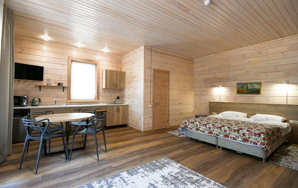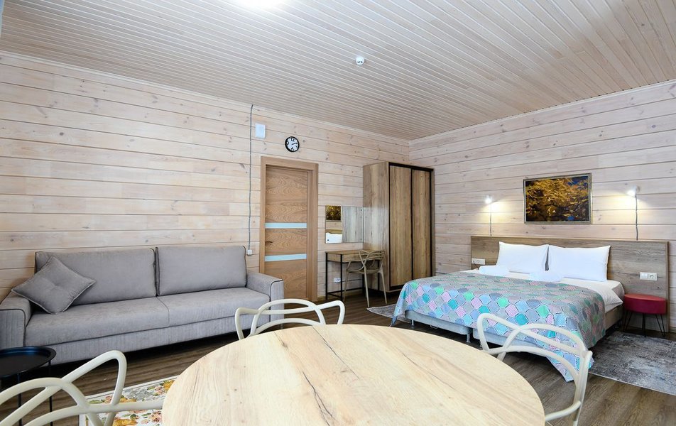КРАСИВОЕ МЕСТО СО СЛАБЫМ СЕРВИСОМ Отдыхали семьей из 4 человек (два взрослых и два ребенка) в период с 10 по 17 июля 2023 года. Из плюсов: красивое месторасположение, шум горной речки, ухоженная территория, везде скамейки, качели. Неплохое оснащение номера (жили в коттедже "Прибрежный"), за некоторым ВАЖНЫМ исключением, о чем ниже. Есть возможность бесплатно посещать открытый бассейн в санатории Россия, правда об этом на ресепшене не говорят, узнали случайно. В жару спасались в этом бассейне Из минусов: достаточно высокие цены, причем неоправданно высокие. Мы жили в прибрежном коттедже (второй этаж , №3). За 7 суток отдали без малого 90 тысяч. А в номере нет ни то что кондиционера, а даже вентилятора!!! На ресепшене также подтвердили отсутствие вентиляторов, хотя у самого администратора он стоял. Ну, не так же это дорого, сложно закупить вентилятор в каждый номер? Температура на улице около 40С, в номере - как в финской сауне. Только вечером можно нормально дышать, когда температура на улице падает. Завтраки - питание среднее, не особо разнообразное: каша, яйца, макароны, колбаски, в какие-то дни вместо этого была крылышки, фрикадельки. Но голодным не останетесь. Однако большие очереди , в какое бы время не пришел, что также говорит о низком уровне организации, официанты бегают в мыле, не успевают, места в основном зале всегда не хватает. Насколько я понял, эта проблема далеко не первый год. При этом в большом зале, где много места, столы стоят по краям стен, не накрытые. Отдельная фишка - работа ресторана до 19:00))) А чего не до 14:00? Не фиг гостям питаться после 18:00, худейте, ЗОЖ )))) Но если серьезно, бред редкостный, после 19:00 люди в рестораны начинают только подтягиваться.