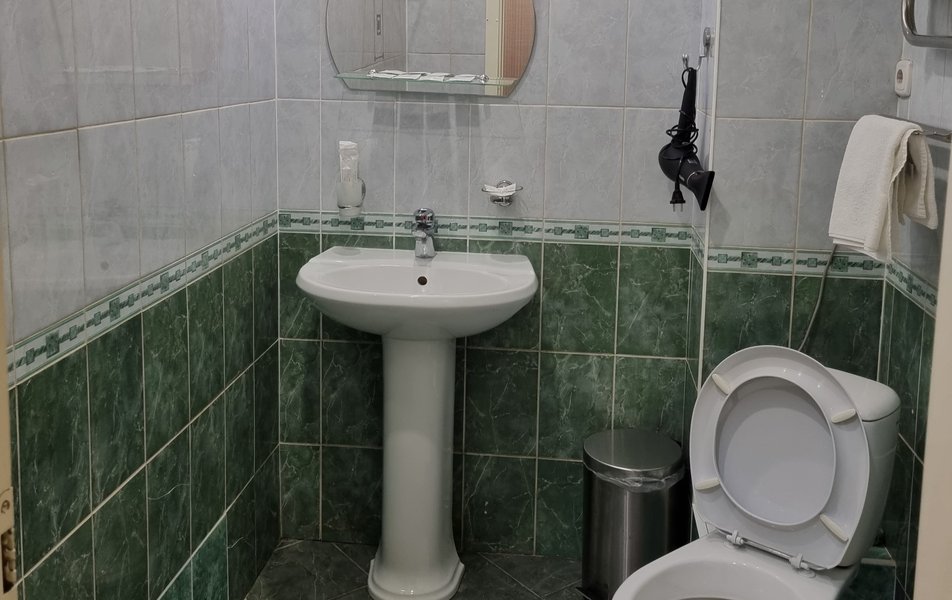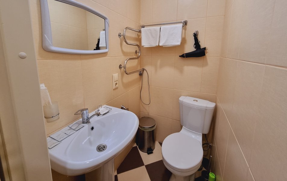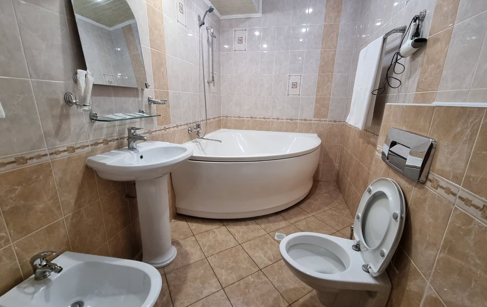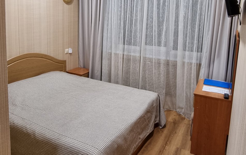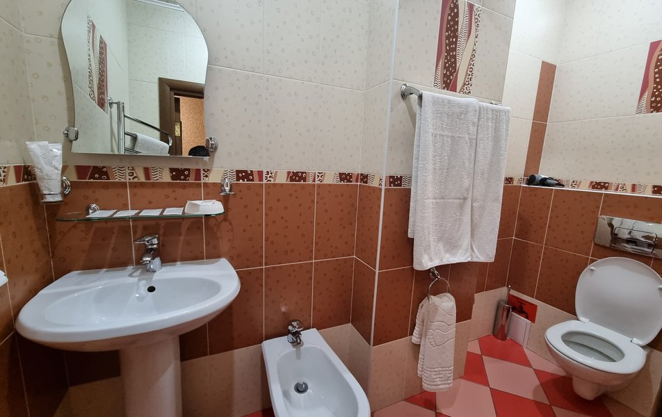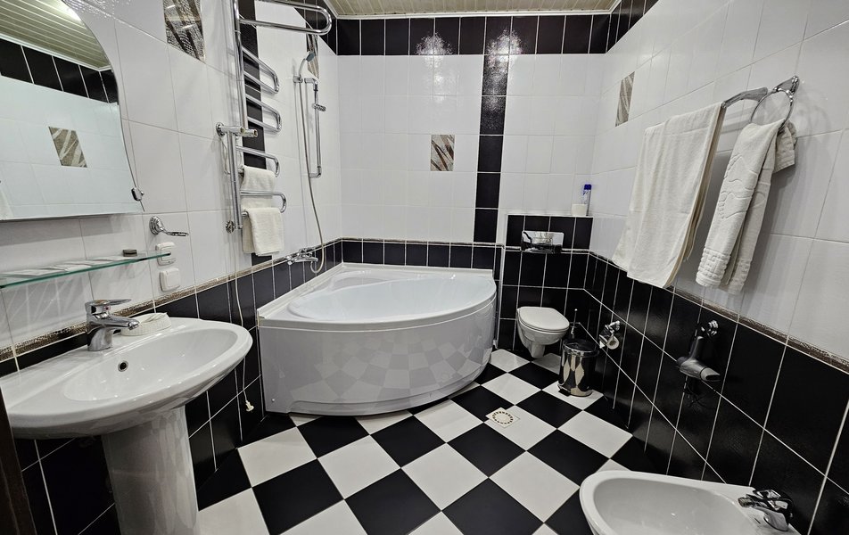 Люкс 2-местный 2-комнатный (№207) Количество комнат: 2-комнатный Тип номера: Люкс Дополнительное место: диван Кол-во доп. мест: 2 Кол-во основных мест: 2 Площадь (кв. м): 38 Мебель: диван раскладной, кресла, кровать двуспальная, прикроватные тумбочки, стол, стул, шкаф Оборудование: набор посуды, телевизор, телефон, холодильник, электрочайник Санузел: 2 санузла, с ванной, тапочки, туалетные принадлежности, халат Сервис: Wi-Fi бесплатно, смена полотенец, смена постельного белья, уборка номера, услуги внутренней телефонной связи