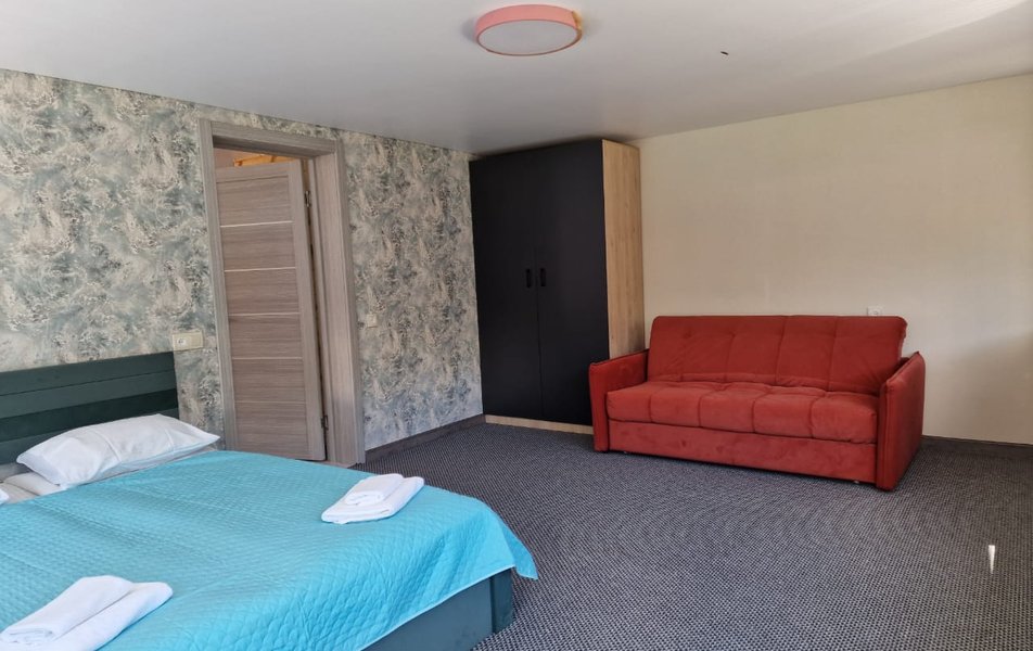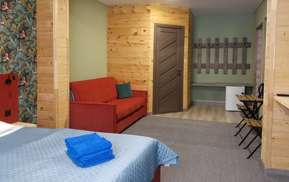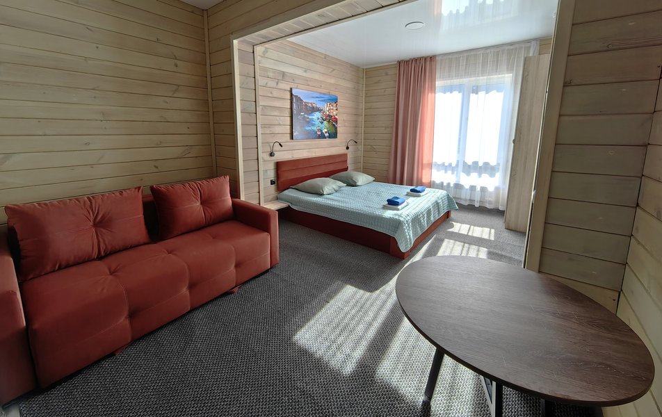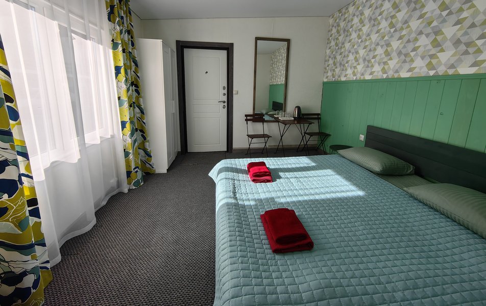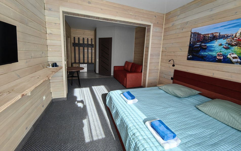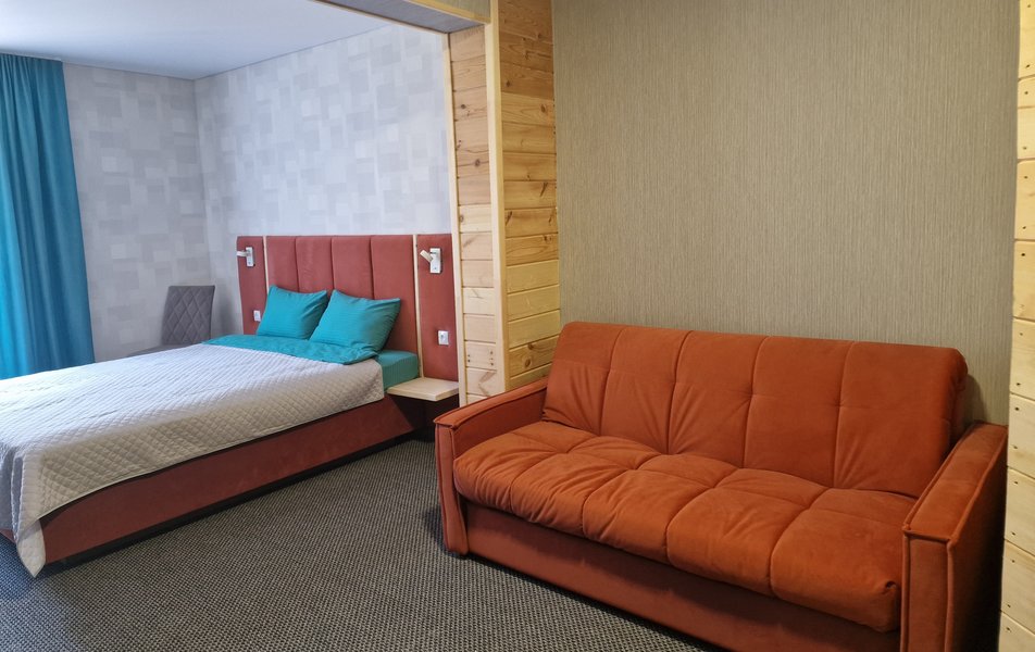 Делюкс 2-местный 2-комнатный Количество комнат: 2-комнатный Тип номера: Делюкс Дополнительное место: диван Кол-во доп. мест: 2 Кол-во основных мест: 2 Площадь (кв. м): 36 Этаж: 3 Мебель: диван раскладной, кровать двуспальная, стол, стулья, шкаф Оборудование: телевизор ЖК, холодильник, чайный набор посуды, электрочайник Санузел: с душем, фен Сервис: Wi-Fi бесплатно, смена полотенец, смена постельного белья, уборка номера