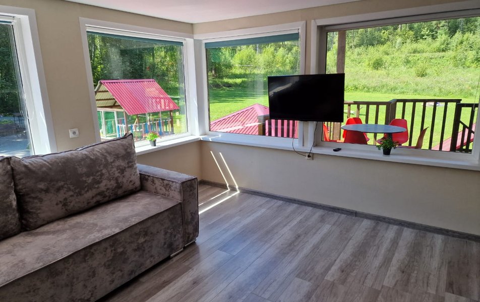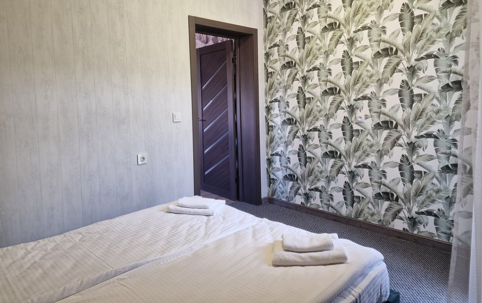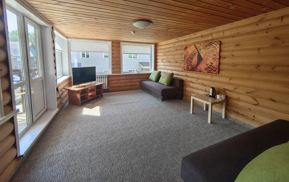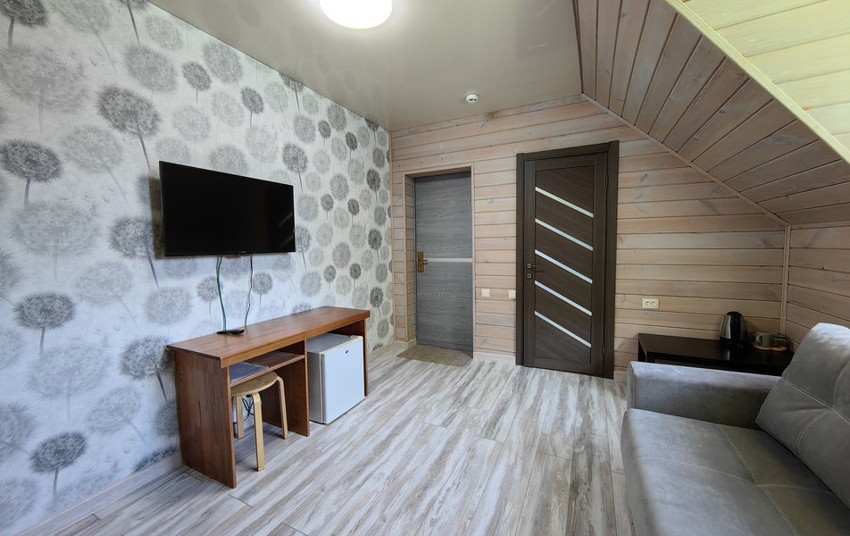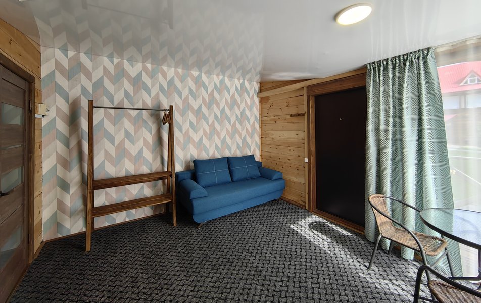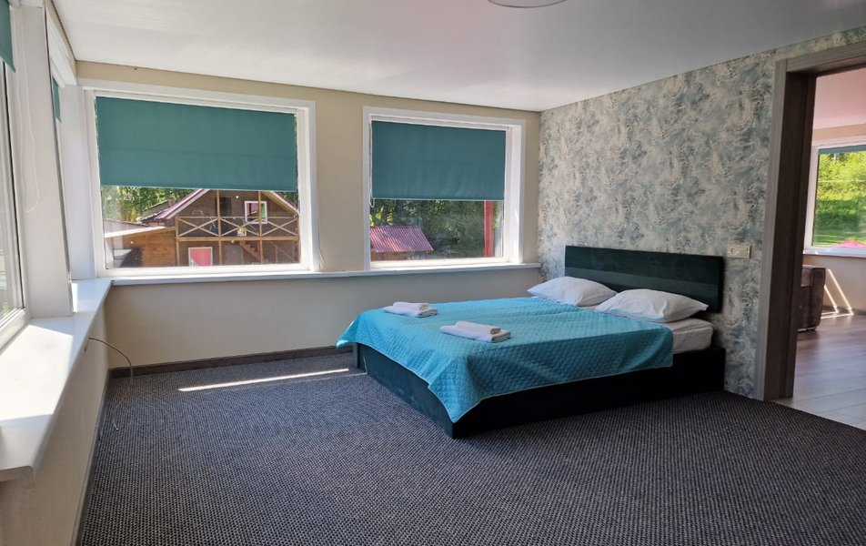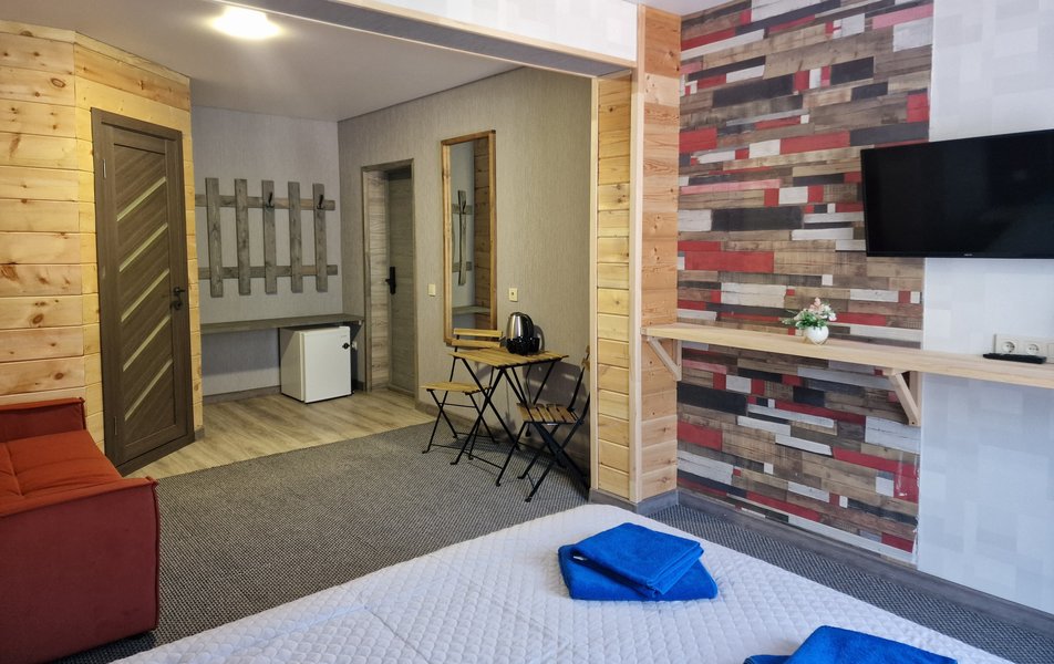 Делюкс 2-местный 2-комнатный Количество комнат: 2-комнатный Тип номера: Делюкс Дополнительное место: диван Кол-во доп. мест: 2 Кол-во основных мест: 2 Площадь (кв. м): 36 Этаж: 3 Мебель: диван раскладной, кровать двуспальная, стол, стулья, шкаф Оборудование: телевизор ЖК, холодильник, чайный набор посуды, электрочайник Санузел: с душем, фен Сервис: Wi-Fi бесплатно, смена полотенец, смена постельного белья, уборка номера