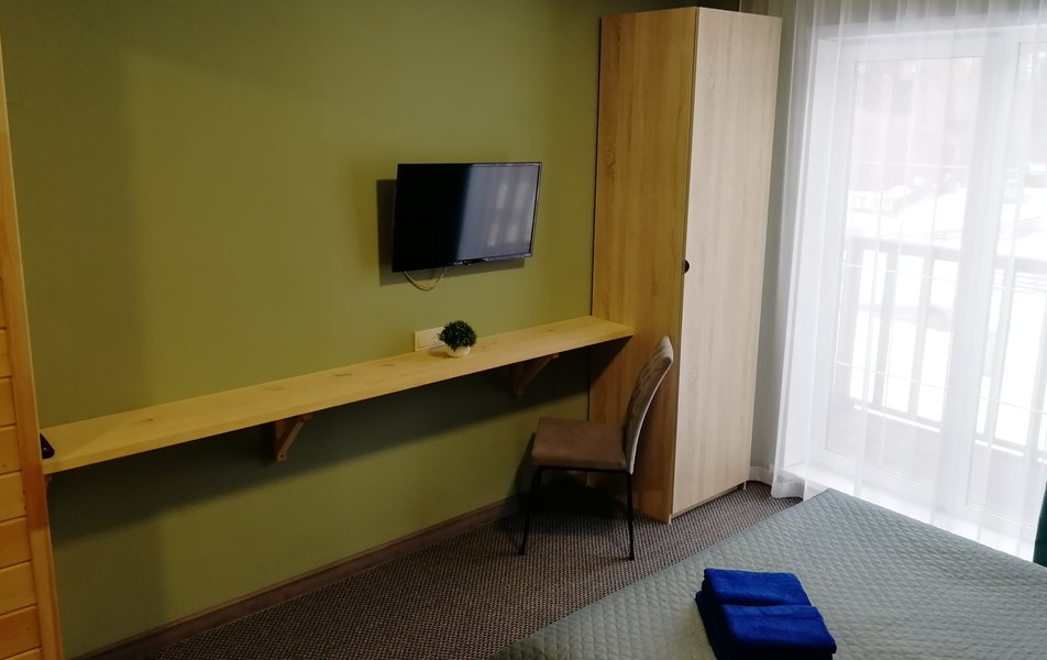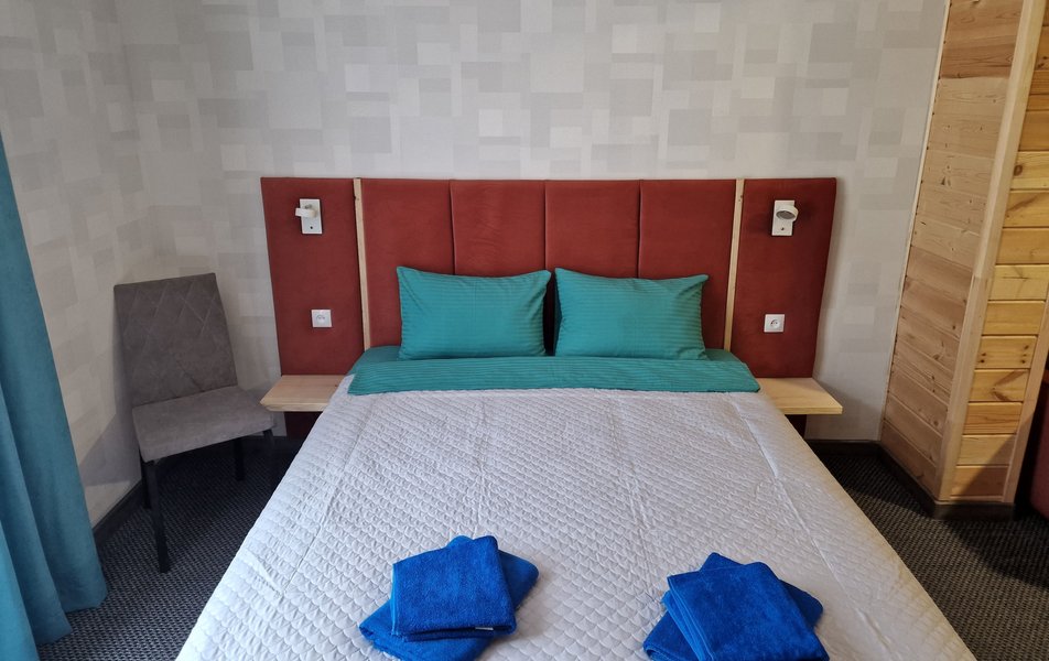 Делюкс 2-местный (с балконом) Количество комнат: 1-комнатный Тип номера: Делюкс Дополнительное место: диван Кол-во доп. мест: 2 Кол-во основных мест: 2 Площадь (кв. м): 25 Этаж: 2 Мебель: вешалка, диван раскладной, кровать двуспальная, прикроватные тумбочки, стол, стулья, шкаф Оборудование: телевизор ЖК, холодильник, чайный набор посуды, электрочайник Санузел: с душем, фен Сервис: Wi-Fi бесплатно, смена полотенец, смена постельного белья, уборка номера