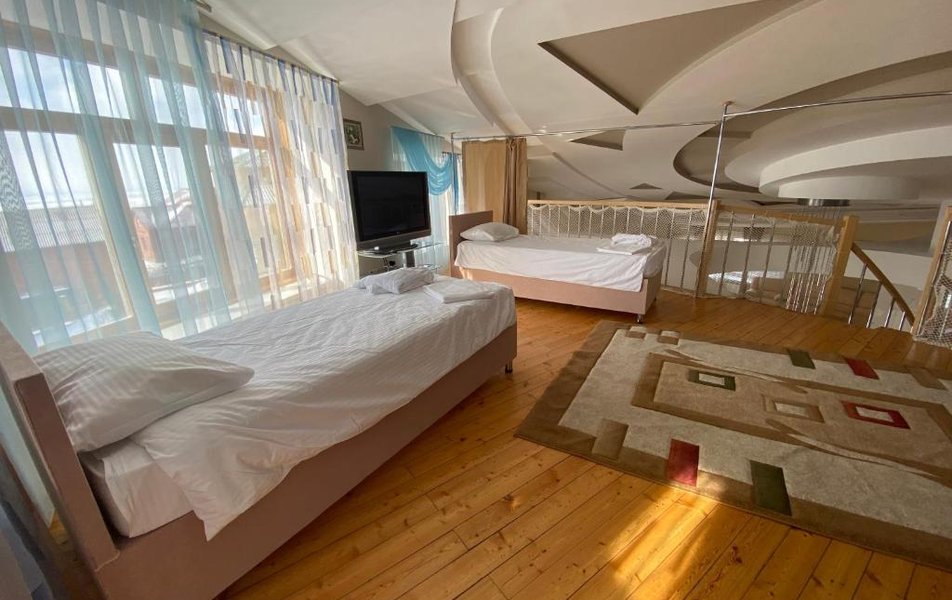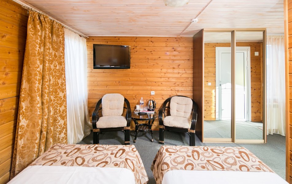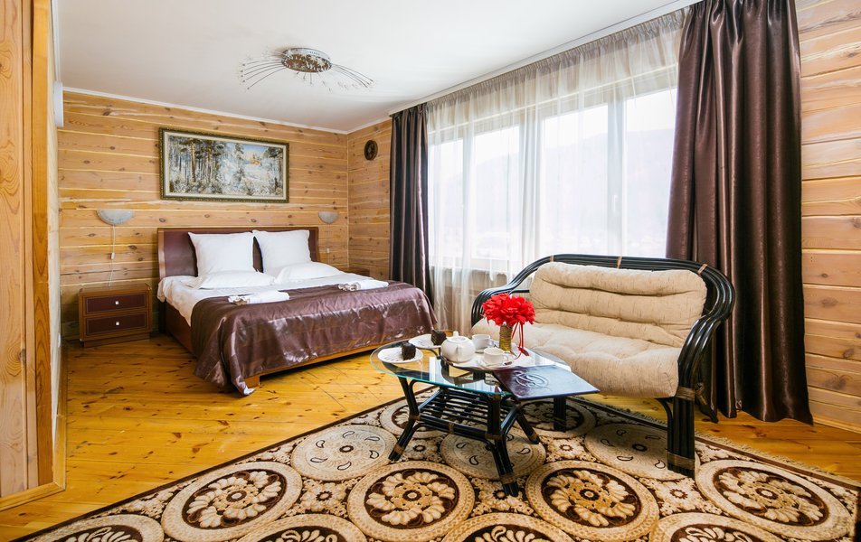 Ужасно все. Начиная с сайта . Приезжаешь и администрация в одном месте , корпус внизу ( нам попался) идти зимой не мало. Номера -диван весь в пятнах, ковровое покрытие на полу давно поменять нужно . Но это все мелочи ... мы заехали с 29 декабря по 2 января . Также забронировали стол на 7 человек в новогоднюю ночь в ресторане с программой. Вот с 29 декабря по 31 мы ужинали в ресторане и еда была вкусная. И мы все вечером 31 декабря пошли за праздничный стол в надежде также вкусно поужинать (8 тысяч рублей стоимость была с человека), но все ушли голодные ( ни капли преувеличения). Было два салата , которые невозможно было есть . Один просто ужасно вонял ( ВОНЯЛ, а не пах), второй салат был заправлен будто протухшим майонезом . Никто из нашего стола так и не доел и кусочка, который положили себе в тарелку. Но, мы оптимисты и подумали Сецчас принесут вкусное горячее !!!!, но мы ошиблись . Принесли минерную порцию рыбы и голень куриная с картофелем ( и это в новый то год и за 8 т р с человека ), но и это невозможно было есть . Из алкоголя ... просто нет слов. Мы покупали у них же в баре виски и колу, т к они принесли дешевое шампанское и вино. Наши соседи выехали на двое суток раньше , чем планировали . Номера не соответствуют фото ( хотя как утверждает администрация , то это их сайт -двойник, НО КАК МОЖЕТ БЫТЬ САЙТ -ДВОЙНИК, расположенный по одному и тому же адресу и имеющий много таких же фото?? Тогда разберитесь с сайтом-двойником и пусть его удалят , НО В ИНСТАГРАММ ФОТО ТАКИЕ ЖЕ. Поэтому версия сайта-двойника такая себе ... 1 января завтрак тоже резко испортился ( мне запомнились магазинные обычные вафли и шоколадное печенье ) кроме каши и блинов нечем было завтракать . Парковка не чищена . Итог: первый и последний раз мы были в данном заведении . ( это мой первый настолько отрицательный отзыв , никогда такого нигде не видела ).