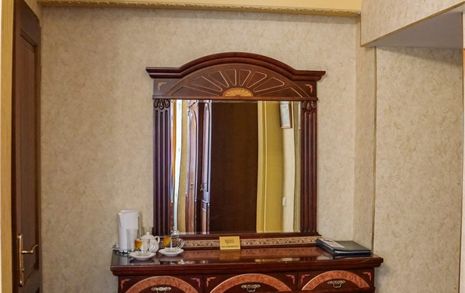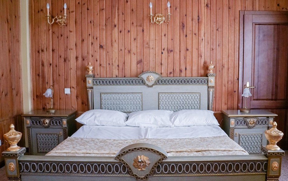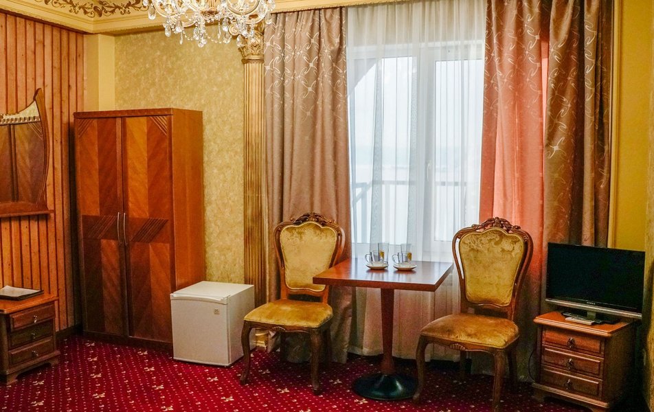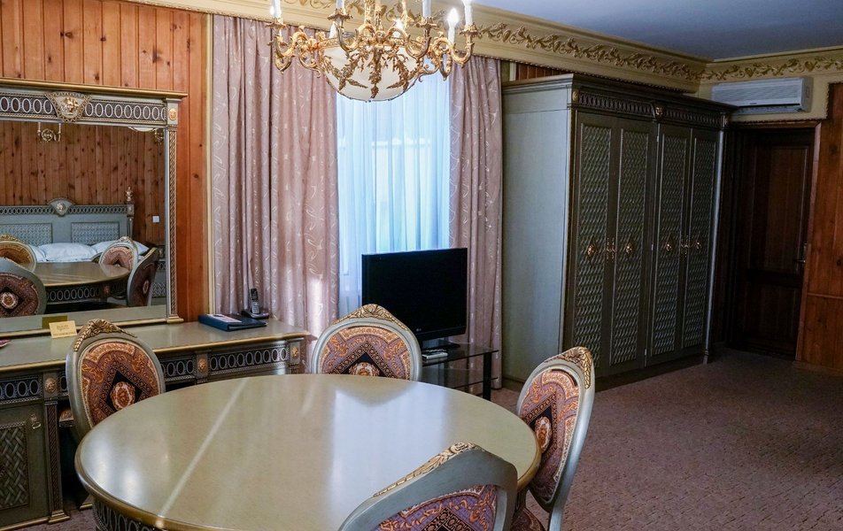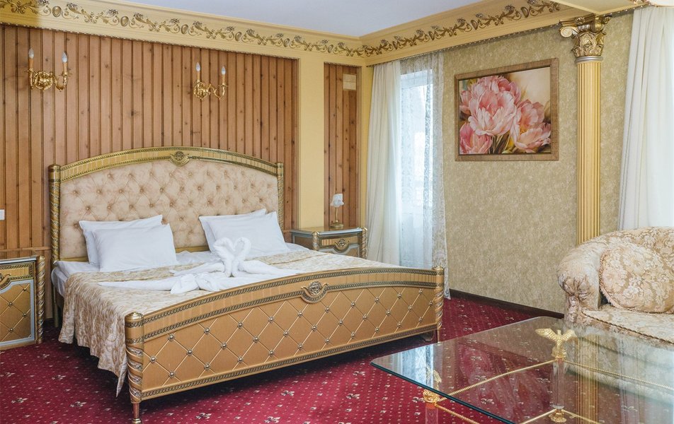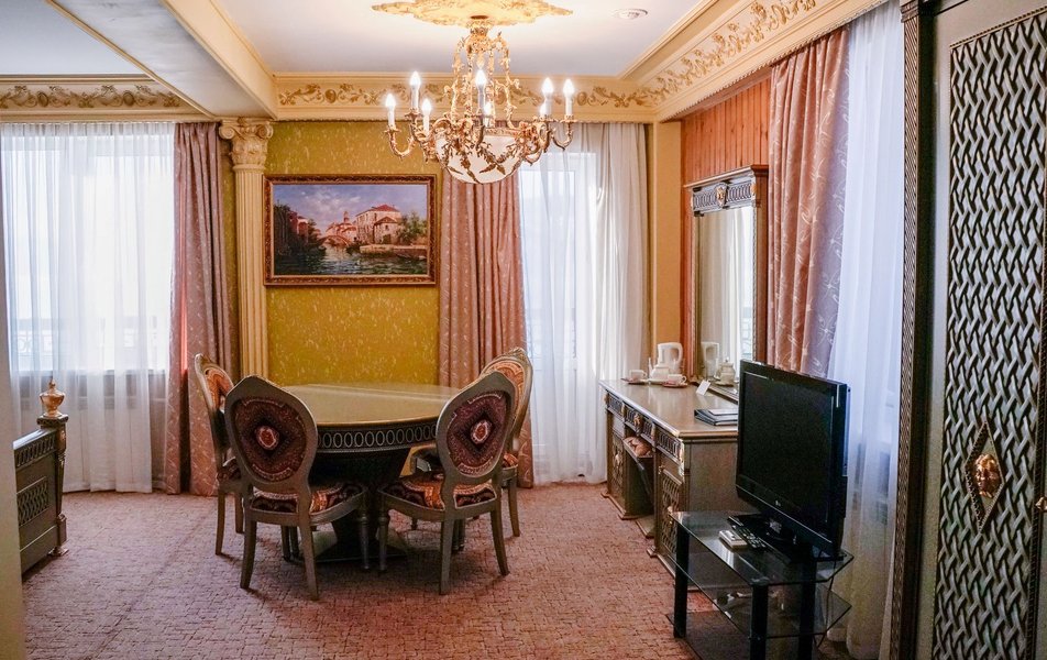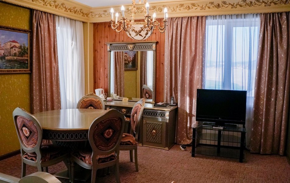 Забронировали номер высшей категории, решили после регистрации сделать себе подарок, ииииии честный отзыв: 1. До заселения решила сделать подарок жениху в виде украшения лепестками, которое вышло 750₽ на фото видно, по мне так не стоило оно 750₽ 2. Заказали на второй день сауну на 2 часа, стоимостью 3000₽, я вообще была в трансе от состояния сауны и пути до нее, вода в бассейне ледяная со шматками плавающих волос. В самой сауне разваленные стулья, серые простыни в пятнах, холодно, фото прилагаю 3. Номер: в номере 2 масляных обогревателя, один из них мы носили за собой в ванну, чтоб не за мерзнуть, на минуточку; номер высшей категории почти за 8000₽ в сутки. К чайным парам даже не было ложек, питьевая вода за 2 суток была один раз. Странно, для меня, но видимо тут это норма 3. Завтрак, который Включен в проживание вообще отдельной веселье, несли его минут 40, у меня была глазунья с беконом, бекон у меня укради по дороге, слава Богу, после моего замечания; мне его принесли весьма смешно выглядел на огромной тарелке. Вперед завтрака принесли кофе и чай, в ресторане свежо, до того, как дождались завтрак все остыло. 4. На второй день заказали из ресторана ужин в номер, уже 41 минуту мы ждём еду хотя заказ не большой, все еще надеемся лечь спать НЕ голодными 5. Ванна.... отдельная боль, в ней ужас как холодно, шторка так и пыталась отвалиться, слив в ванне сломан, чтоб слить воду надо быть самураем с ножом желательно. Спасибо, хоть есть горячая вода. 6. Дизайн номера конечно "дорохабохабохата" фотки вышли красивые. Спасибо 7. Обслуживание минус 5 прям, от такого заведения с такой ценовой категорией я ожидала лучшего. 8. В подарок кстати молодым шло шампанское и фруктовая тарелка (апельсинка и яблочко) 9. Вот и ужин подошел за 850₽, фото увидите, можете поржать, 45 минут ждали, надеюсь, муж не совсем голодный будет