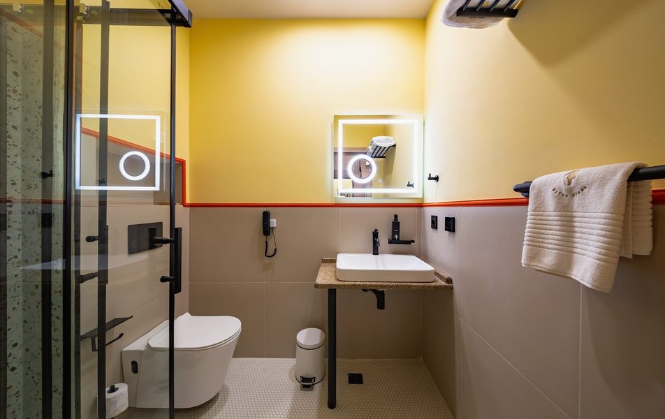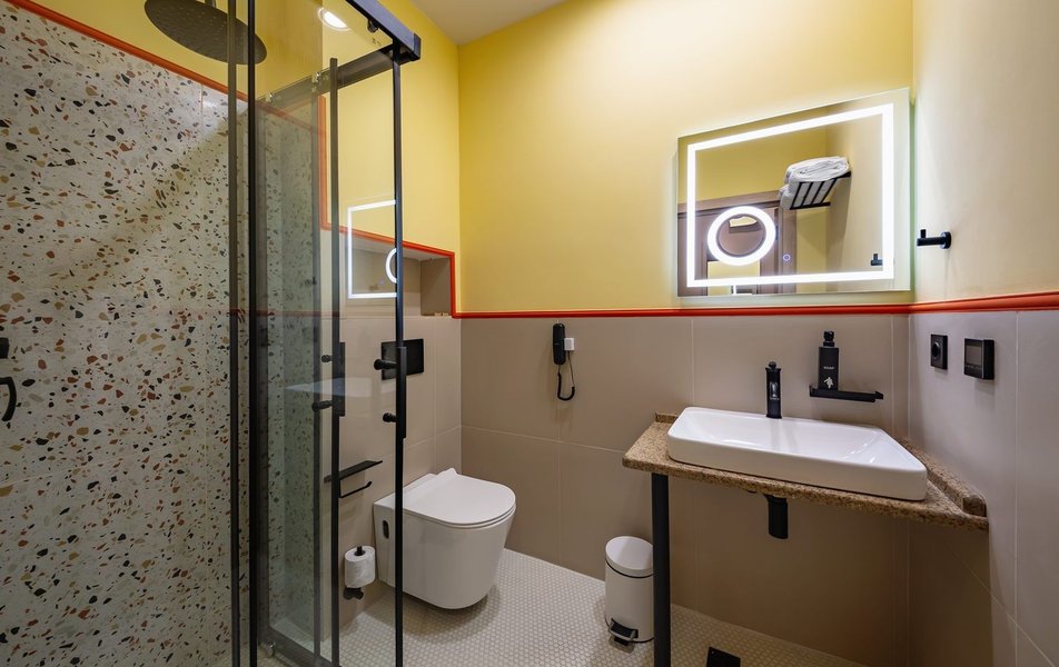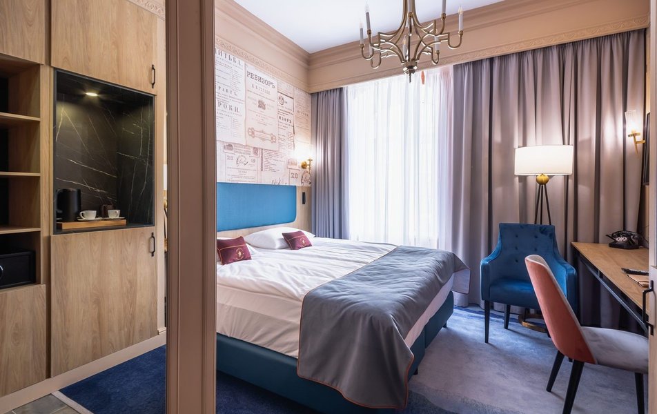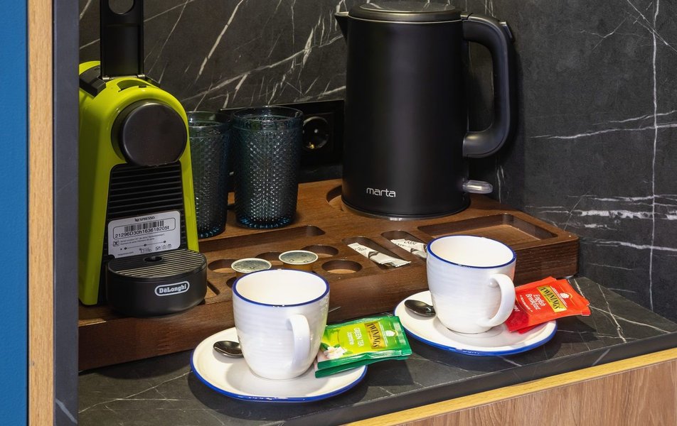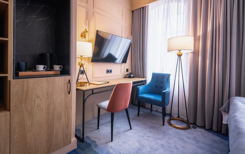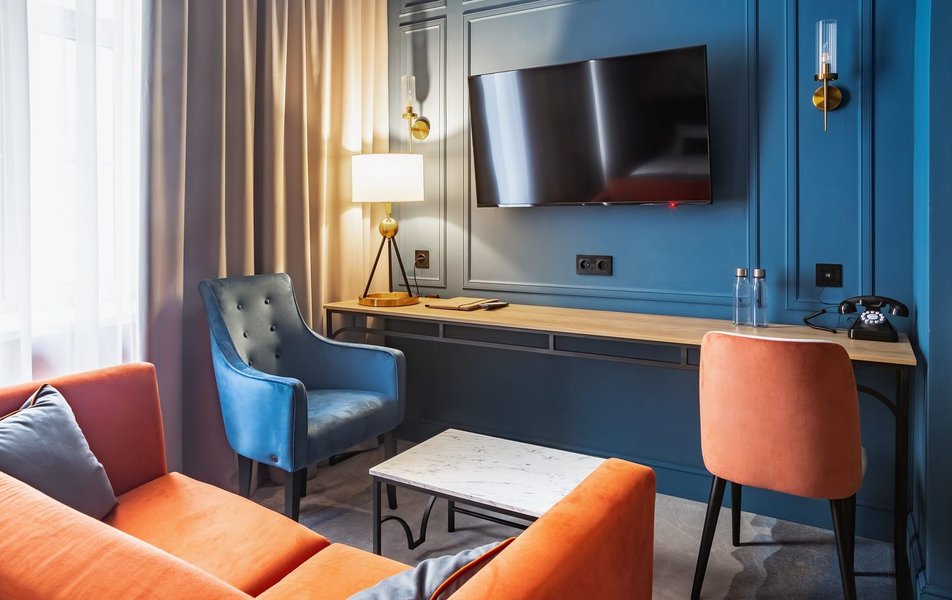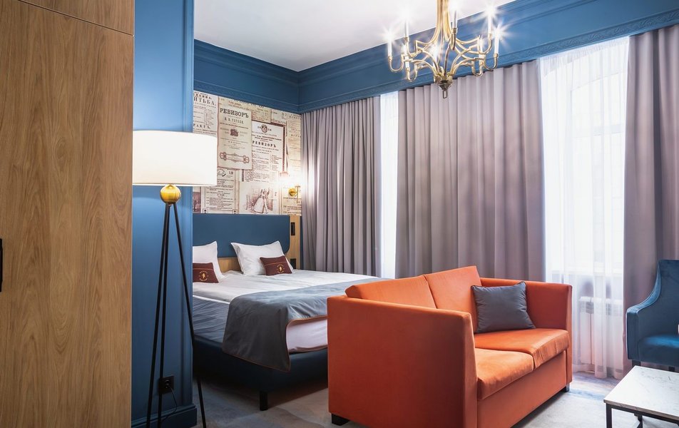 Полулюкс 2-местный (DBL/TWIN) Количество комнат: 1-комнатный Тип номера: Полулюкс Кол-во доп. мест: 1 Кол-во основных мест: 2 Площадь (кв. м): 27 Мебель: вешалка, диван, зеркало, кровати односпальные /одна двуспальная кровать, прикроватные тумбочки, стол, стулья, шкаф Оборудование: гладильная доска, кофемашина, мини-холодильник, сейф, система общего кондиционирования, телевизор, телефон, утюг, чайный набор посуды, электрочайник Санузел: с душем, тапочки, туалетные принадлежности, фен, халат Сервис: Wi-Fi бесплатно, карточная система замков, мини-бар, смена полотенец, смена постельного белья, уборка номера, услуги внутренней телефонной связи