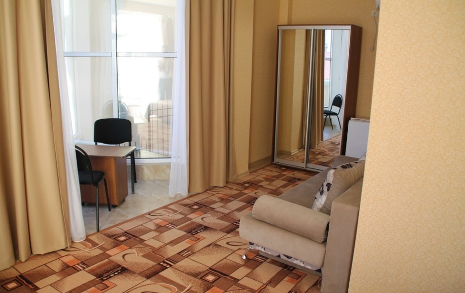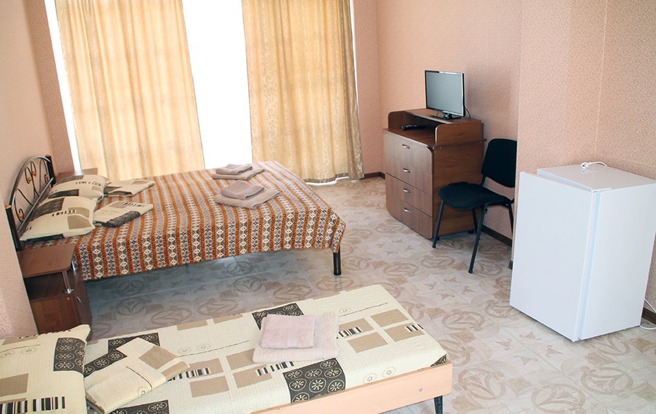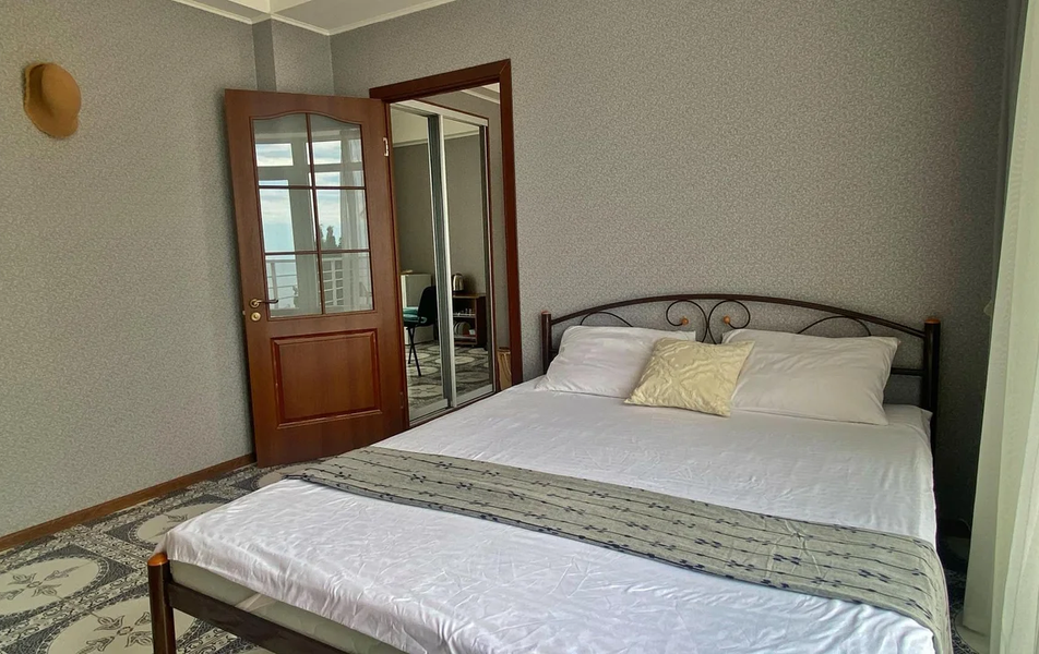 Семейный 4-местный 2-комнатный Количество комнат: 2-комнатный Тип номера: Стандартный Дополнительное место: кресло-кровать Кол-во основных мест: 4 Балкон: с мебелью Мебель: диван раскладной, зеркало, кровать двуспальная, прикроватные тумбочки, стол, стулья, шкаф Оборудование: набор посуды, сплит-система, телевизор, холодильник Санузел: с душевой кабиной Сервис: Wi-Fi бесплатно, смена полотенец, смена постельного белья, уборка номера