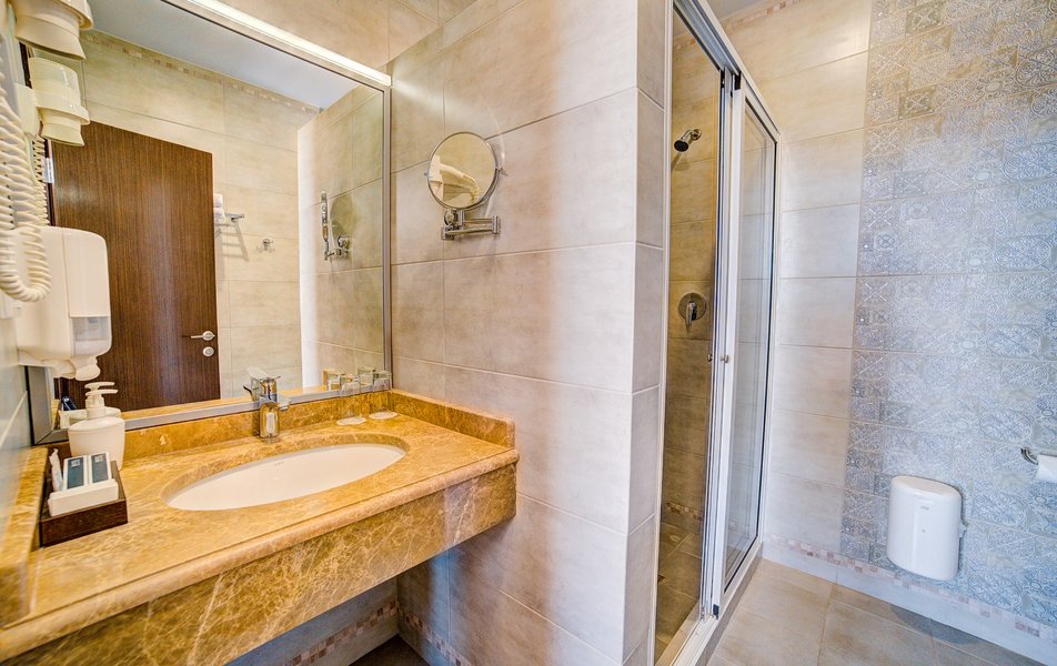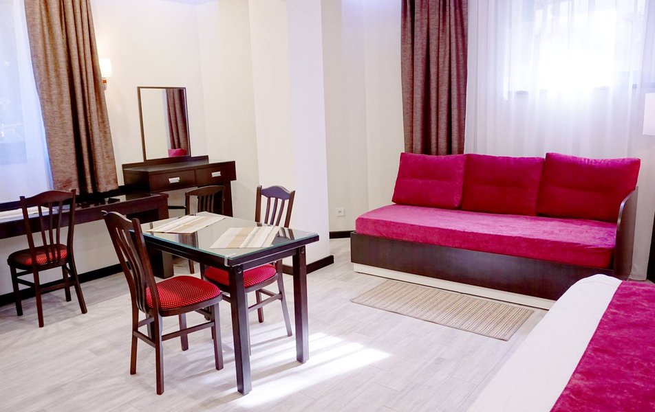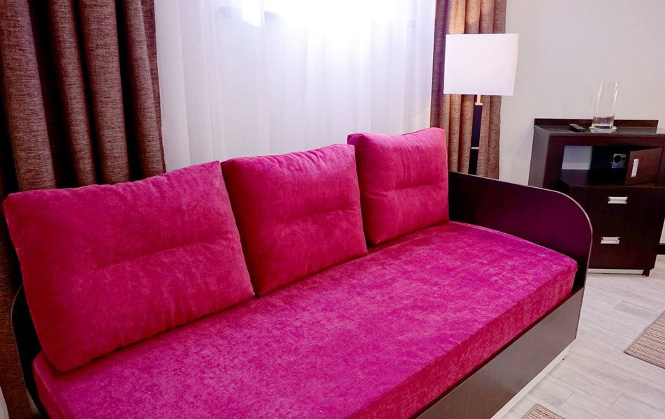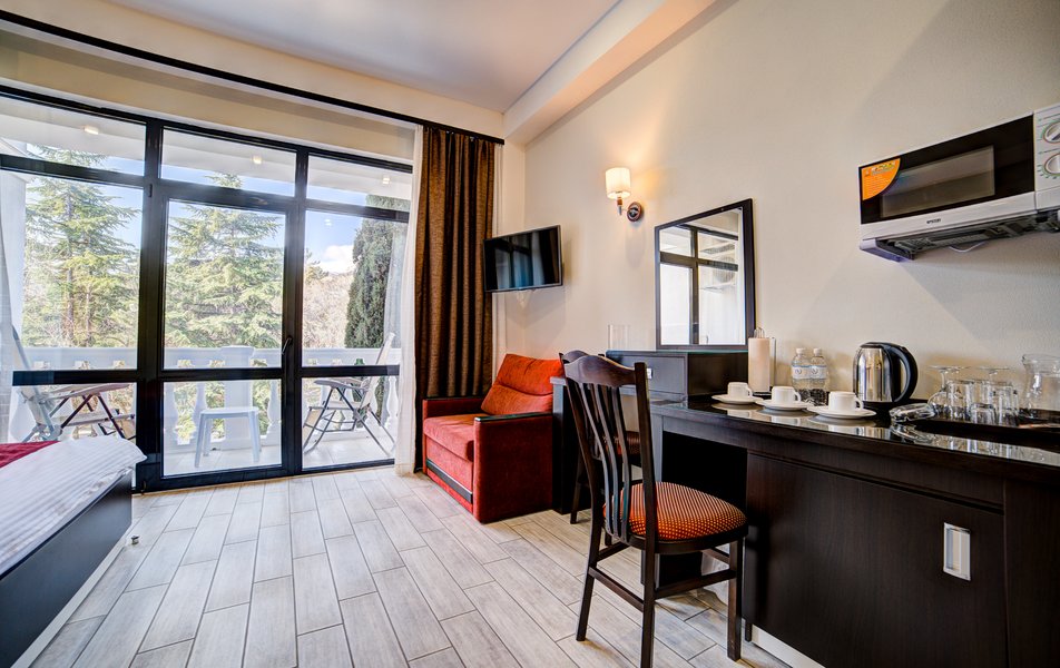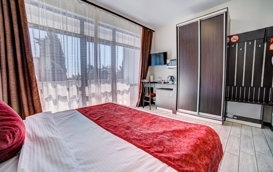 Стандартный 1-местный 1-комнатный Количество комнат: 1-комнатный Тип номера: Стандартный Вид из номера: на город Кол-во номеров: 1 Кол-во основных мест: 1 Площадь (кв. м): 13 Мебель: вешалка, диван: -кровать, зеркало, прикроватная тумбочка, стол, стул, шкаф-купе Оборудование: кондиционер, микроволновая печь, мини-холодильник, набор посуды, пляжные полотенца, сейф, телевизор ЖК, электрочайник Санузел: с душевой кабиной, тапочки, туалетные принадлежности, фен Сервис: Wi-Fi бесплатно, смена полотенец: 1 раз в 3 дня, смена постельного белья: 1 раз в 3 дня, уборка номера: ежедневно
