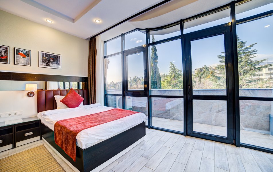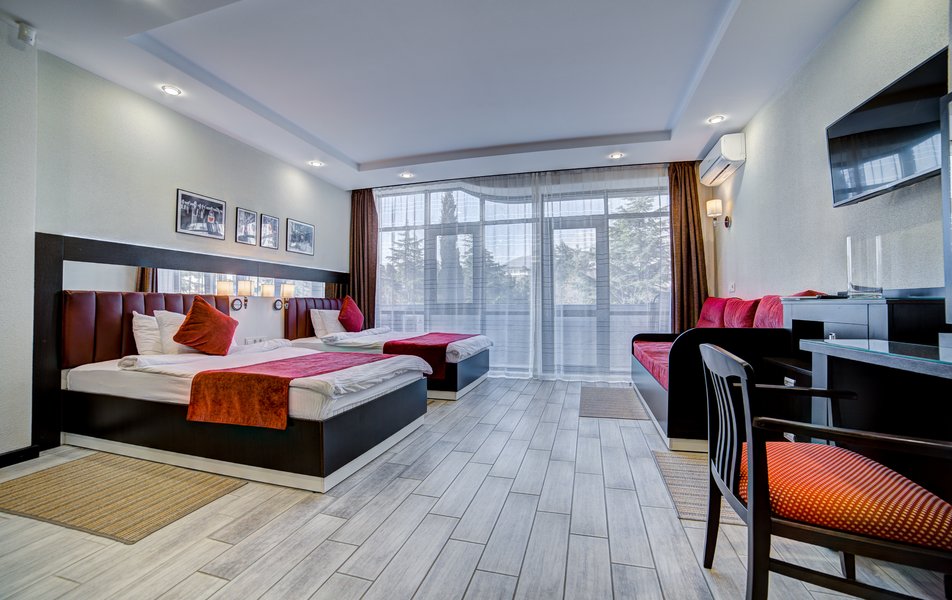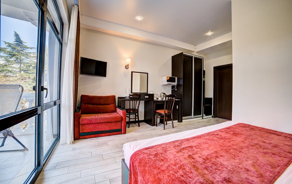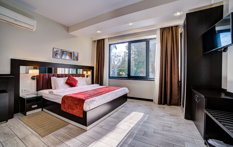 Стандартный Делюкс 2-местный 1-комнатный Количество комнат: 1-комнатный Тип номера: Стандартный Дополнительное место: кресло раскладное Вид из номера: на парк: и город Кол-во доп. мест: 1 Кол-во основных мест: 2 Площадь (кв. м): 29 Балкон: с мебелью Мебель: вешалка, зеркало, кресло-кровать, кровать двуспальная, прикроватные тумбочки, стол, стул, шкаф-купе Оборудование: кондиционер, микроволновая печь, мини-холодильник, набор посуды, пляжные полотенца, сейф, телевизор ЖК, электрочайник Санузел: с душевой кабиной, тапочки, туалетные принадлежности, фен Сервис: Wi-Fi бесплатно, смена полотенец: раз в три дня, смена постельного белья: раз в три дня, уборка номера: ежедневно