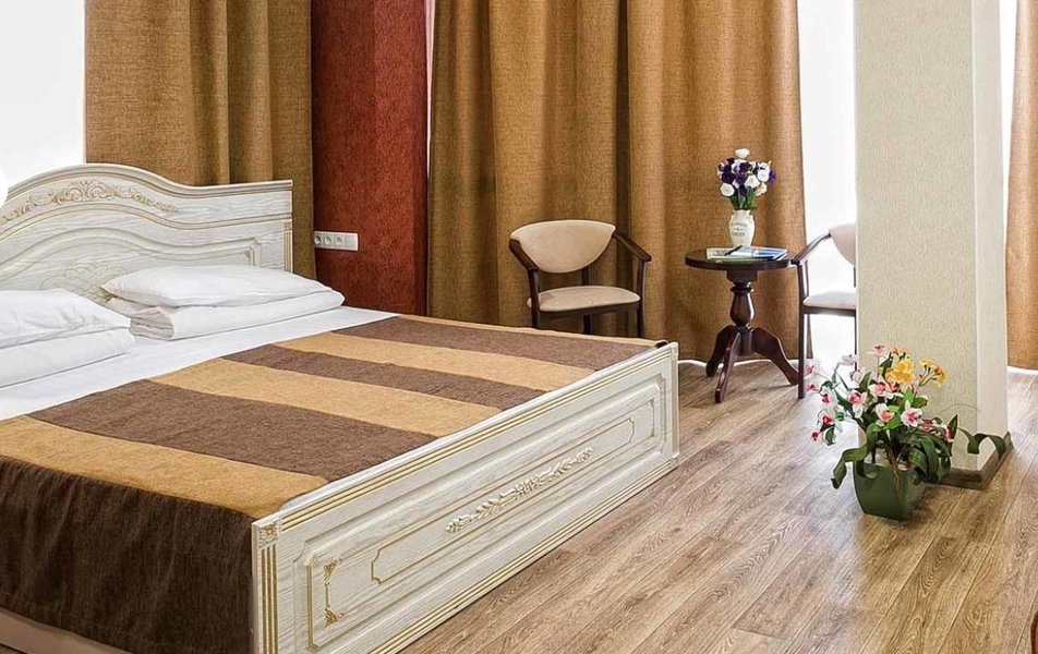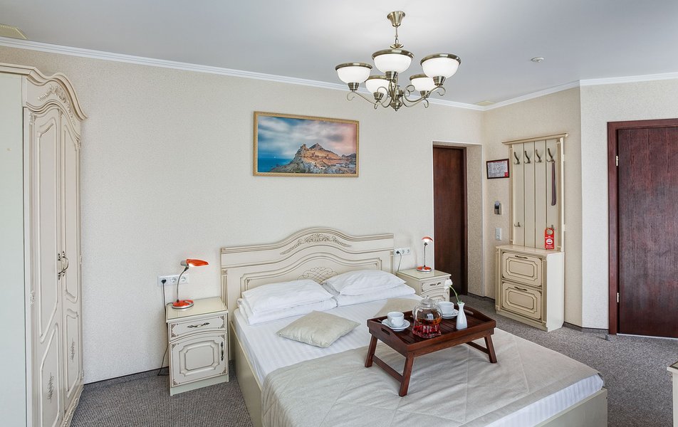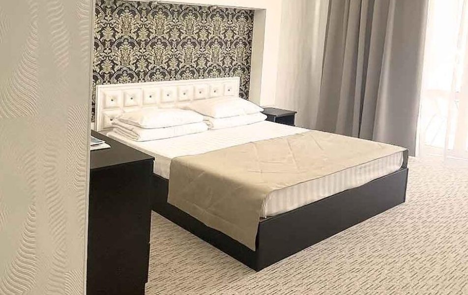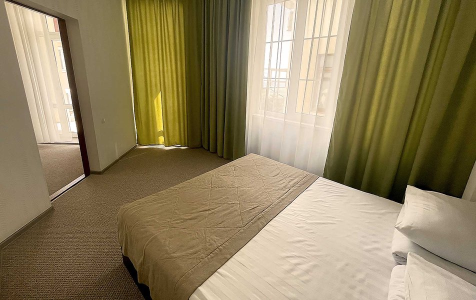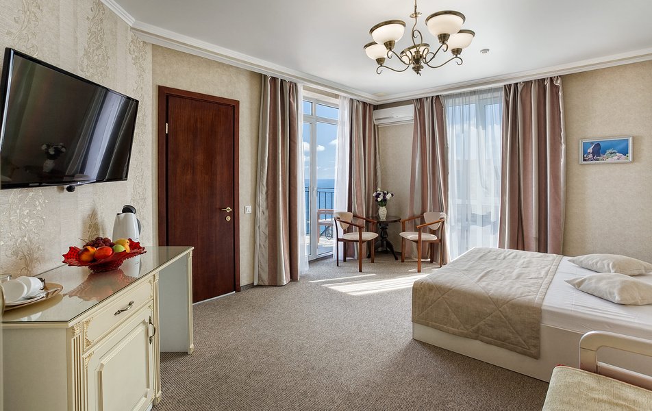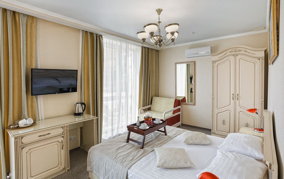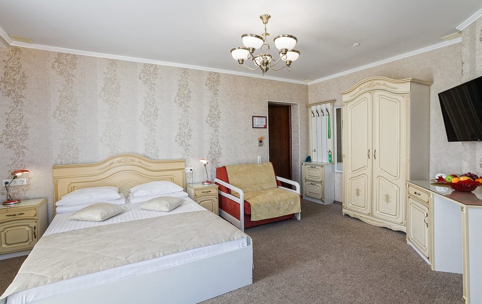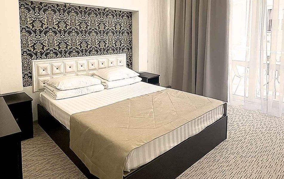 Комфорт 2-местный 1-комнатный (без балкона, корпус 2, 4) Количество комнат: 1-комнатный Дополнительное место: кресло-кровать Кол-во доп. мест: 1 Кол-во номеров: 2 Кол-во основных мест: 2 Корпус: 2 Площадь (кв. м): 22 Мебель: вешалка, зеркало, комод, кресло-кровать, кровать двуспальная, обувная полка, прикроватные тумбочки, столик журнальный, стулья, шкаф Оборудование: гладильная доска, кондиционер, набор посуды, пляжные полотенца, сейф, телевизор, утюг, электрочайник Санузел: с душевой кабиной, тапочки, туалетные принадлежности, фен Сервис: Wi-Fi бесплатно, смена полотенец: 1 раз в 3 дня, смена постельного белья: 1 раз в 3 дня, уборка номера: ежедневно