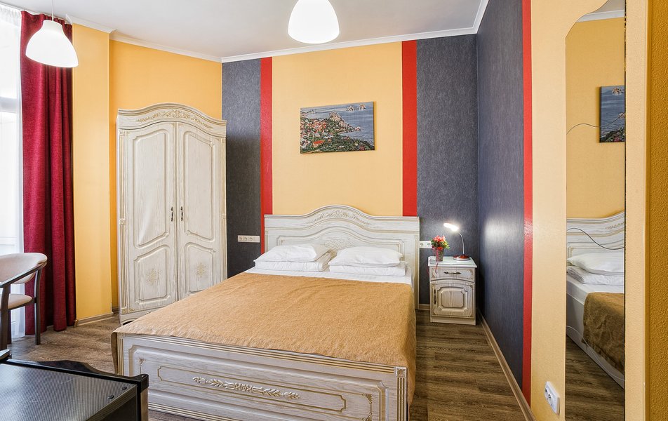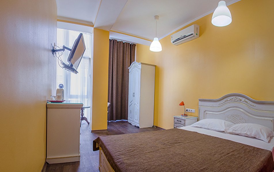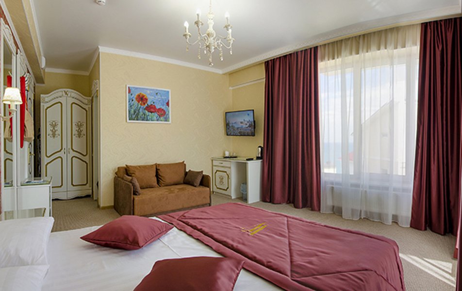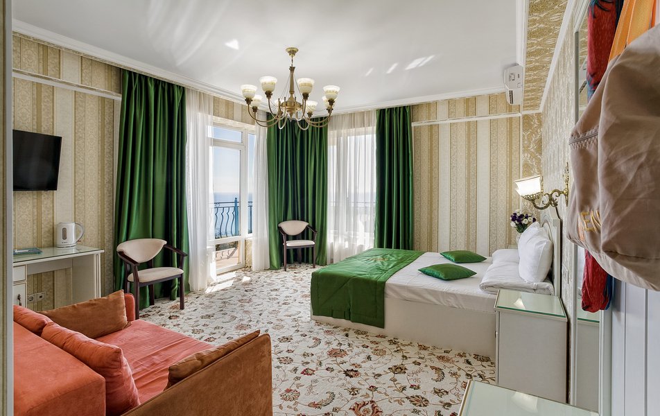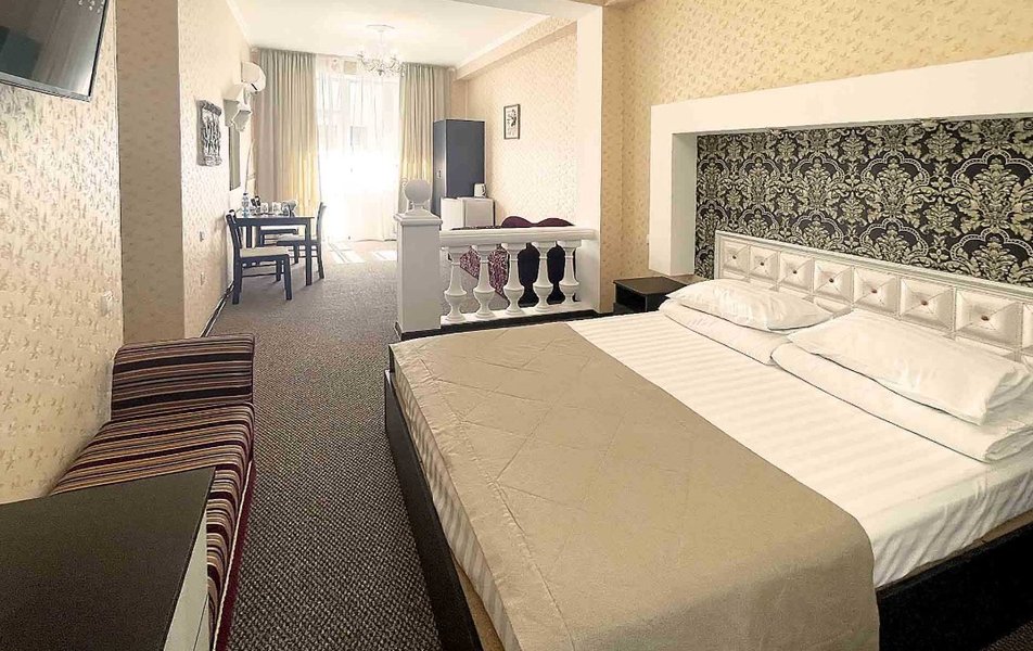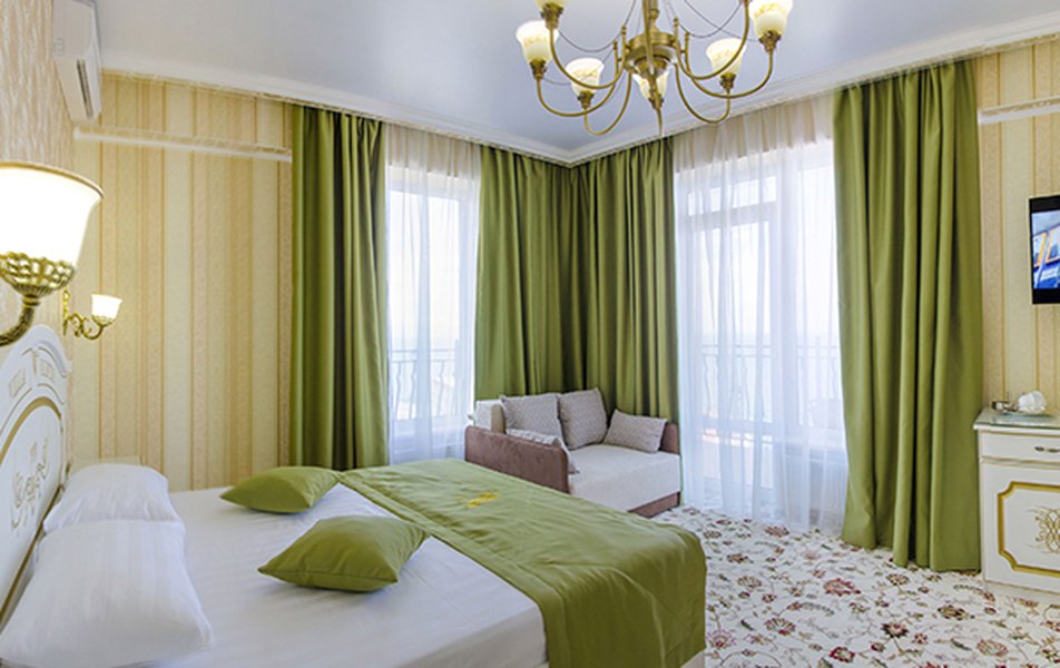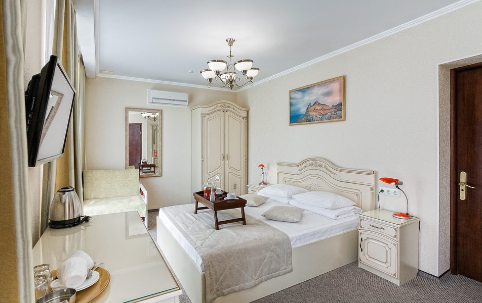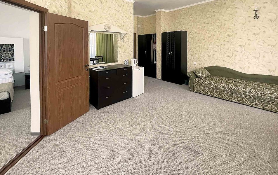 Комфорт 2-местный 1-комнатный (без балкона, корпус 2, 4) Количество комнат: 1-комнатный Дополнительное место: кресло-кровать Кол-во доп. мест: 1 Кол-во номеров: 2 Кол-во основных мест: 2 Корпус: 2 Площадь (кв. м): 22 Мебель: вешалка, зеркало, комод, кресло-кровать, кровать двуспальная, обувная полка, прикроватные тумбочки, столик журнальный, стулья, шкаф Оборудование: гладильная доска, кондиционер, набор посуды, пляжные полотенца, сейф, телевизор, утюг, электрочайник Санузел: с душевой кабиной, тапочки, туалетные принадлежности, фен Сервис: Wi-Fi бесплатно, смена полотенец: 1 раз в 3 дня, смена постельного белья: 1 раз в 3 дня, уборка номера: ежедневно