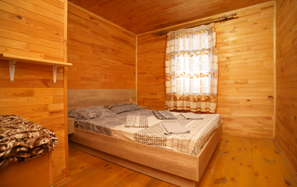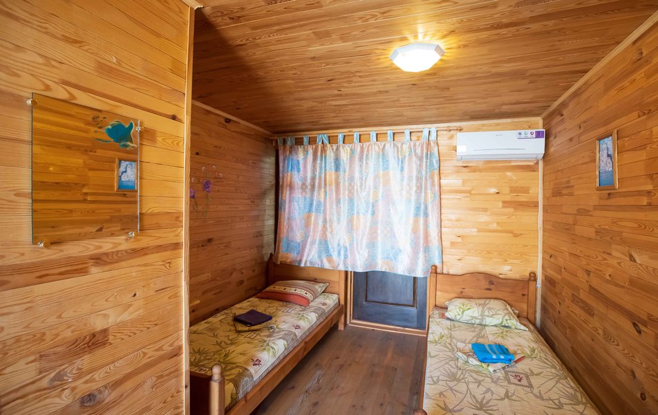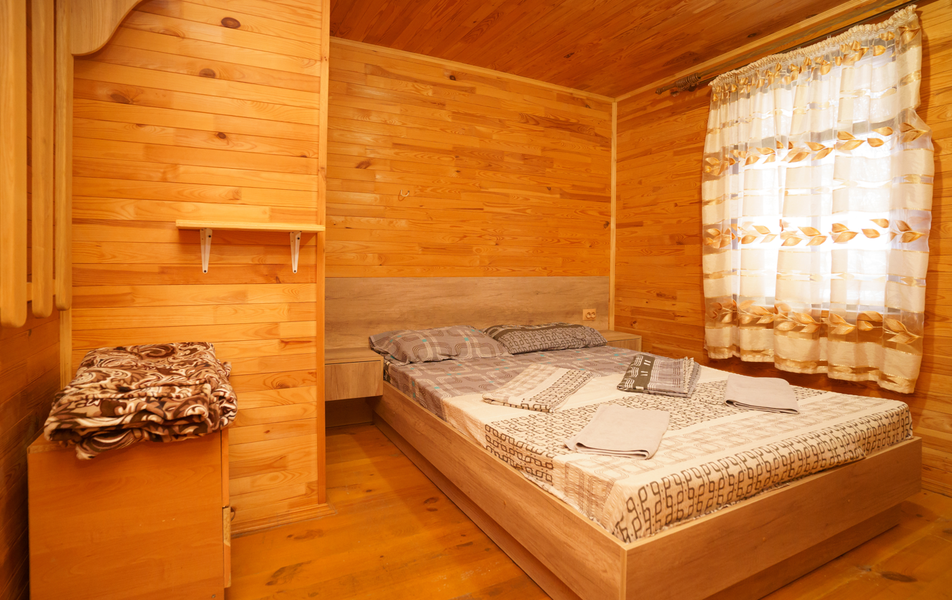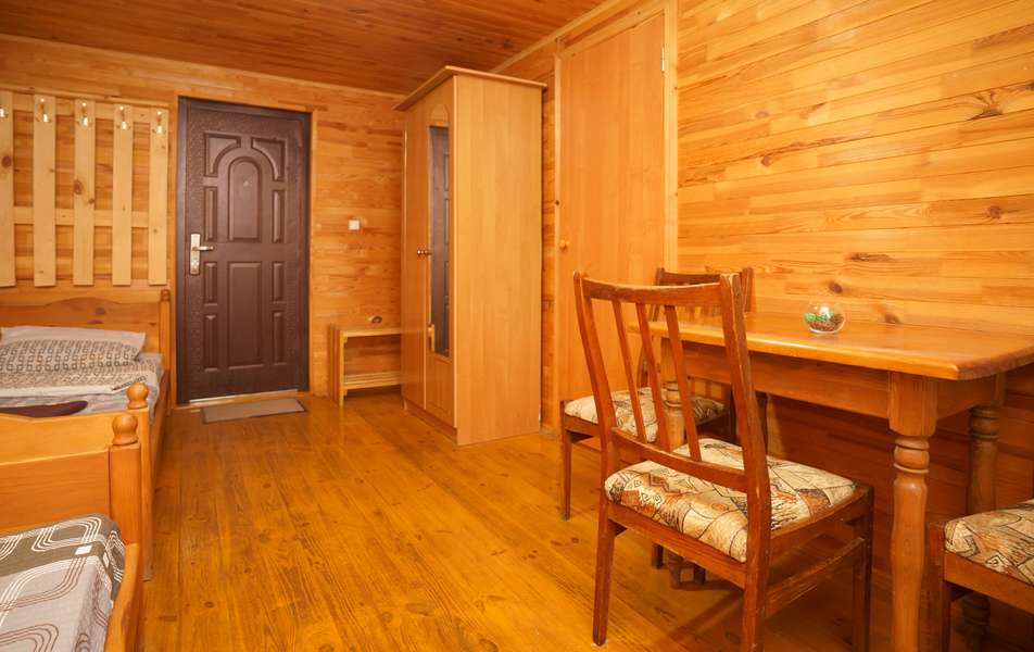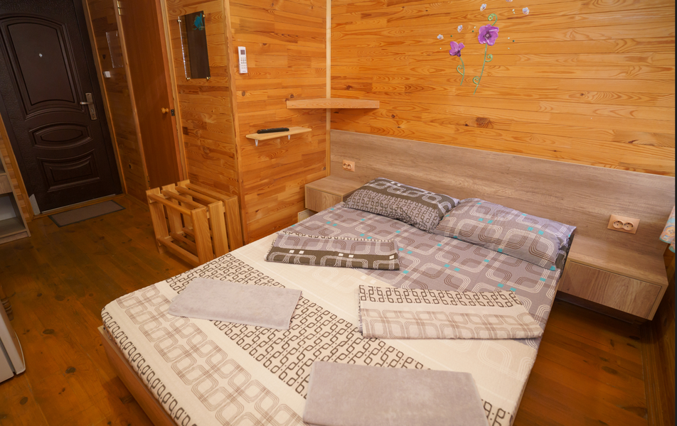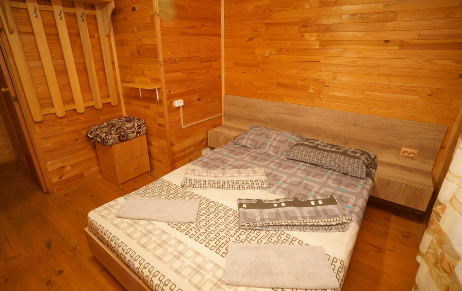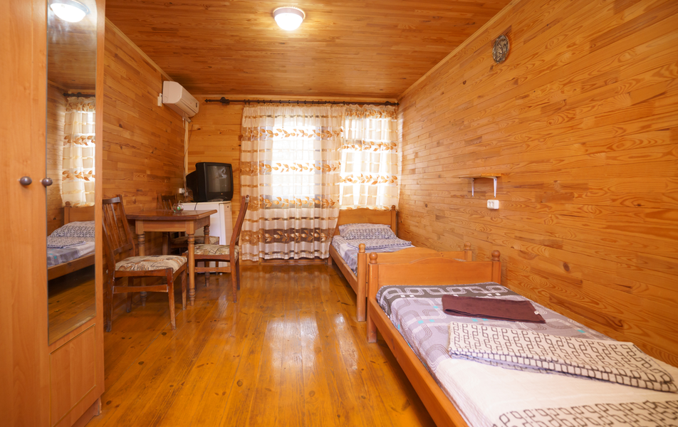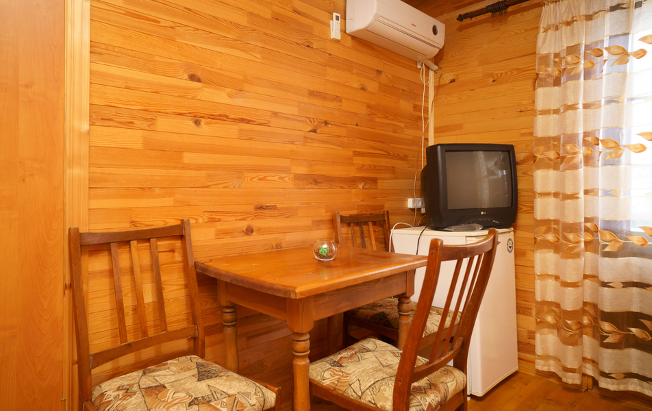 Стандартный 2-местный 1-комнатный (с балконом в срубе) Количество комнат: 1-комнатный Тип номера: Стандартный Вид из номера: на горы Кол-во номеров: 12 Кол-во основных мест: 2 Корпус: сруб Площадь (кв. м): 14 Балкон: с сушилкой Мебель: вешалка, зеркало, кровати односпальные, прикроватные тумбочки, стол, шкаф Оборудование: кондиционер, телевизор, холодильник Санузел: с душем, туалетные принадлежности Сервис: Wi-Fi бесплатно, смена полотенец, смена постельного белья, уборка номера