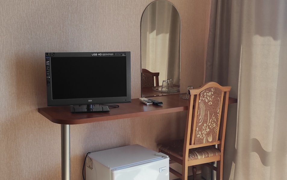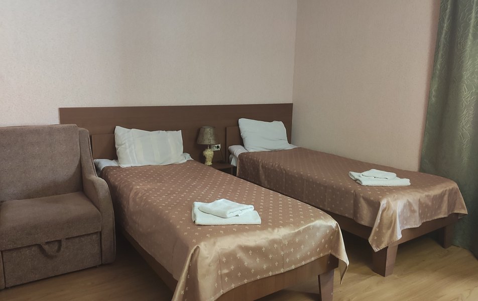 Стандартный 2-местный 1-комнатный (категория С) Количество комнат: 1-комнатный Тип номера: Стандартный Дополнительное место: кресло-кровать, еврораскладушка Кол-во доп. мест: 2 Кол-во номеров: 3 Кол-во основных мест: 2 Площадь (кв. м): 17 Мебель: вешалка, зеркало, кровати односпальные: 2, прикроватные тумбочки, шкаф Оборудование: кондиционер, сейф, телевизор, холодильник Санузел: с душем, фен Сервис: Wi-Fi бесплатно, смена полотенец, смена постельного белья, уборка номера