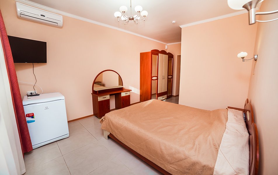 Стандартный 2-местный 1-комнатный (вид на море) Количество комнат: 1-комнатный Тип номера: Стандартный Вид из номера: на море Кол-во основных мест: 2 Мебель: вешалка, зеркало, кровати односпальные /одна двуспальная кровать, прикроватные тумбочки, тумба, шкаф Оборудование: кондиционер, мини-холодильник, сейф, телевизор Санузел: с душем, туалетные принадлежности, фен Сервис: Wi-Fi бесплатно, смена полотенец, смена постельного белья, уборка номера