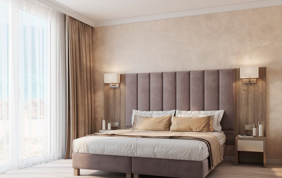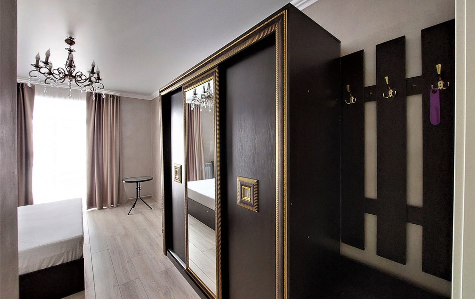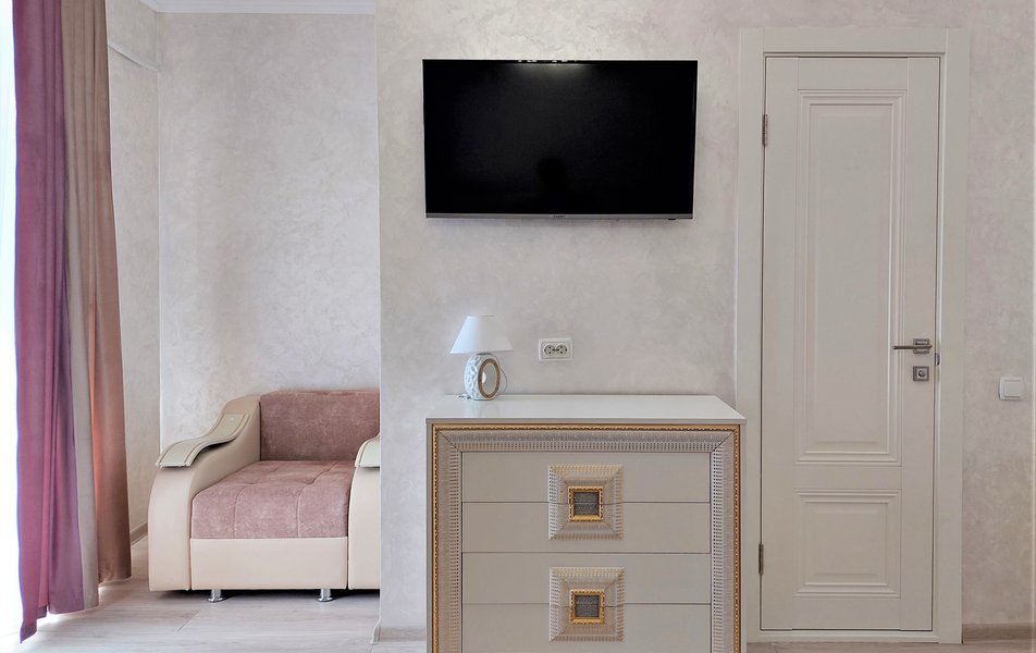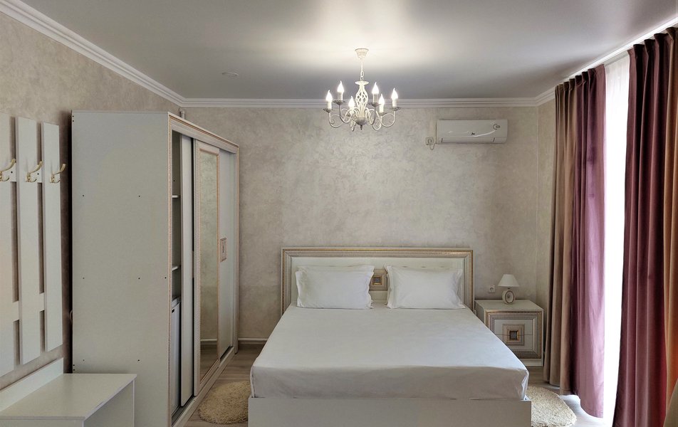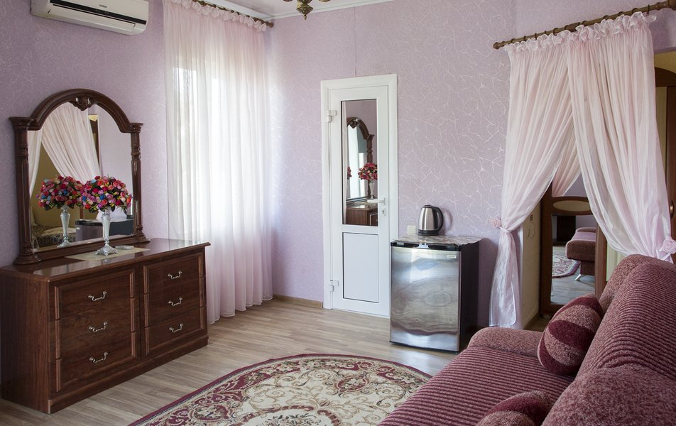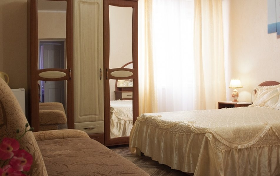 Комфорт 3-местный 2-комнатный (основной корпус) с видом на море Количество комнат: 2-комнатный Тип номера: Комфорт Дополнительное место: двухъярусная кровать Кол-во доп. мест: 2 Кол-во основных мест: 3 Корпус: Основной Площадь (кв. м): от 48 Мебель: вешалка, диван раскладной, зеркало, кровать двуспальная, кровать двухъярусная, прикроватные тумбочки, шкаф Оборудование: кондиционер, сейф, телевизор, холодильник, чайный набор посуды, электрочайник Санузел: с душем, тапочки, туалетные принадлежности, фен Сервис: смена полотенец, смена постельного белья, уборка номера