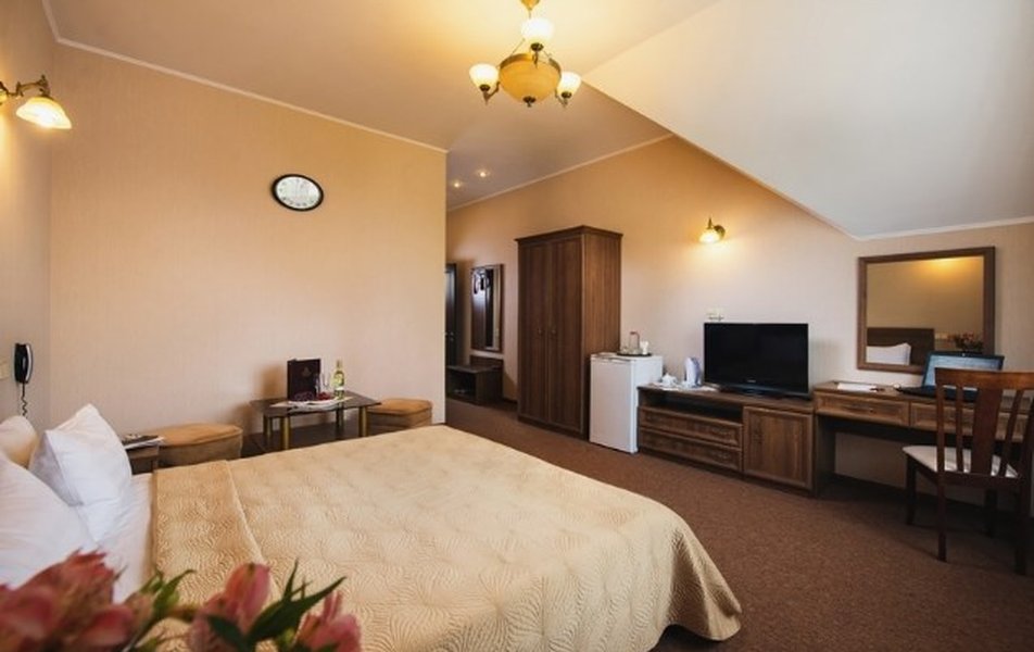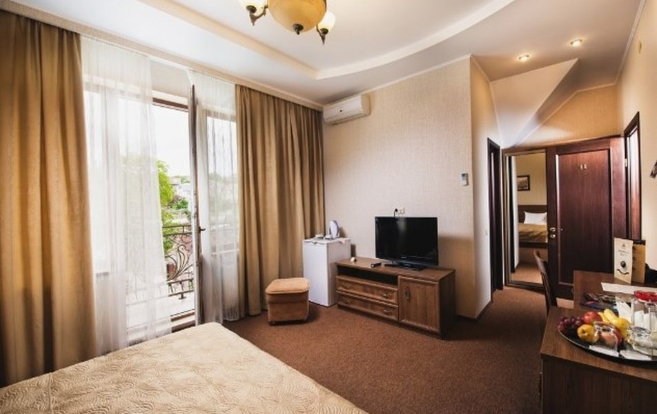 Не большой отель в центре Севастополя с завтраком на 19 номеров с уютным закрытым двориком, автостоянка, банный комплекс - сауна, хамам, большой шикарный подогреваемый бассейн работает круглый год. В стоимость входит: проживание в номере, вкусный завтрак из 8 блюд, 30 мин. утром с 7-12 - бассейн и хамам. 7-10 мин до пляжа. Это все преимущества, минус маленькая территория.