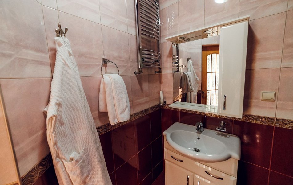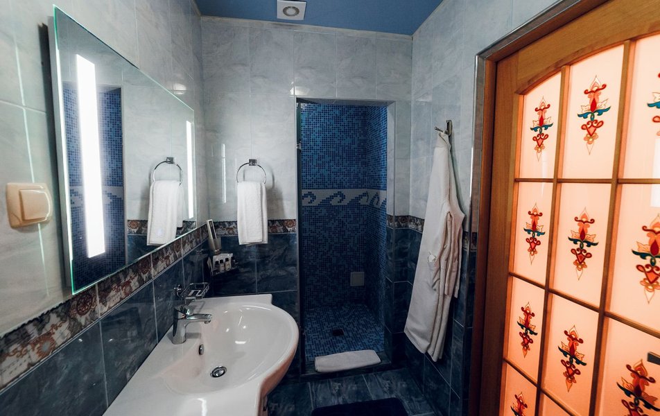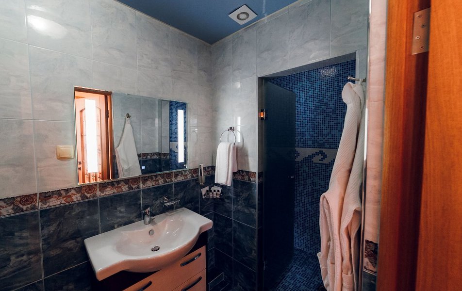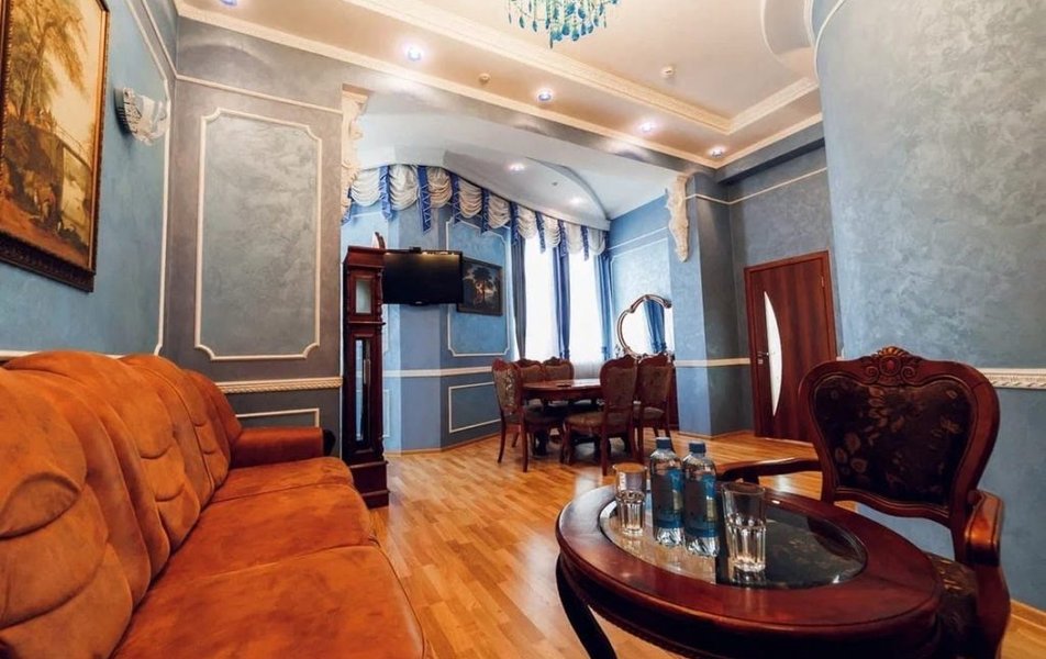 Люкс 2-местный 2-комнатный Количество комнат: 2-комнатный Тип номера: Люкс Кол-во доп. мест: 1 Кол-во основных мест: 2 Площадь (кв. м): 50 Мебель: вешалка, зеркало, кровать двуспальная, прикроватные тумбочки, стол, стулья, шкаф Оборудование: кондиционер, сейф, телевизор, телефон, холодильник, чайник Санузел: с душем, тапочки, туалетные принадлежности, фен, халат Сервис: Wi-Fi бесплатно, смена полотенец, смена постельного белья, уборка номера