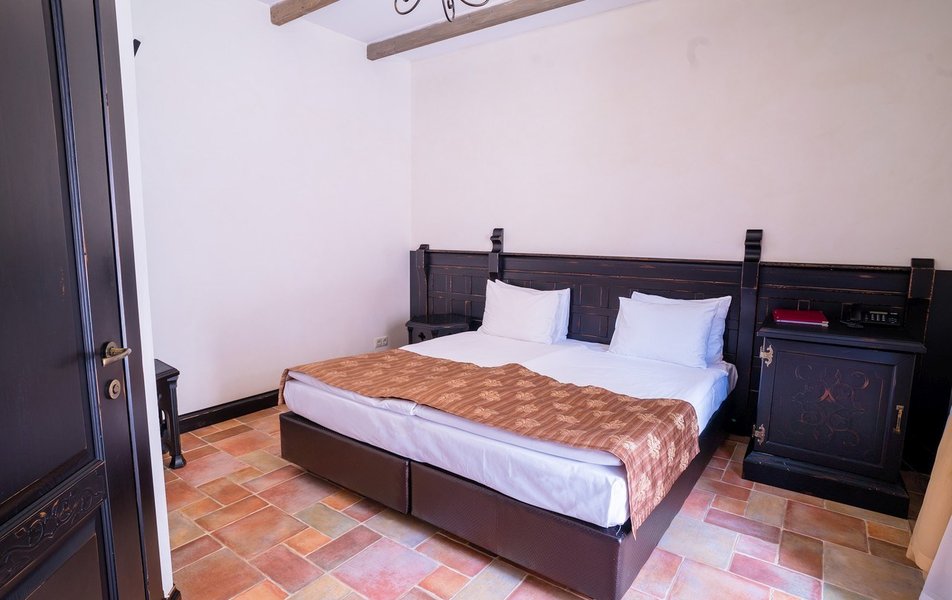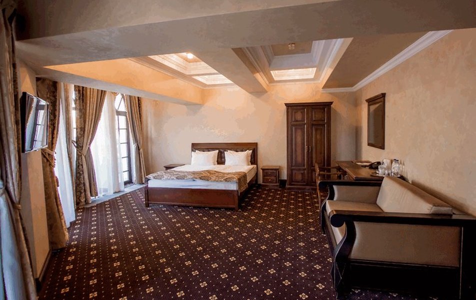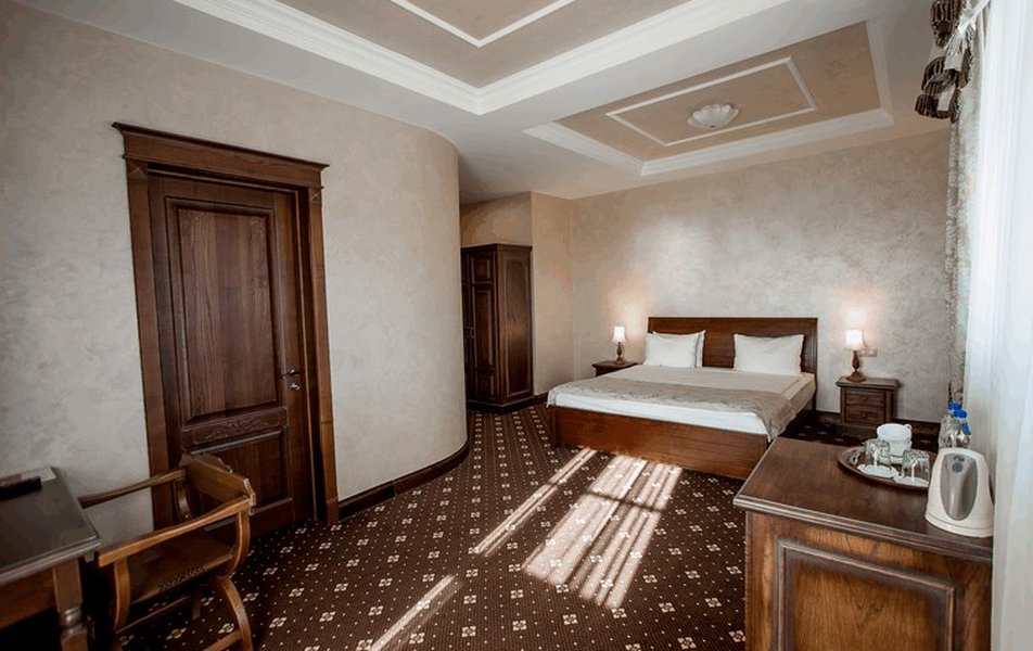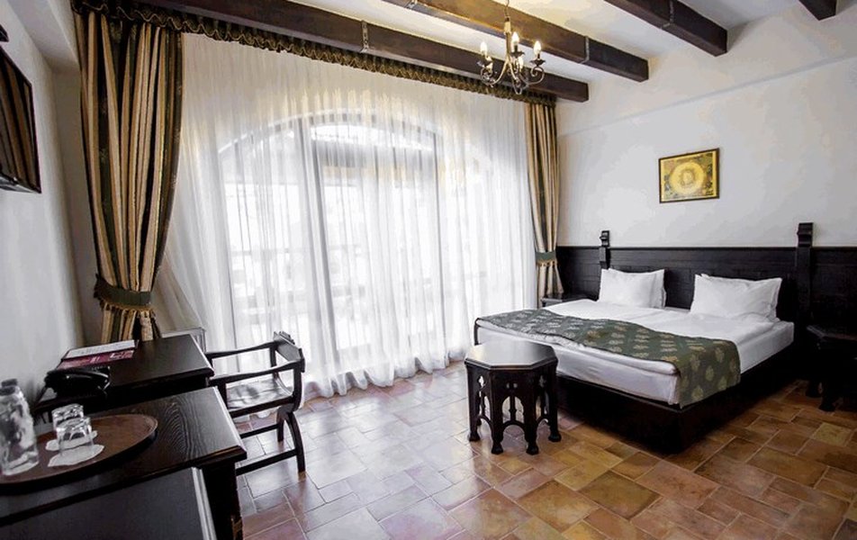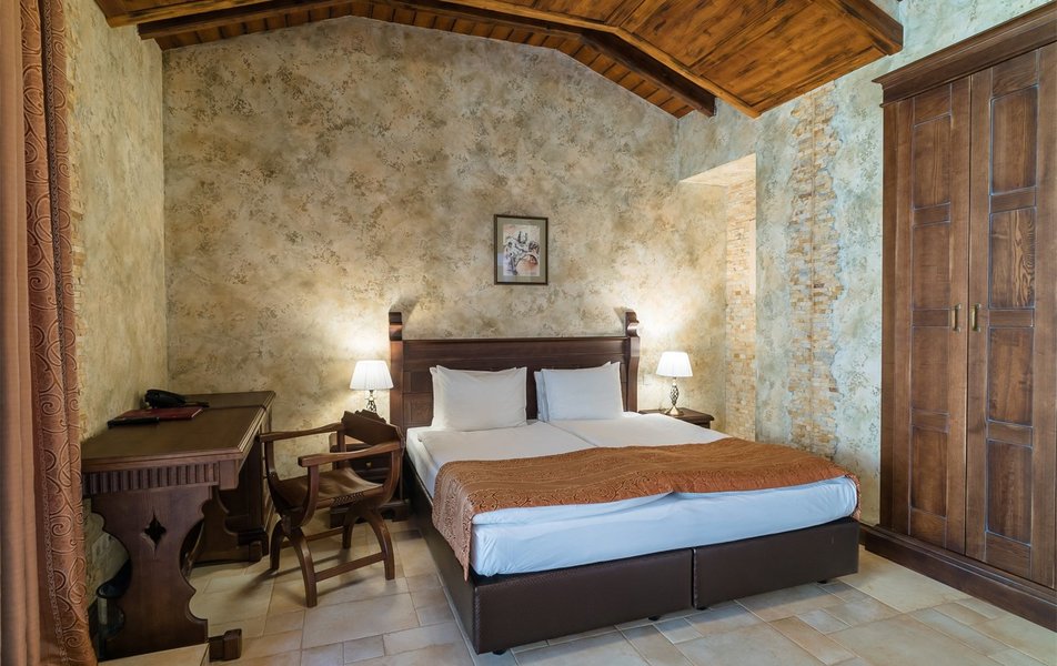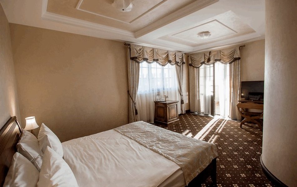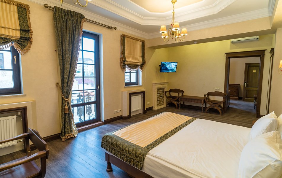Комфорт 2-местный 1-комнатный Количество комнат: 1-комнатный Тип номера: Комфорт Дополнительное место: еврораскладушка Вид из номера: на двор: или бассейн и Генуэзскую крепость Кол-во доп. мест: 1 Кол-во номеров: 9 Кол-во основных мест: 2 Корпус: 2, 3 Площадь (кв. м): 17 Балкон: не во всех номерах, французский балкон: некоторые номера Мебель: вешалка, зеркало, кровати односпальные /одна двуспальная кровать, прикроватные тумбочки, стол, стул, шкаф Оборудование: кондиционер, мини-холодильник, сейф, телевизор: LED, с IP-TV, телефон Санузел: с душем, туалетные принадлежности, фен Сервис: Wi-Fi бесплатно, room-сервис: 24 ч только в летнее время, мини-бар, смена полотенец: по требованию, смена постельного белья: по требованию, уборка номера: ежедневно, услуги внутренней телефонной связи