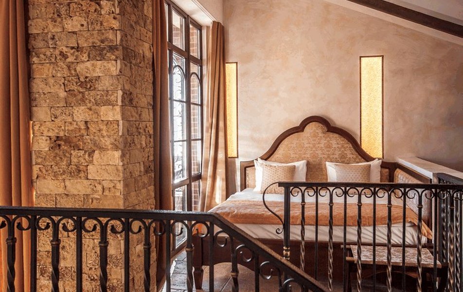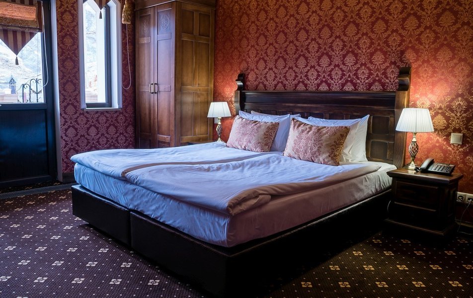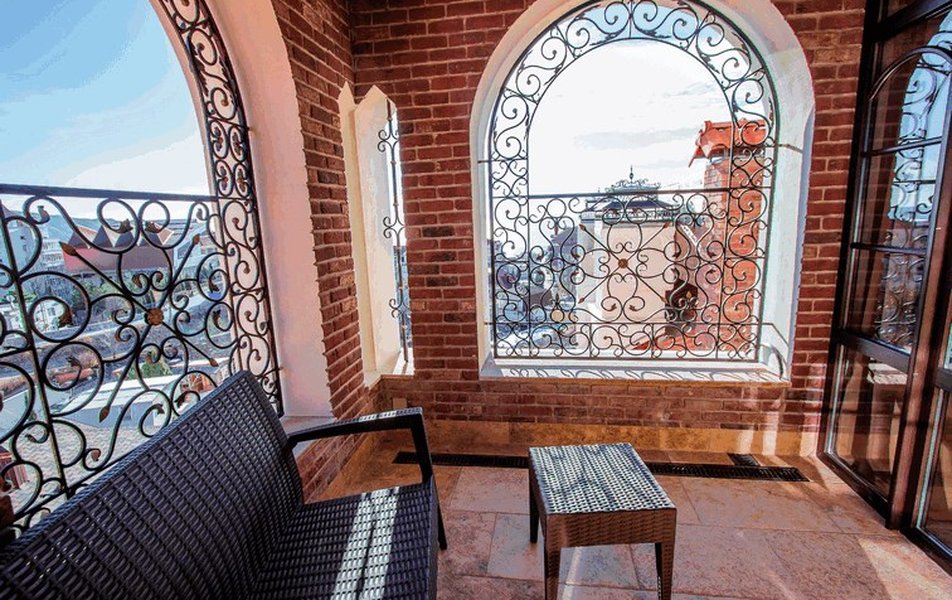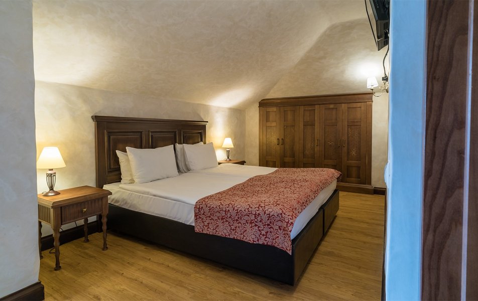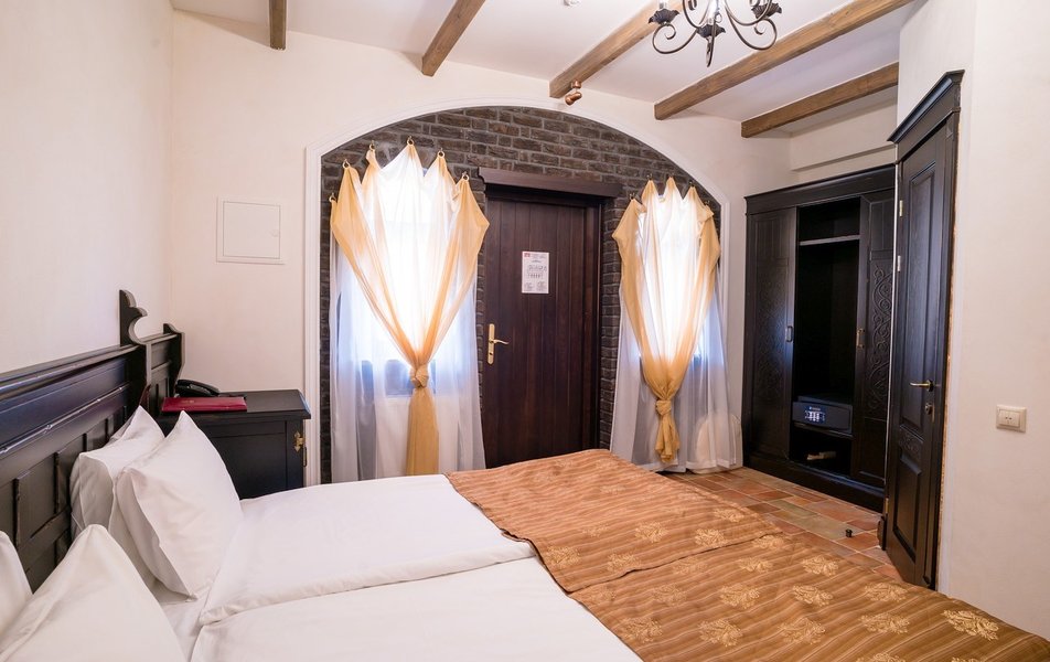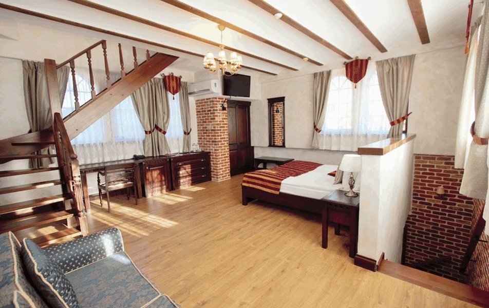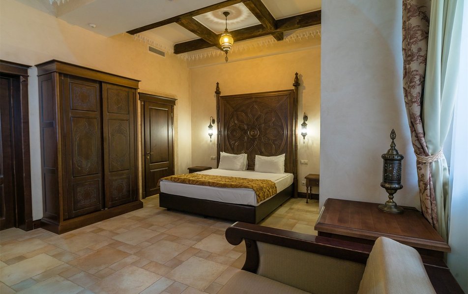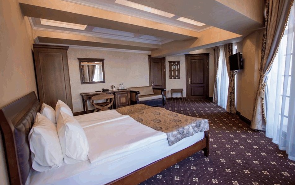 Комфорт 2-местный 1-комнатный Количество комнат: 1-комнатный Тип номера: Комфорт Дополнительное место: еврораскладушка Вид из номера: на двор: или бассейн и Генуэзскую крепость Кол-во доп. мест: 1 Кол-во номеров: 9 Кол-во основных мест: 2 Корпус: 2, 3 Площадь (кв. м): 17 Балкон: не во всех номерах, французский балкон: некоторые номера Мебель: вешалка, зеркало, кровати односпальные /одна двуспальная кровать, прикроватные тумбочки, стол, стул, шкаф Оборудование: кондиционер, мини-холодильник, сейф, телевизор: LED, с IP-TV, телефон Санузел: с душем, туалетные принадлежности, фен Сервис: Wi-Fi бесплатно, room-сервис: 24 ч только в летнее время, мини-бар, смена полотенец: по требованию, смена постельного белья: по требованию, уборка номера: ежедневно, услуги внутренней телефонной связи