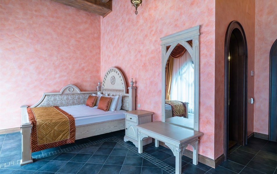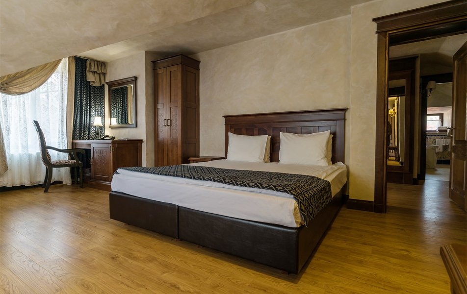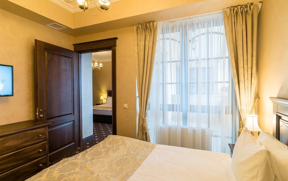 Комфорт 2-местный 2-комнатный (Семейный) Количество комнат: 2-комнатный Тип номера: Комфорт Дополнительное место: диван Вид из номера: на двор: или бассейн и Генуэзскую крепость Кол-во доп. мест: 2 Кол-во номеров: 1 Кол-во основных мест: 2 Корпус: №3,4 Площадь (кв. м): 39 Балкон: с мебелью Мебель: вешалка, диван раскладной, зеркало, кресло, кровать двуспальная: две, кухонная мебель, прикроватные тумбочки, стол, стул, тумба багажная, шкаф Оборудование: кондиционер, мини-холодильник, сейф, телевизор: LED, с IP-TV, телефон Санузел: 2 санузла, с ванной и душевой кабиной, тапочки, туалетные принадлежности, фен Сервис: Wi-Fi бесплатно, room-сервис: 24 ч только в летнее время, мини-бар, смена полотенец: по требованию, смена постельного белья: по требованию, уборка номера: ежедневно, услуги внутренней телефонной связи
