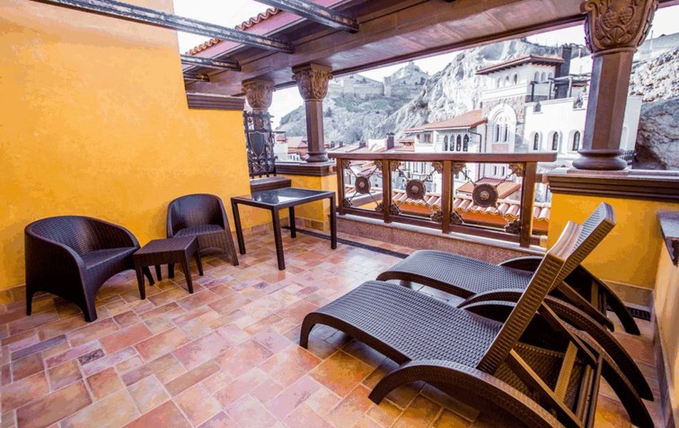 Комфорт 2-местный 1-комнатный (с террасой) Количество комнат: 1-комнатный Тип номера: Комфорт Дополнительное место: еврораскладушка Вид из номера: на двор: или бассейн и Генуэзскую крепость Кол-во доп. мест: 1 Кол-во номеров: 12 Кол-во основных мест: 2 Корпус: №3,4 Площадь (кв. м): 21 Мебель: вешалка, зеркало, кресло, кровати односпальные /одна двуспальная кровать, прикроватные тумбочки, стол, стул, тумба багажная, шкаф Оборудование: кондиционер, мини-холодильник, сейф, телевизор: LED, с IP-TV, телефон Санузел: с душем, туалетные принадлежности, фен Сервис: Wi-Fi бесплатно, room-сервис: 24 ч только в летнее время, мини-бар, смена полотенец: по требованию, смена постельного белья: по требованию, уборка номера: ежедневно, услуги внутренней телефонной связи Терраса: оборудована мебелью