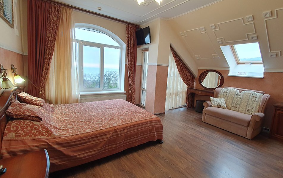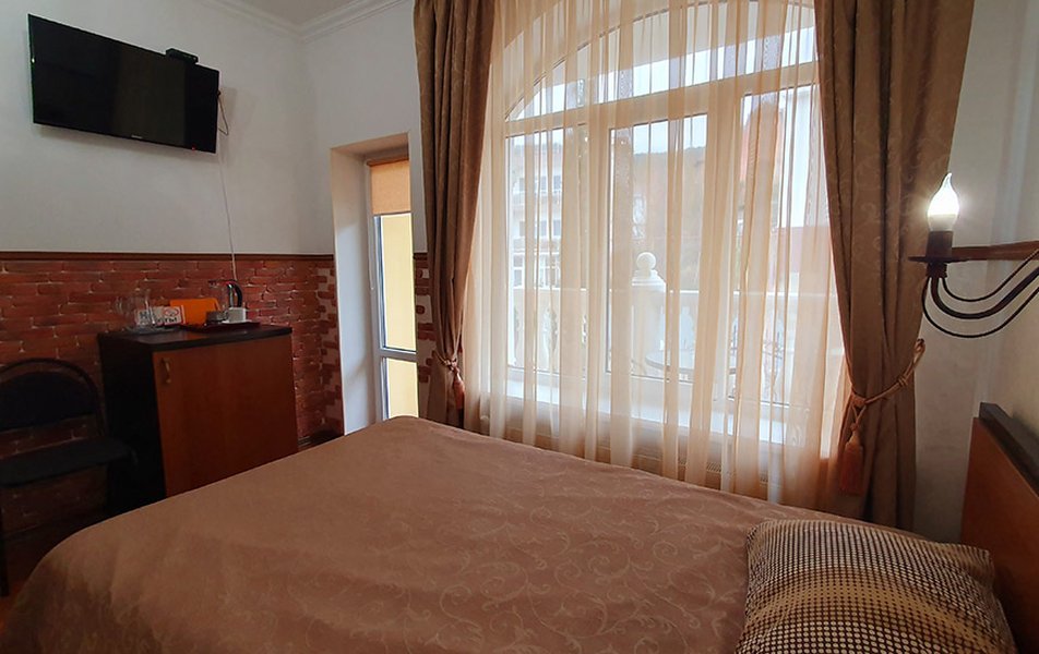 Стандартный 2-местный 1-комнатный (вид в сторону гор) Количество комнат: 1-комнатный Тип номера: Стандартный Дополнительное место: диван Кол-во доп. мест: 1 Кол-во основных мест: 2 Площадь (кв. м): 20 Балкон: с мебелью Мебель: диван, комод, кровать двуспальная, прикроватные тумбочки, шкаф Оборудование: кондиционер, сейф, телевизор, холодильник Санузел: с душем, туалетные принадлежности, фен Сервис: Wi-Fi бесплатно, смена полотенец, смена постельного белья, уборка номера