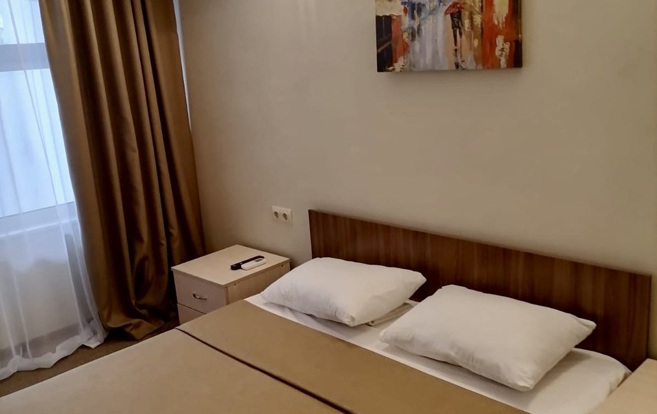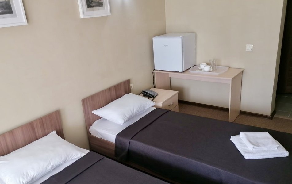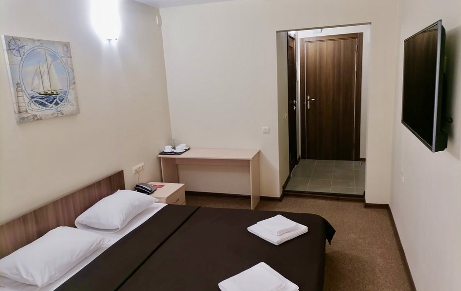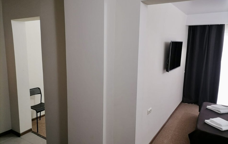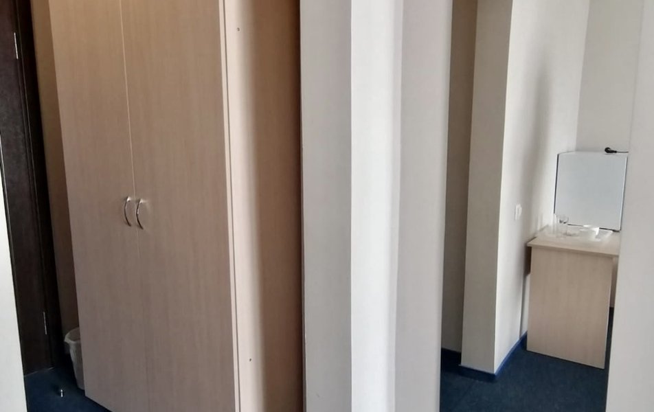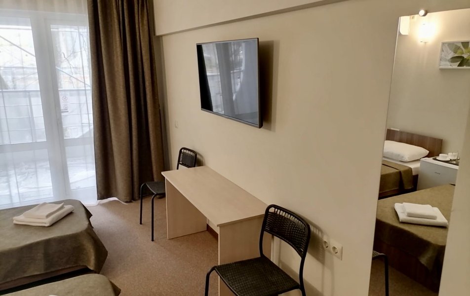 Комфорт 2-местный 2-комнатный Количество комнат: 2-комнатный Тип номера: Комфорт Кол-во доп. мест: 1 Кол-во основных мест: 2 Мебель: диван, кровать двуспальная, прикроватные тумбочки, стол, стулья, шкаф Оборудование: кондиционер, мини-холодильник, телевизор, телефон Санузел: с душем, туалетные принадлежности, фен Сервис: Wi-Fi бесплатно, смена полотенец, смена постельного белья, уборка номера, услуги внутренней телефонной связи