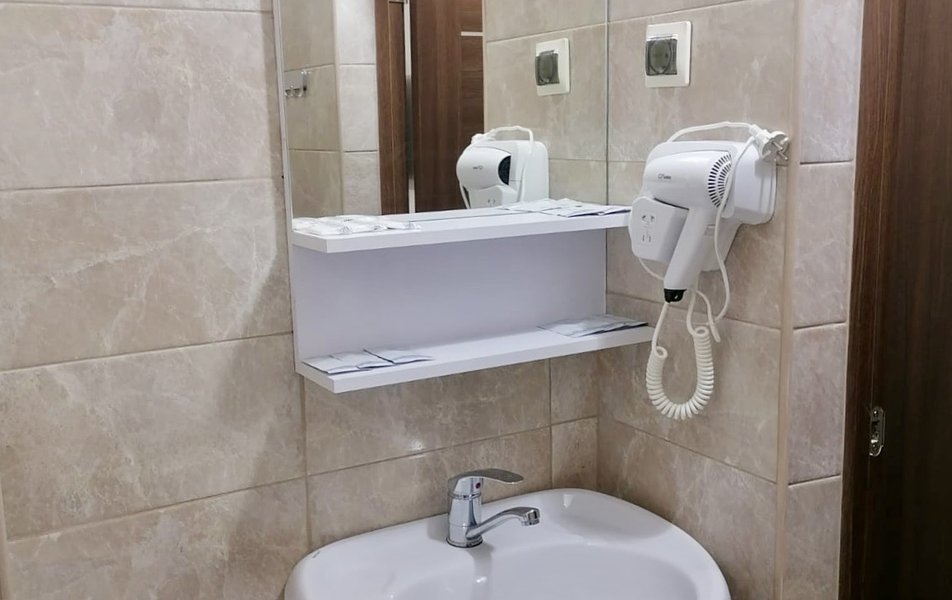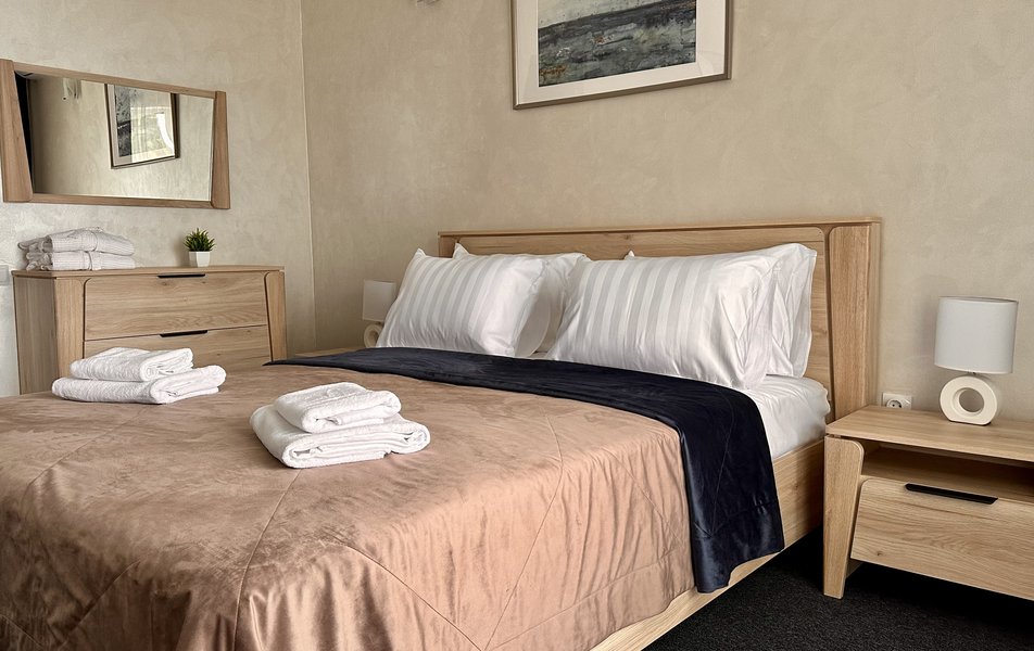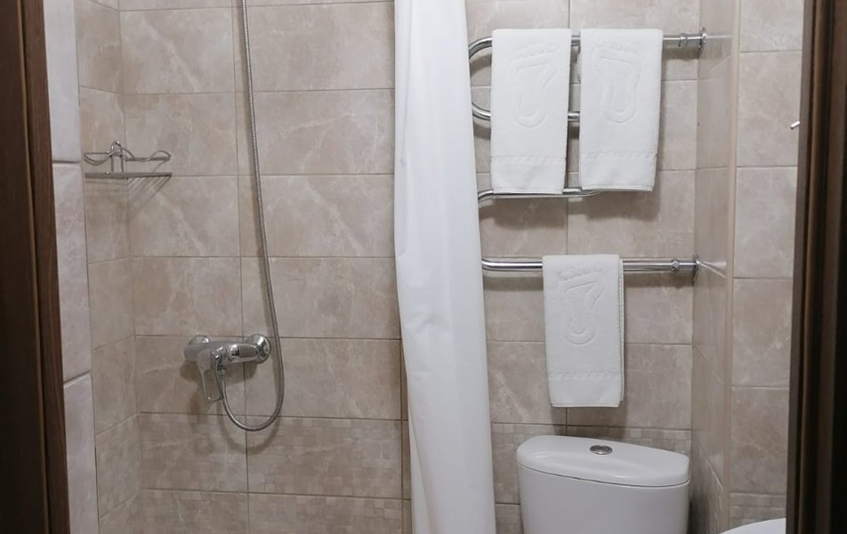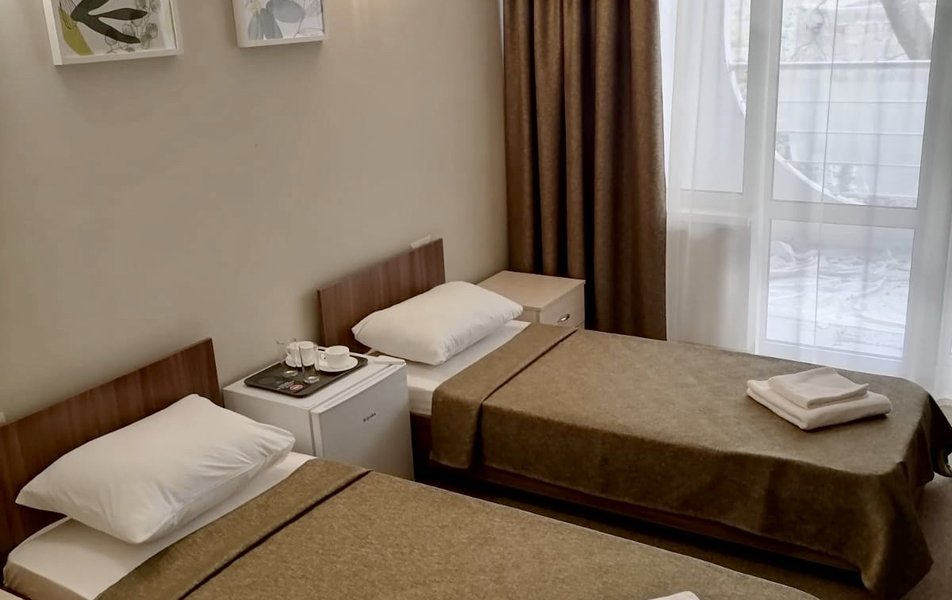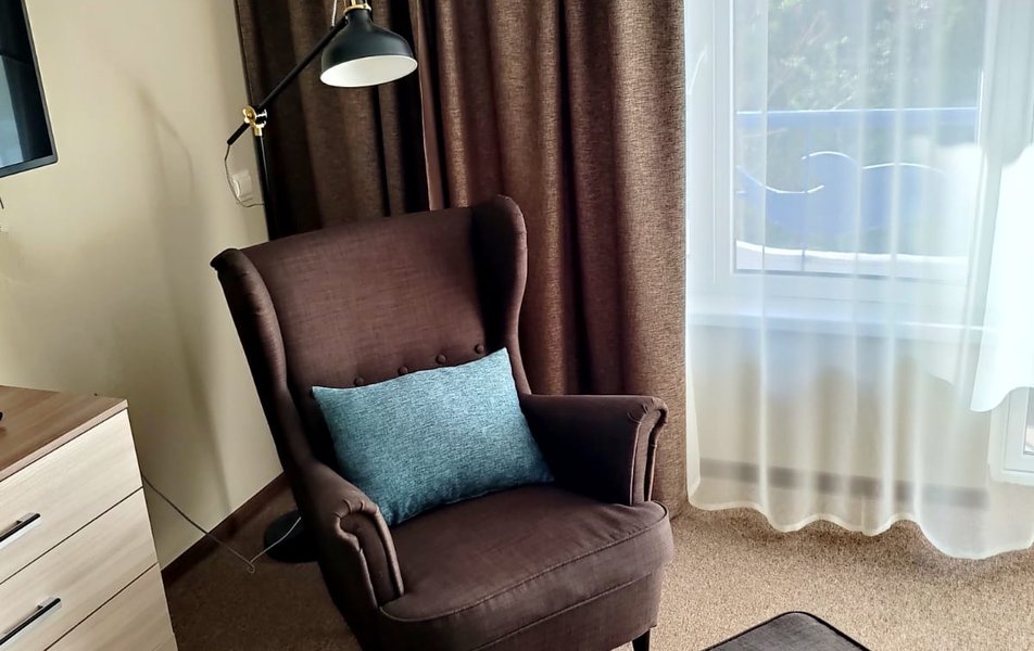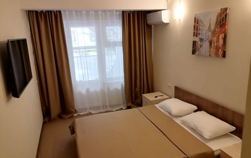 Комфорт 2-местный 2-комнатный Количество комнат: 2-комнатный Тип номера: Комфорт Кол-во доп. мест: 1 Кол-во основных мест: 2 Мебель: диван, кровать двуспальная, прикроватные тумбочки, стол, стулья, шкаф Оборудование: кондиционер, мини-холодильник, телевизор, телефон Санузел: с душем, туалетные принадлежности, фен Сервис: Wi-Fi бесплатно, смена полотенец, смена постельного белья, уборка номера, услуги внутренней телефонной связи