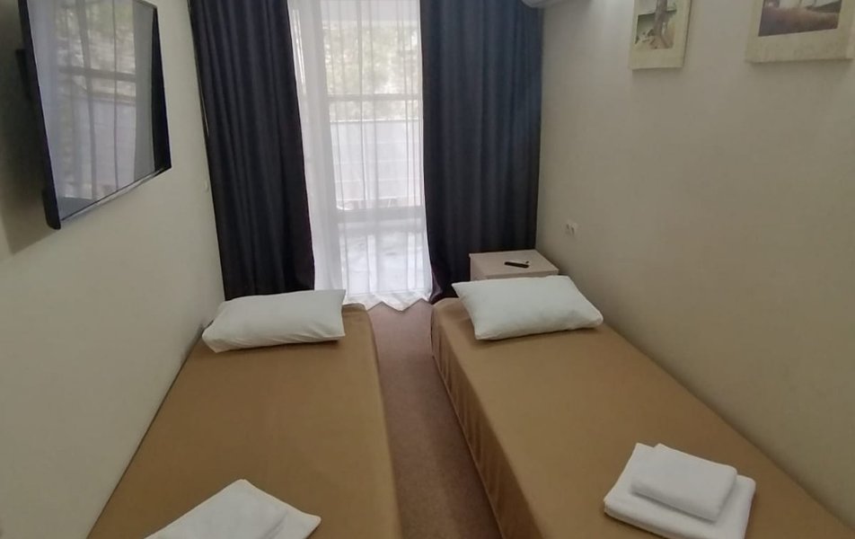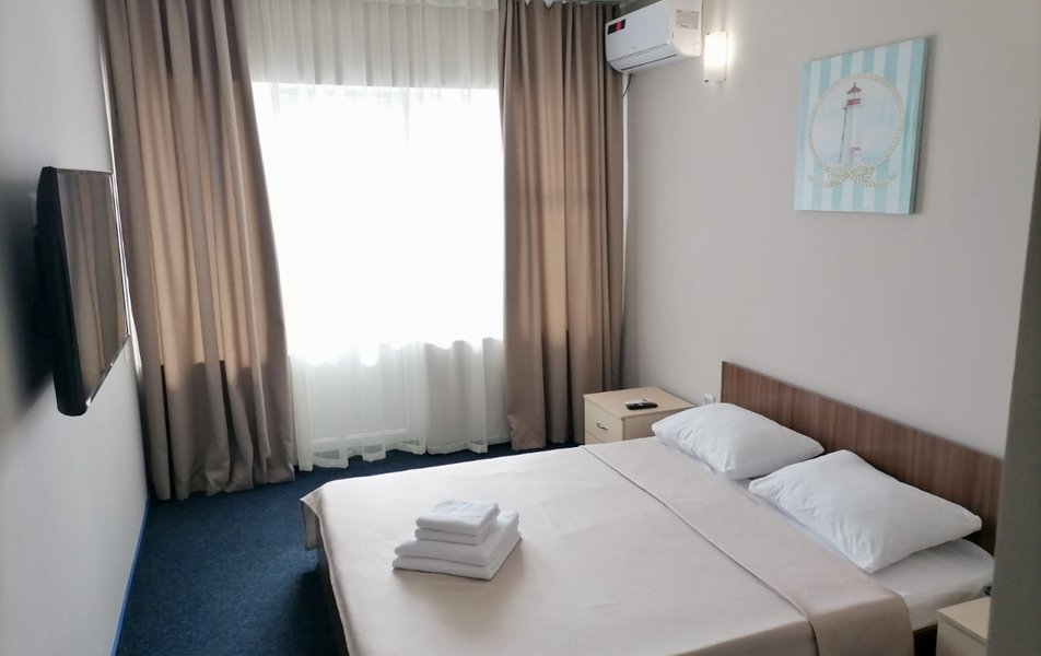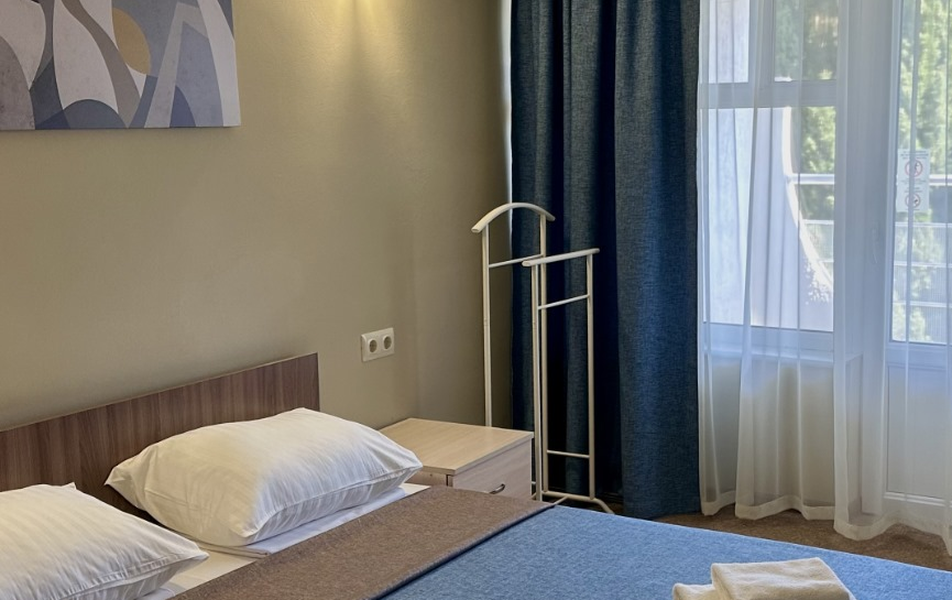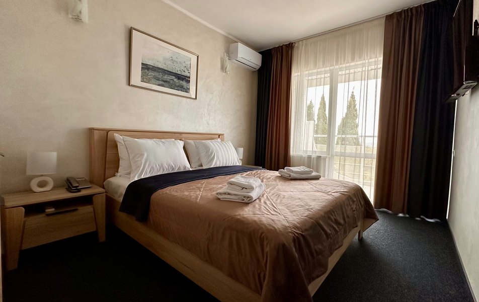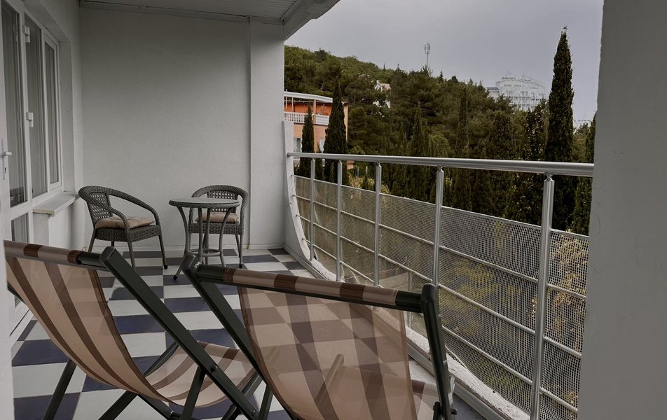 Люкс 3-местный 2-комнатный Количество комнат: 2-комнатный Тип номера: Люкс Дополнительное место: раскладной диван Вид из номера: на море Кол-во доп. мест: 3 Кол-во основных мест: 3 Балкон: с мебелью Мебель: диван, кровати односпальные, кровать двуспальная, прикроватные тумбочки, стол, стулья, шкаф Оборудование: кондиционер, мини-холодильник, телевизор, телефон, чайный набор посуды, электрочайник Санузел: биде, с ванной, туалетные принадлежности, фен Сервис: Wi-Fi бесплатно, смена полотенец, смена постельного белья, уборка номера, услуги внутренней телефонной связи