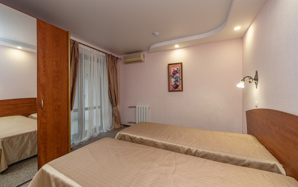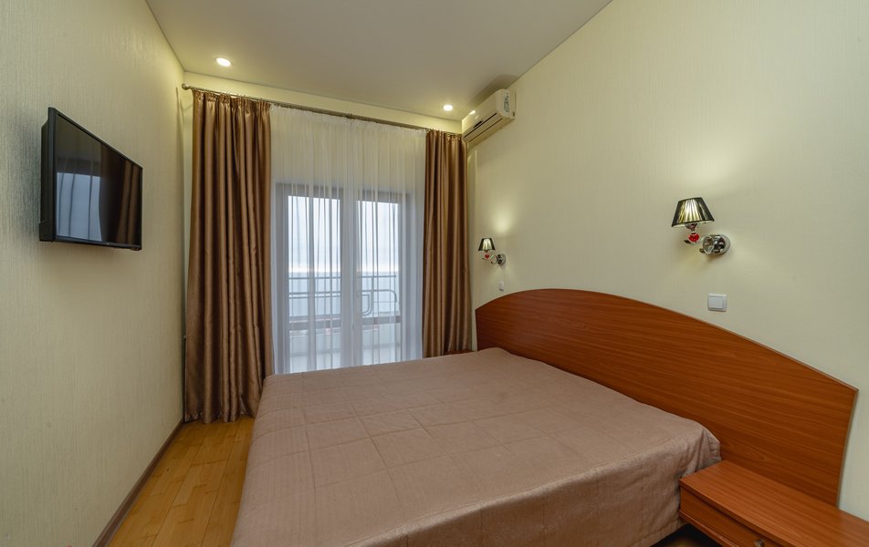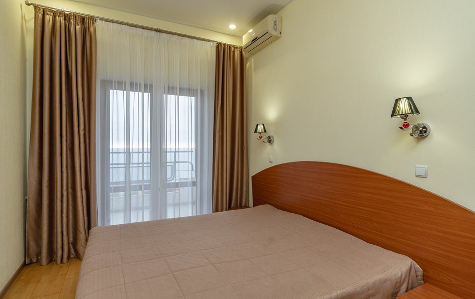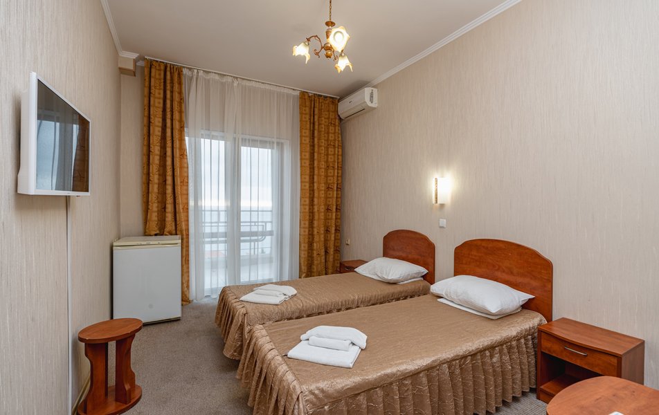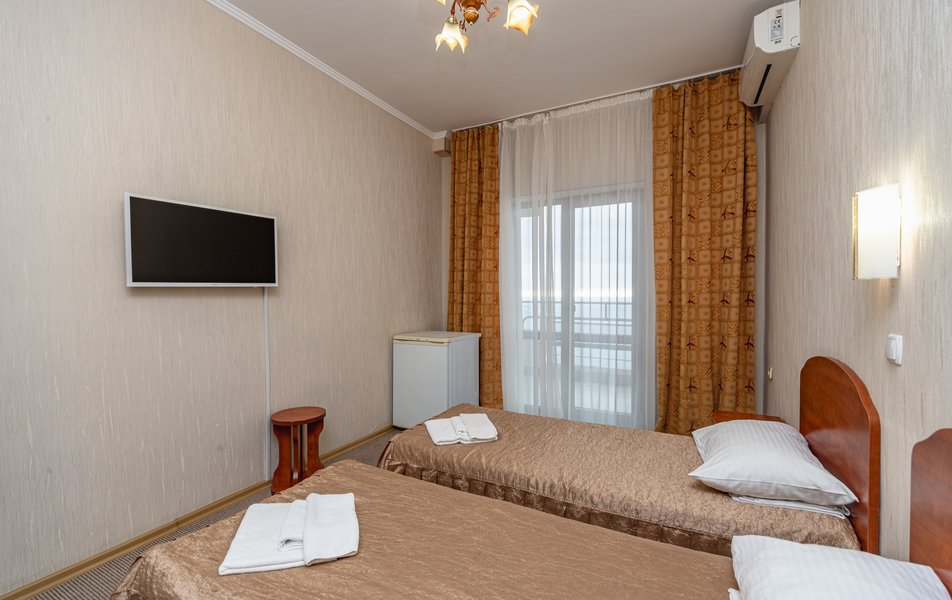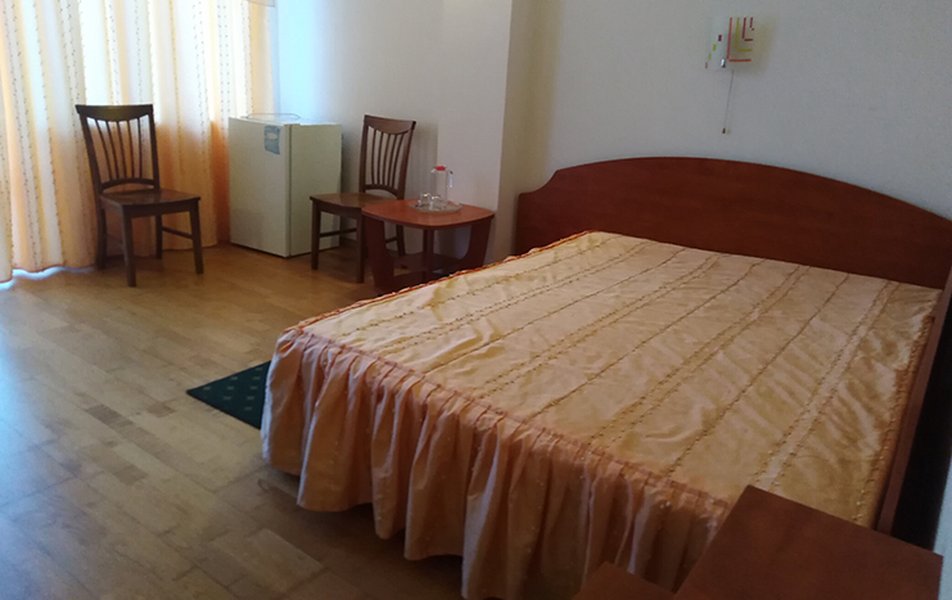 Коттедж 2-местный 1-комнатный (№22) Количество комнат: 1-комнатный Тип номера: Коттедж/Вилла Дополнительное место: еврораскладушка Кол-во доп. мест: 1 Кол-во основных мест: 2 Корпус: Коттедж Площадь (кв. м): 24 Балкон: с мебелью Мебель: вешалка, зеркало, кровать двуспальная, прикроватные тумбочки, столик журнальный, стулья, шкаф Оборудование: кондиционер, телевизор, холодильник Санузел: с душевой кабиной, туалетные принадлежности Сервис: Wi-Fi бесплатно, смена полотенец, смена постельного белья, уборка номера