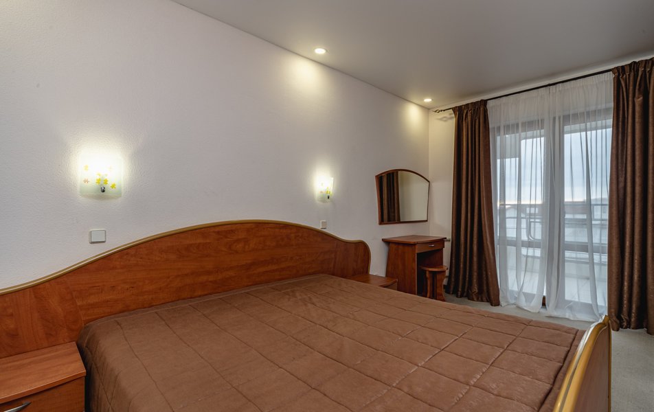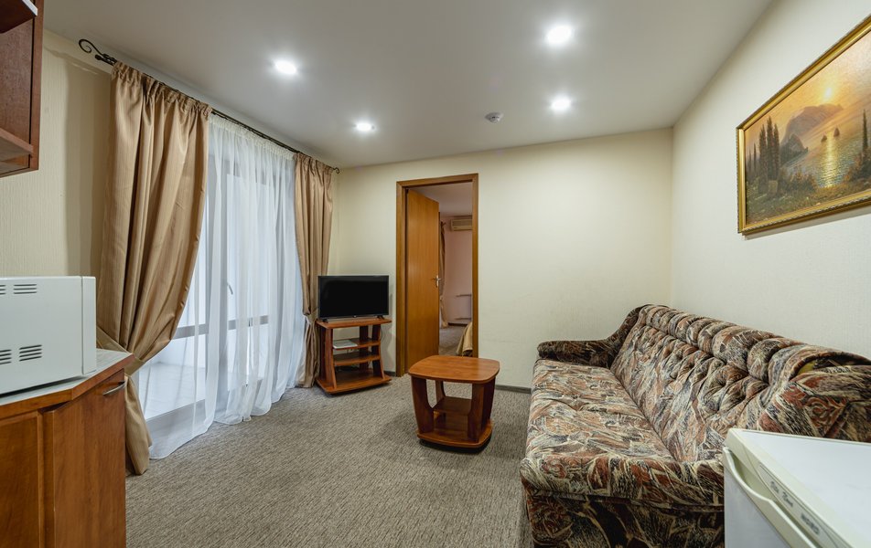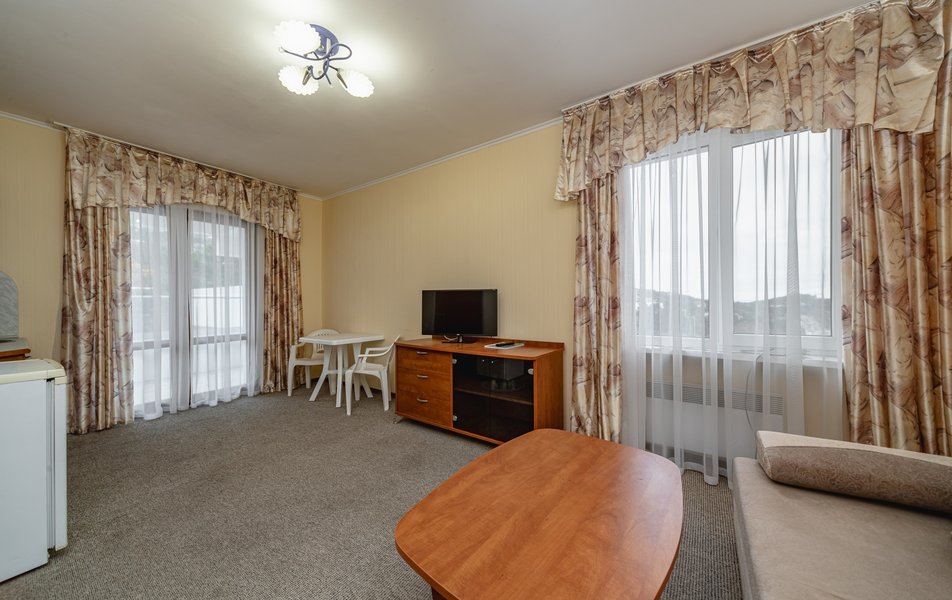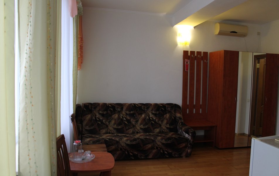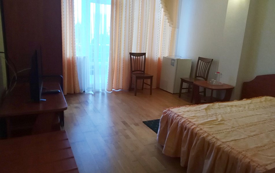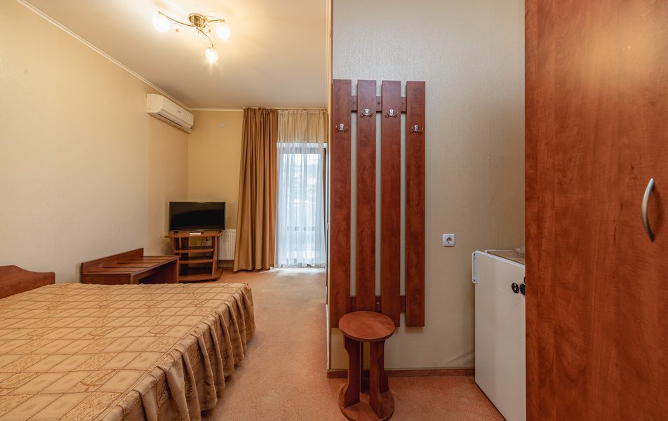 Коттедж 2-местный 1-комнатный (№21) Количество комнат: 1-комнатный Тип номера: Коттедж/Вилла Дополнительное место: еврораскладушка Вид из номера: на парк Кол-во доп. мест: 1 Кол-во номеров: 1 Кол-во основных мест: 2 Корпус: Коттедж Площадь (кв. м): 18 Балкон: с мебелью Мебель: вешалка, зеркало, кровать двуспальная, прикроватные тумбочки, столик журнальный, стулья, шкаф Оборудование: кондиционер, телевизор, холодильник Санузел: бойлер, с душевой кабиной, туалетные принадлежности Сервис: Wi-Fi бесплатно, смена полотенец, смена постельного белья, уборка номера
