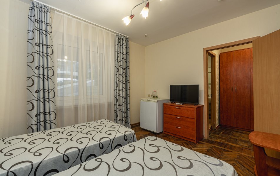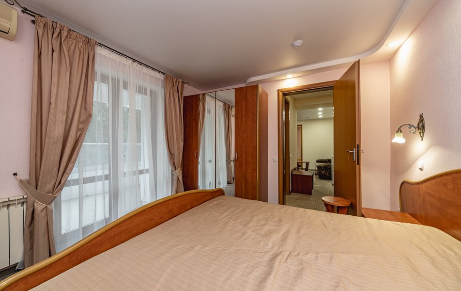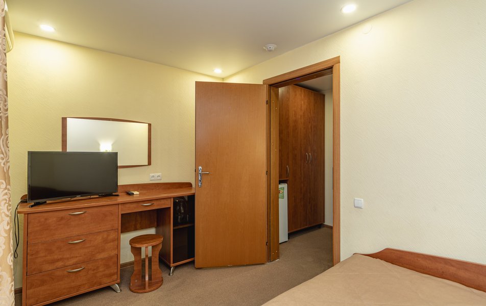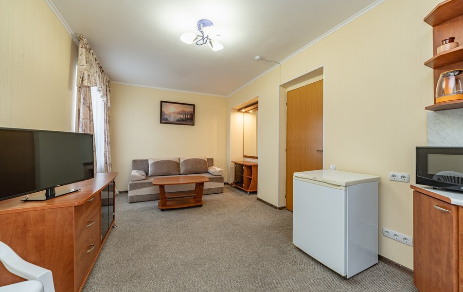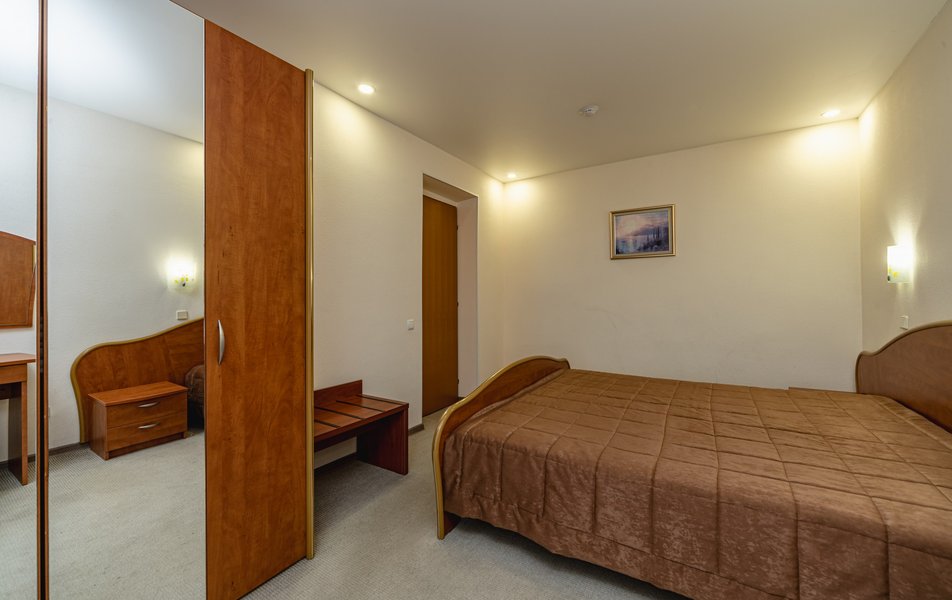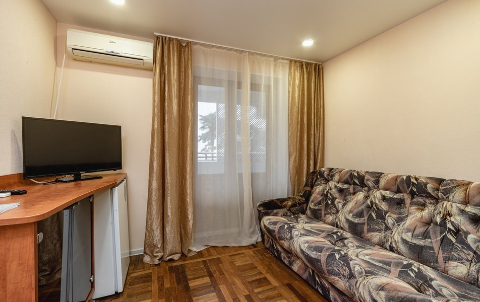 Коттедж 2-местный 1-комнатный (№21) Количество комнат: 1-комнатный Тип номера: Коттедж/Вилла Дополнительное место: еврораскладушка Вид из номера: на парк Кол-во доп. мест: 1 Кол-во номеров: 1 Кол-во основных мест: 2 Корпус: Коттедж Площадь (кв. м): 18 Балкон: с мебелью Мебель: вешалка, зеркало, кровать двуспальная, прикроватные тумбочки, столик журнальный, стулья, шкаф Оборудование: кондиционер, телевизор, холодильник Санузел: бойлер, с душевой кабиной, туалетные принадлежности Сервис: Wi-Fi бесплатно, смена полотенец, смена постельного белья, уборка номера