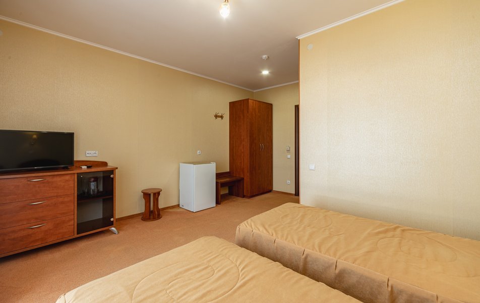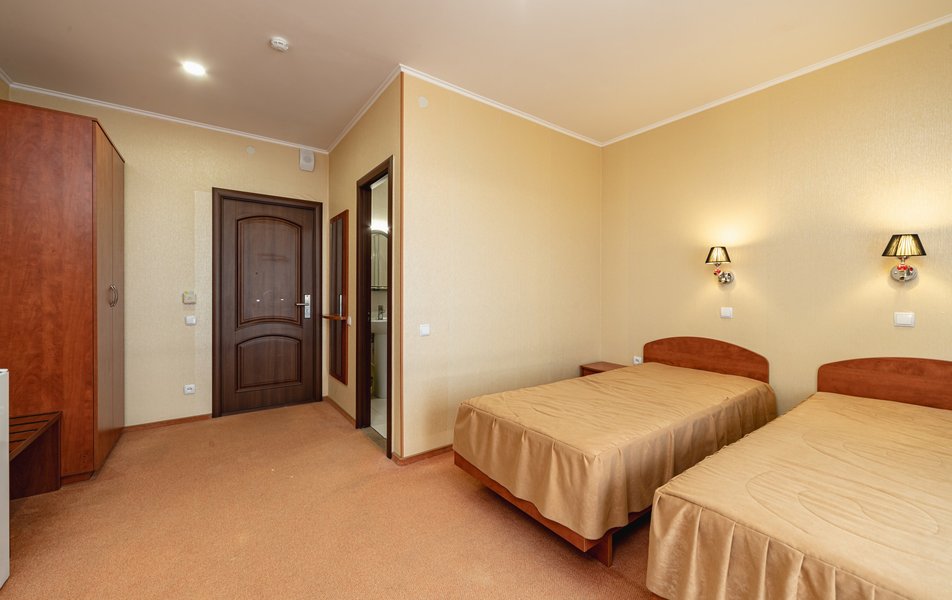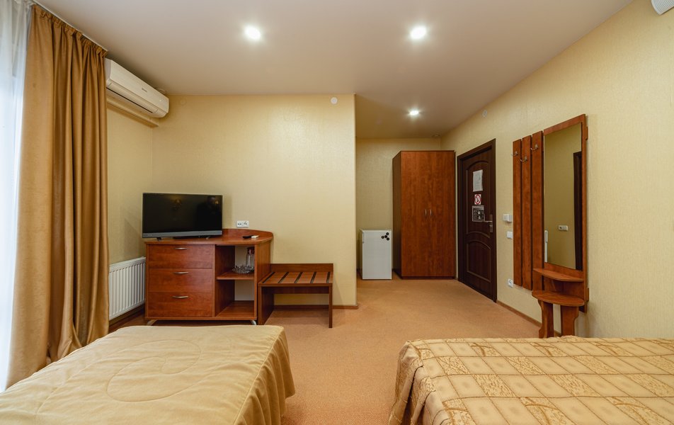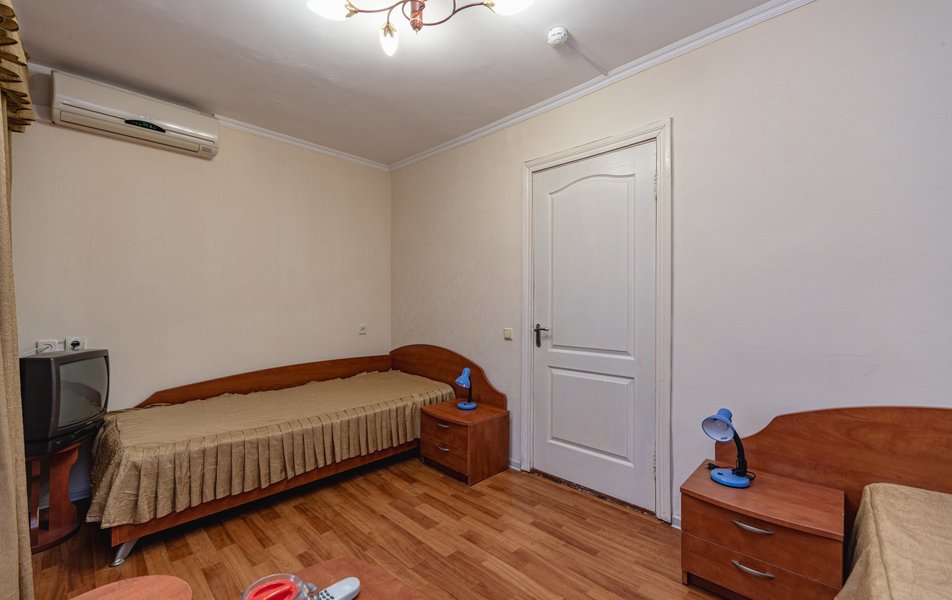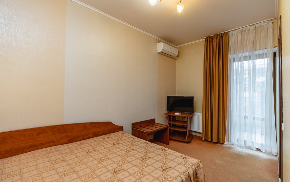 Коттедж 2-местный 1-комнатный (№12) Количество комнат: 1-комнатный Тип номера: Коттедж/Вилла Дополнительное место: еврораскладушка Кол-во доп. мест: 1 Кол-во основных мест: 2 Корпус: Коттедж Площадь (кв. м): 24 Мебель: вешалка, зеркало, кровать двуспальная, прикроватные тумбочки, столик журнальный, стулья, шкаф Оборудование: кондиционер, телевизор, холодильник Санузел: с душевой кабиной, туалетные принадлежности Сервис: смена полотенец, смена постельного белья, уборка номера