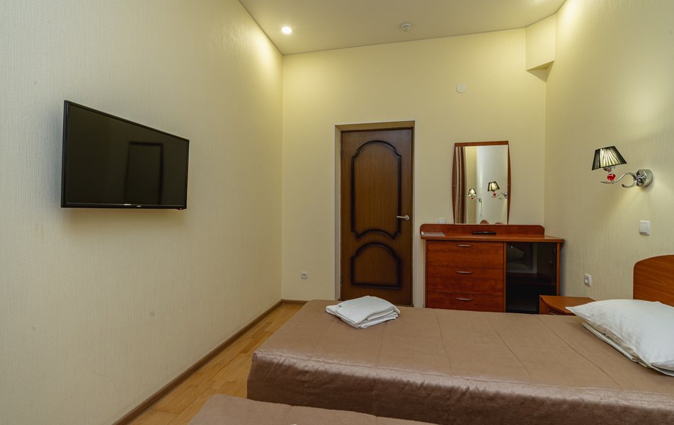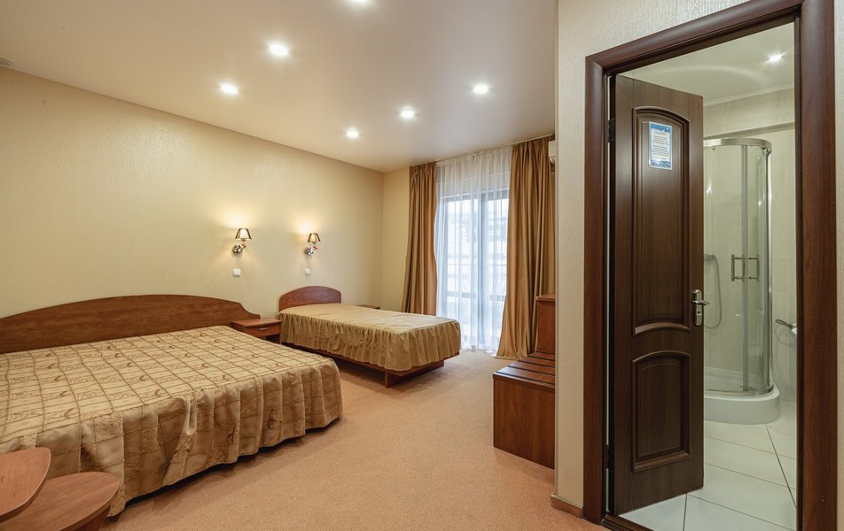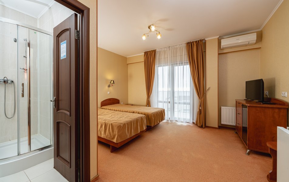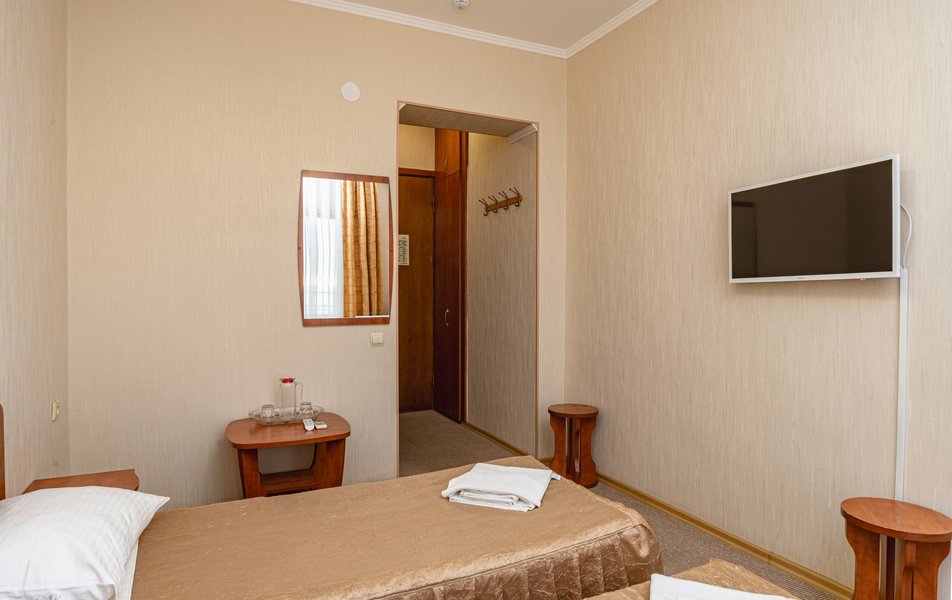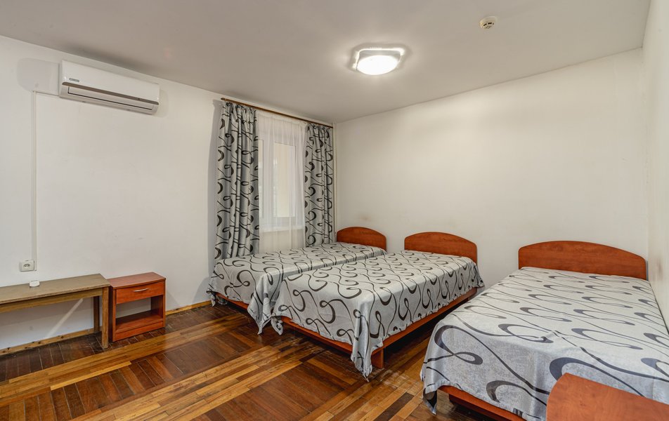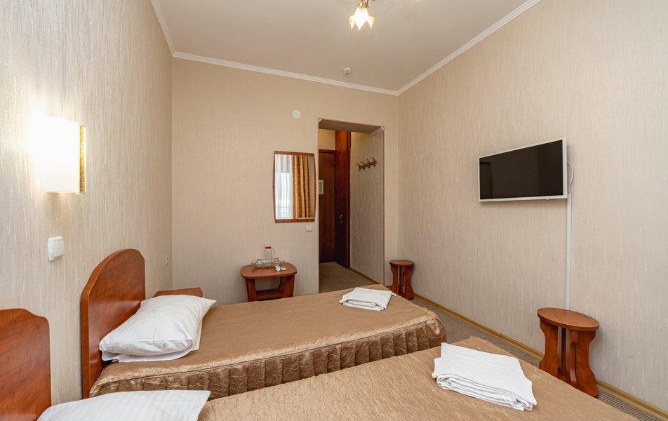 Коттедж 2-местный 1-комнатный (№12) Количество комнат: 1-комнатный Тип номера: Коттедж/Вилла Дополнительное место: еврораскладушка Кол-во доп. мест: 1 Кол-во основных мест: 2 Корпус: Коттедж Площадь (кв. м): 24 Мебель: вешалка, зеркало, кровать двуспальная, прикроватные тумбочки, столик журнальный, стулья, шкаф Оборудование: кондиционер, телевизор, холодильник Санузел: с душевой кабиной, туалетные принадлежности Сервис: смена полотенец, смена постельного белья, уборка номера