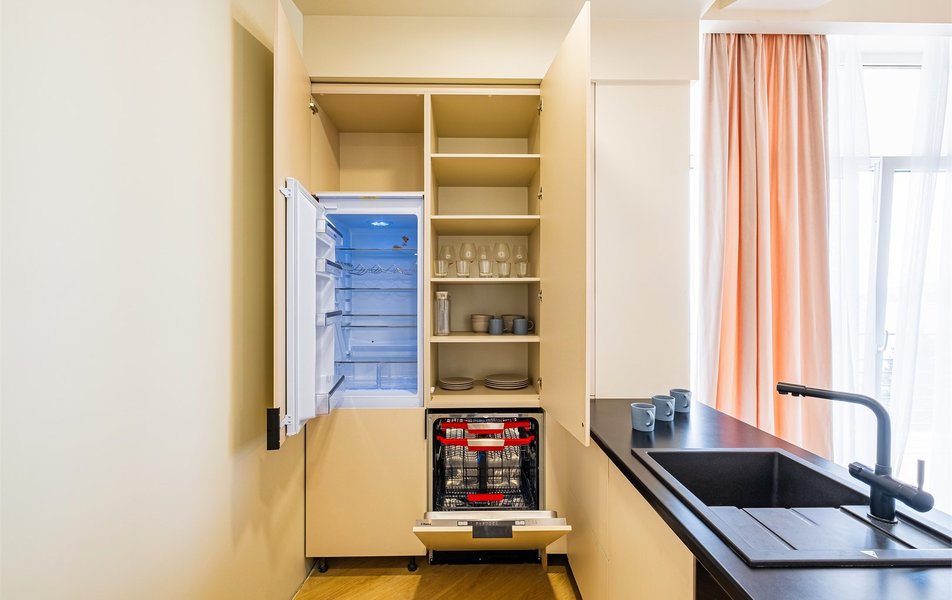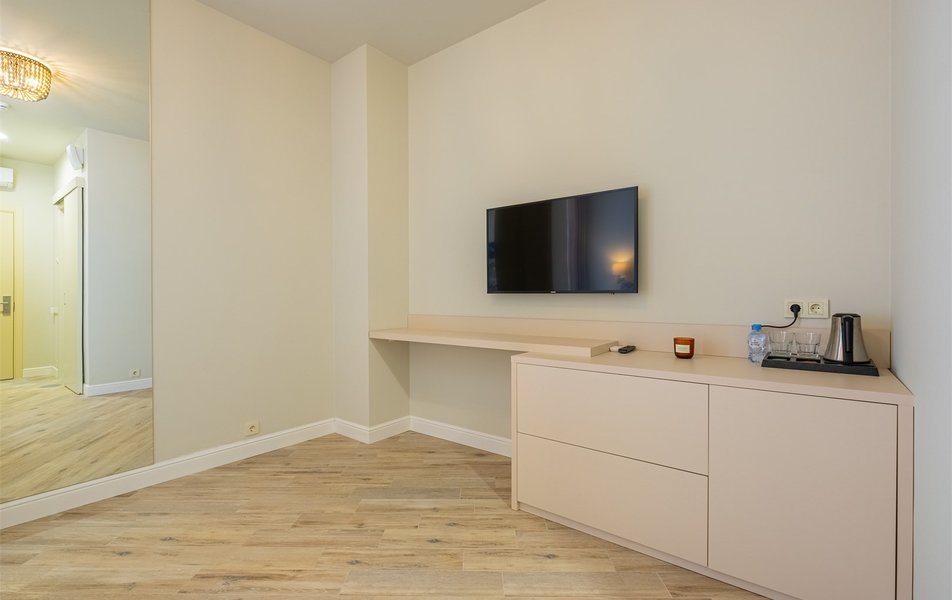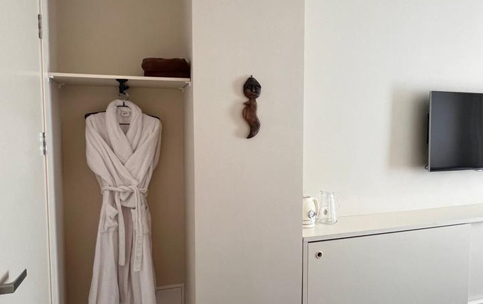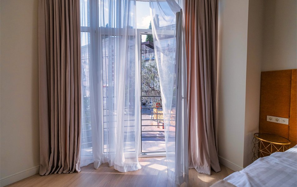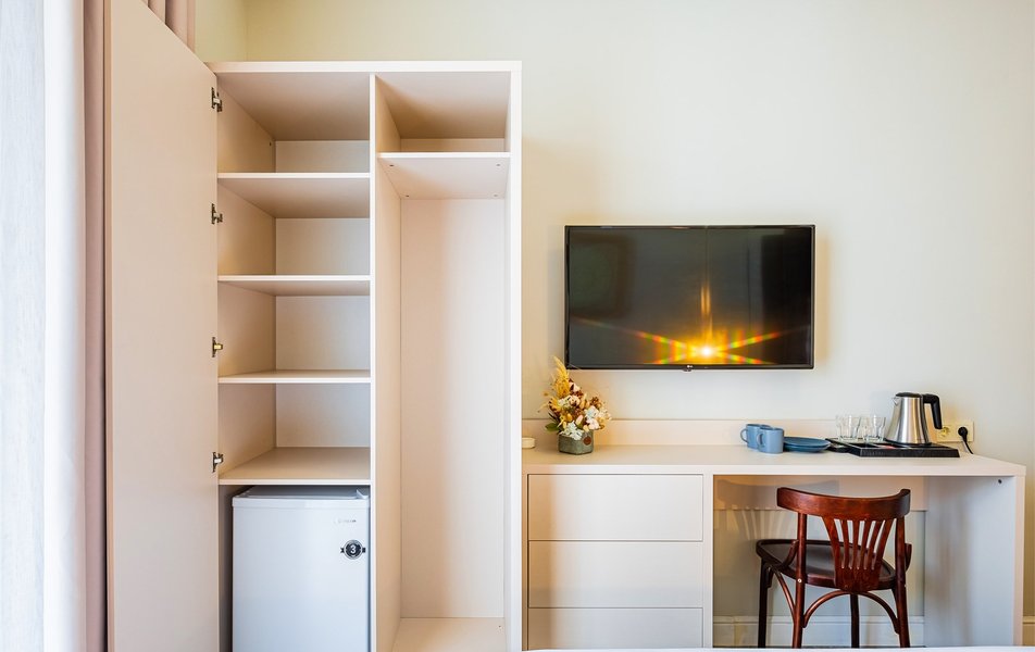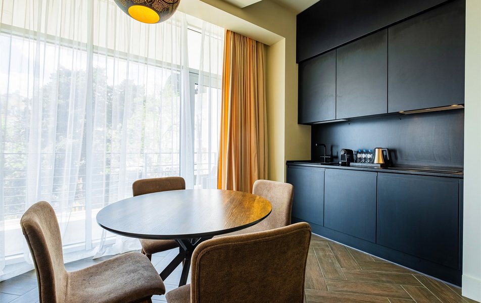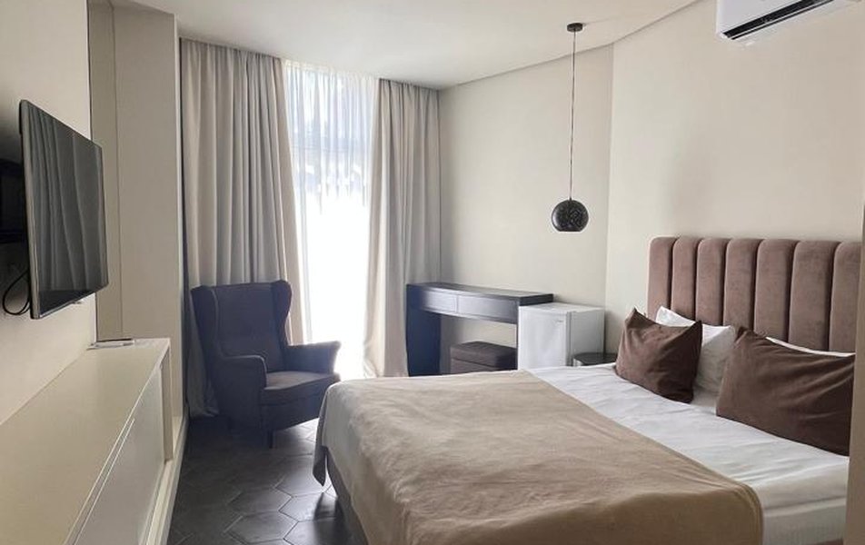 Апартаменты 4-местный 2-комнатный Количество комнат: 2-комнатный Тип номера: Апартаменты Вид из номера: частичный вид на море Кол-во основных мест: 4 Площадь (кв. м): 40 Балкон: с мебелью Мебель: вешалка, диван раскладной, зеркало, кровать двуспальная, кухонная мебель, прикроватные тумбочки, стол обеденный, стулья, шкаф Оборудование: кофемашина, мини-холодильник, набор посуды, сейф, сплит-система, сушилка для белья, телевизор, чайный набор посуды, электрочайник Санузел: с душем, тапочки, туалетные принадлежности, фен, халат Сервис: Wi-Fi бесплатно, смена полотенец, смена постельного белья, уборка номера