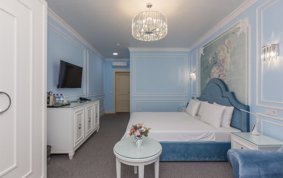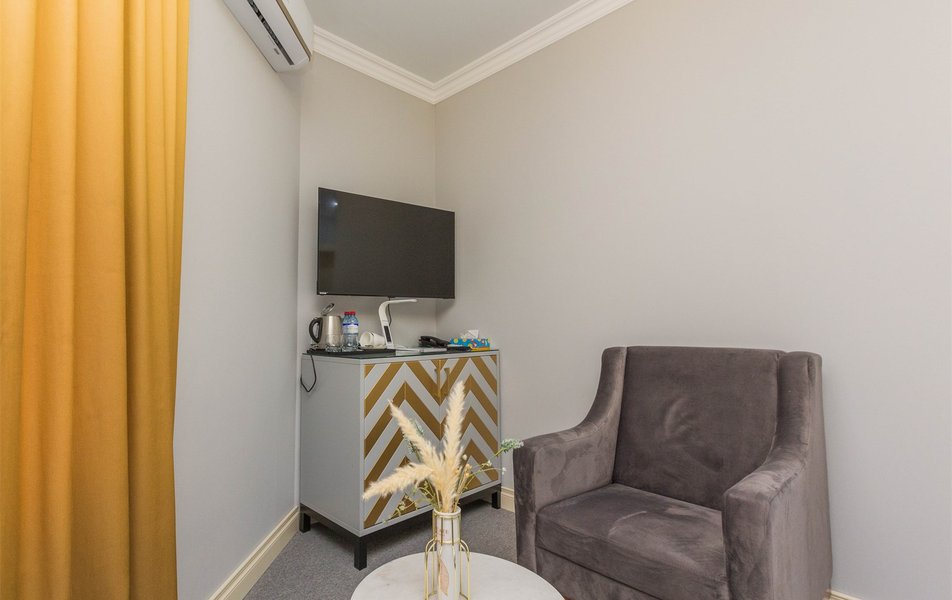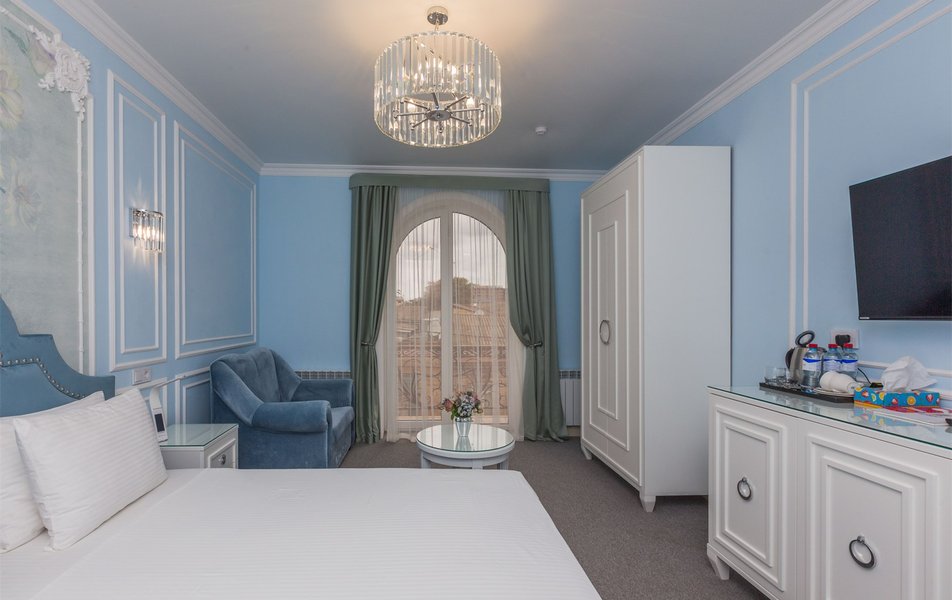 Остались очень довольны выбором данного отеля. Впечатления относительно всех аспектов проживания самые положительные. Благодарны персоналу отеля за отличный отдых. Экстерьер и интерьер отеля красивые и стильные. Размещались в стандартном двухместном номере 301. Номер просторный, с современным дизайном, уютный. В ванной комнате большая душевая. В отеле вода из-под крана фильтрованная. В номере есть халаты, тапочки, шетка для одежды, фен, сейф, кондиционер, холодильник (в нем платные позиции мини-бара), чайник, стаканы, кружки, ложечки, чай/кофе и бутылочка воды 0,5 на каждого гостя (пополнятются каждый день). На ресепшен можно попросить штопор, в номере есть открывалка. Предоставляется гель для душа, шампунь и кондиционер для волос, лосьон для тела. Wi-Fi в номере хороший. Вид из номера открывается на город и гору - очень красиво. Уборка, замена полотенец каждый день. Также за 5 суток проживания была смена постельного белья. Рядом с ресепшен есть кулер с водой. Все сотрудники очень вежливые, отзывчивые и приятные. Это ценно, встречается далеко не везде. Завтраки с 08:00 по меню – заказ с предыдущего дня. 2 основных блюда и напиток. Фото меню прилагаю к отзыву. Выбор большой, все очень вкусно и сытно, красиво и аккуратно подается. Если вы рано утром уезжаете на экскурсию, то можно заранее (с вечера) заказать завтрак с собой. Трансфер из аэропорта в отель и обратно мы заказывали у отеля, естественно заранее. Отель находится в центре города на красивой прогулочной улице с множеством ресторанов. Рядом площадь со светомузыкальным фонтаном. Минут 20 пешком до дикого выхода к морю. До крепости ходили пешком через старый город. До центральной набережной нужно ехать на машрутке/такси.