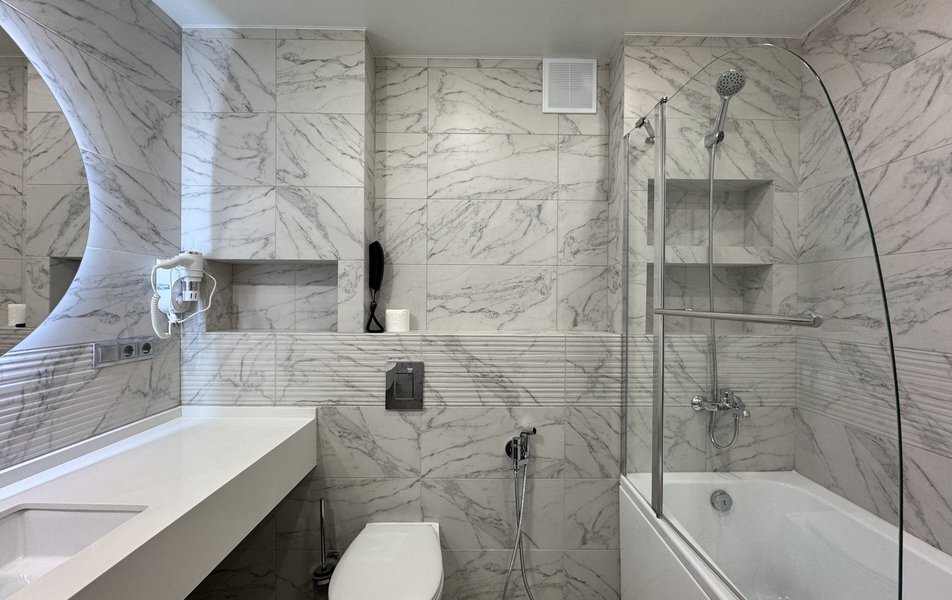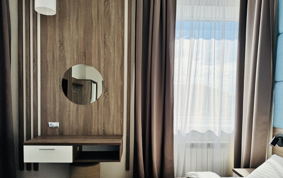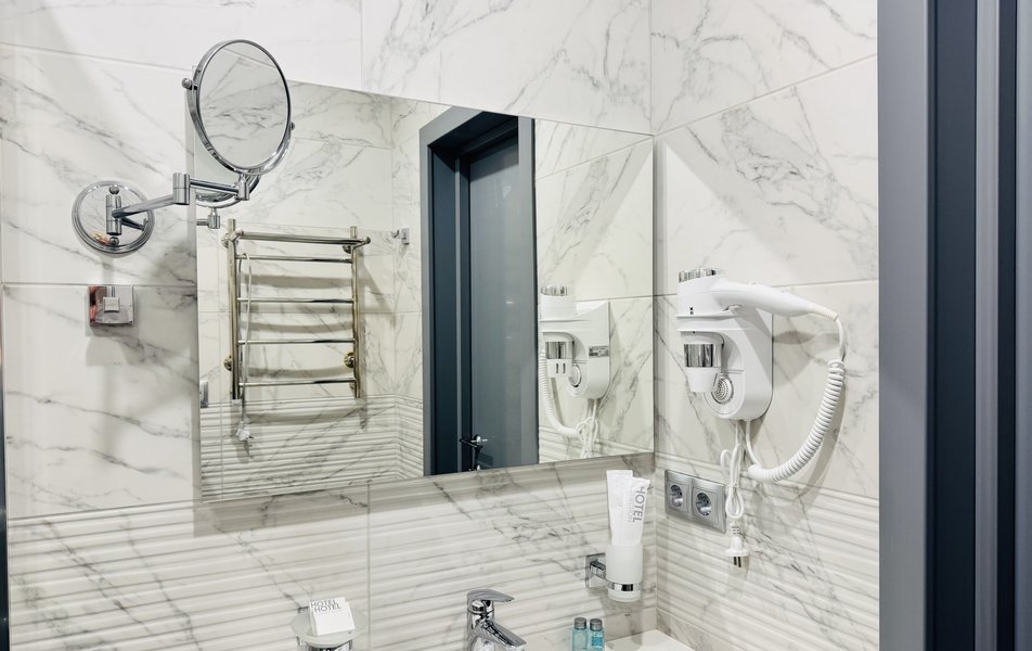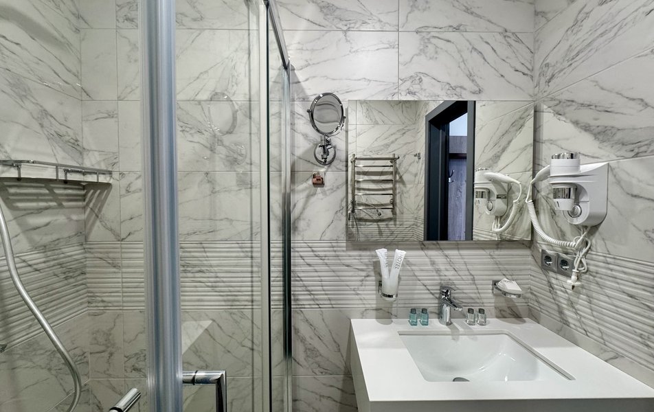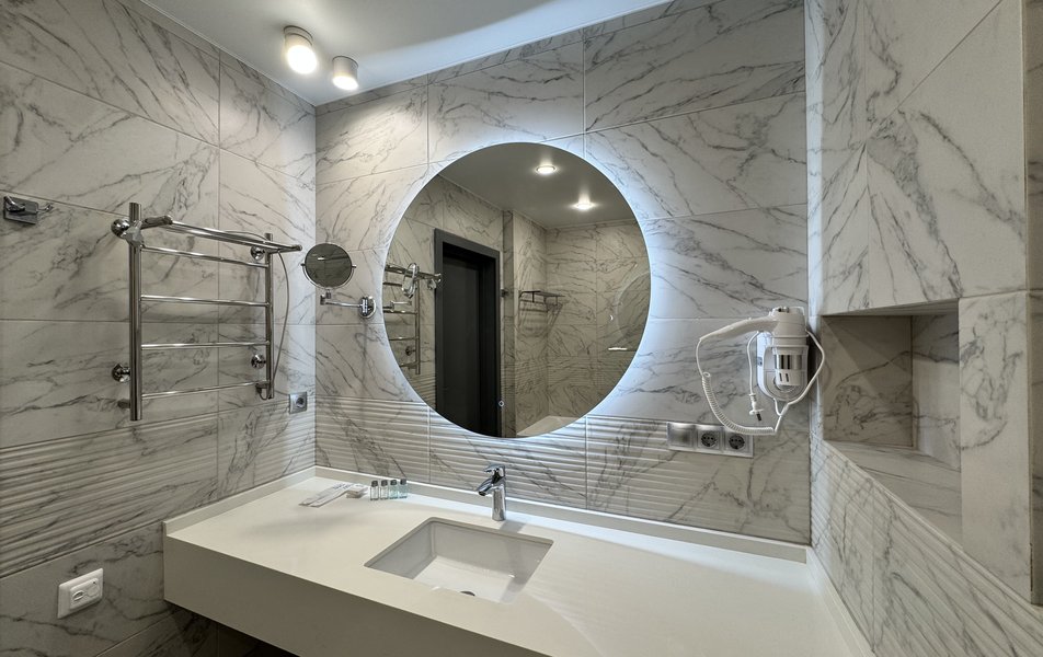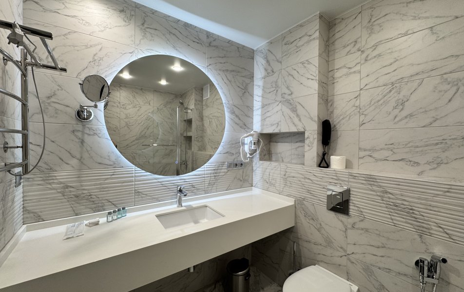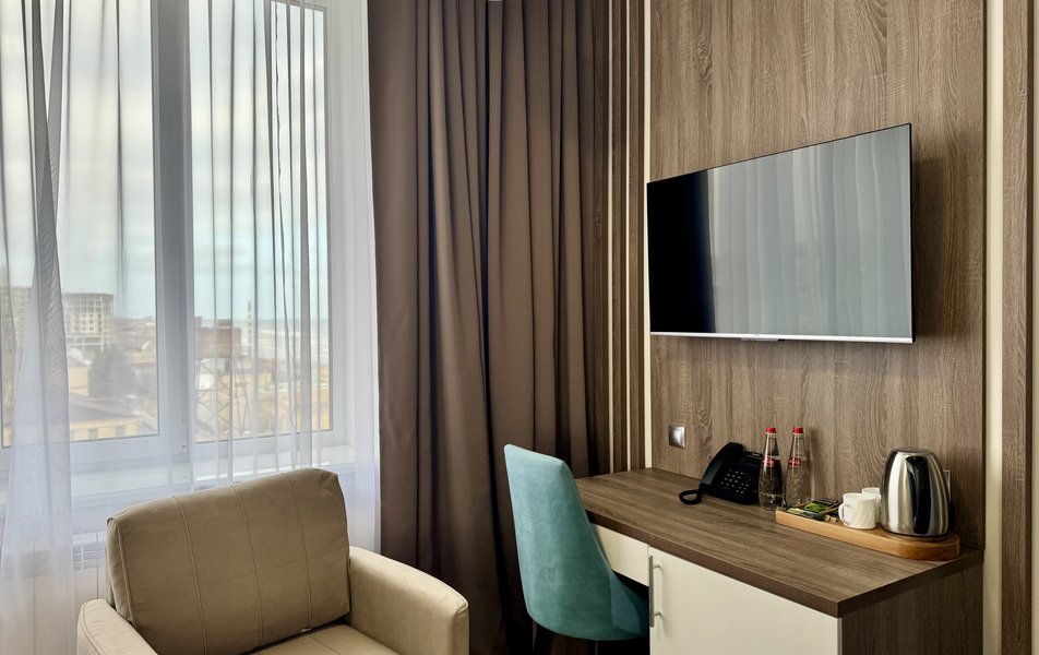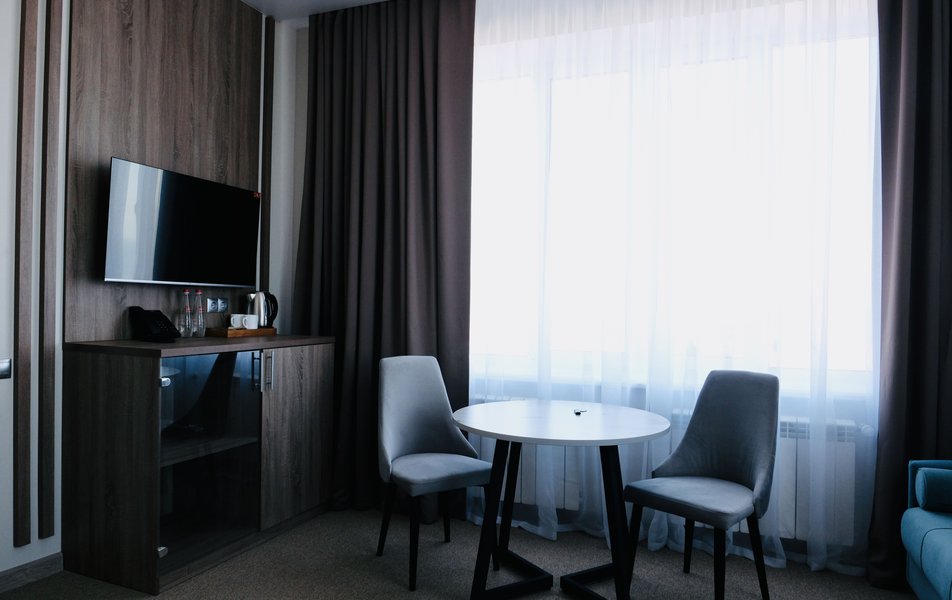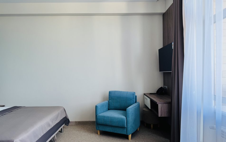 Джуниор Сюит 2-местный 1-комнатный Количество комнат: 1-комнатный Тип номера: Джуниор Сюит Кол-во основных мест: 2 Площадь (кв. м): 26 Мебель: вешалка, зеркало, кровать двуспальная, прикроватные тумбочки, стол, стулья, шкаф Оборудование: кондиционер, телевизор Санузел: с душевой кабиной, туалетные принадлежности, фен Сервис: Wi-Fi бесплатно, смена полотенец, смена постельного белья, уборка номера