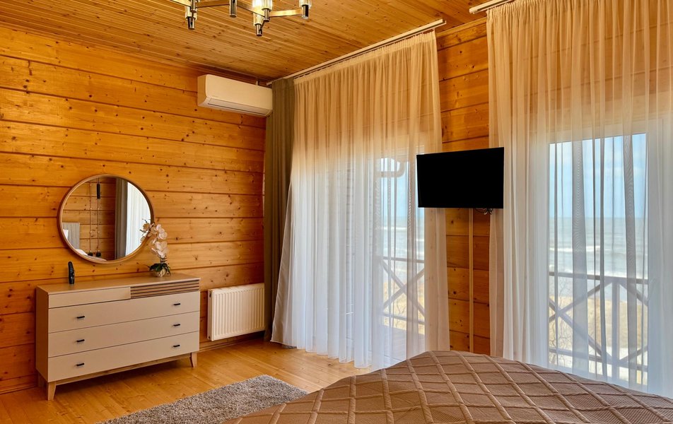 Бунгало 2-местный 1-комнатный Количество комнат: 1-комнатный Кол-во основных мест: 2 Площадь (кв. м): 30 Мебель: вешалка, зеркало, кровать двуспальная, прикроватные тумбочки, стол, стулья, шкаф Оборудование: кондиционер, телевизор Санузел: с душем, туалетные принадлежности, фен Сервис: Wi-Fi бесплатно