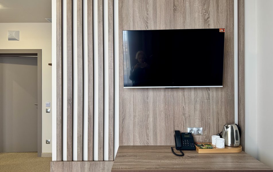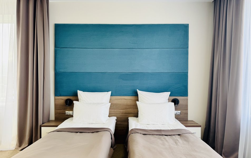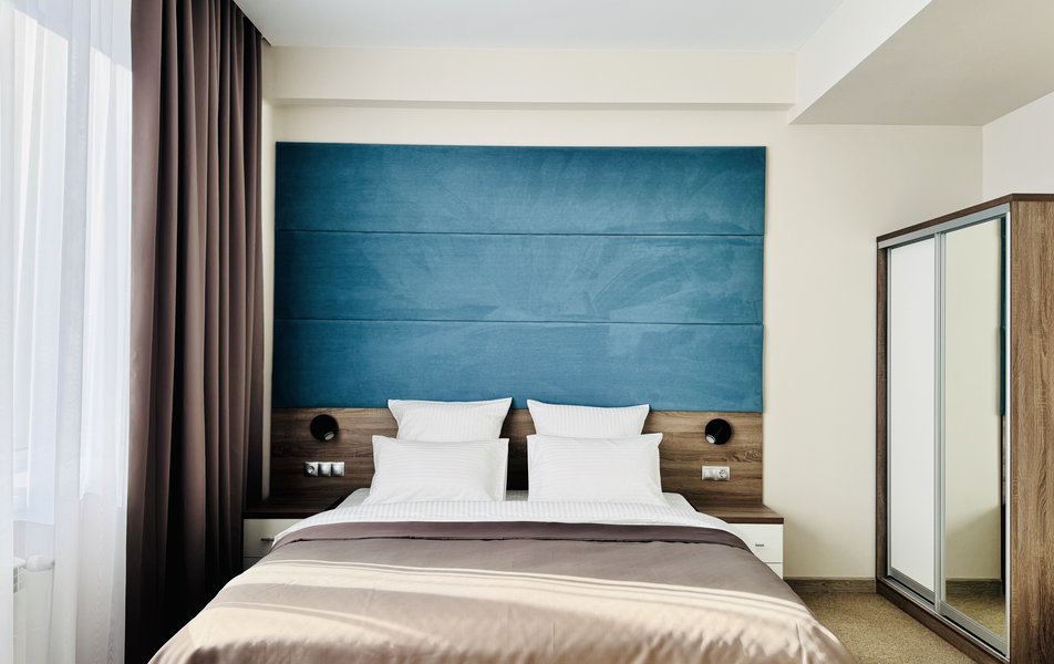 Делюкс 2-местный 1-комнатный Количество комнат: 1-комнатный Тип номера: Делюкс Кол-во основных мест: 2 Площадь (кв. м): 35 Мебель: вешалка, зеркало, кровать двуспальная, прикроватные тумбочки, стол, стулья, шкаф Оборудование: кондиционер, телевизор Санузел: с душем, туалетные принадлежности, фен Сервис: Wi-Fi бесплатно, смена полотенец, смена постельного белья, уборка номера