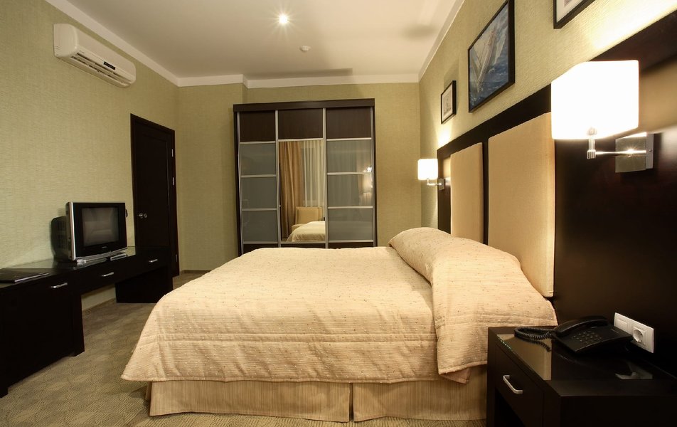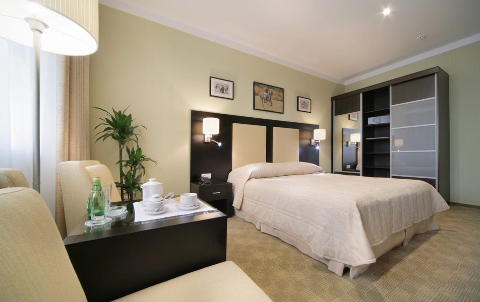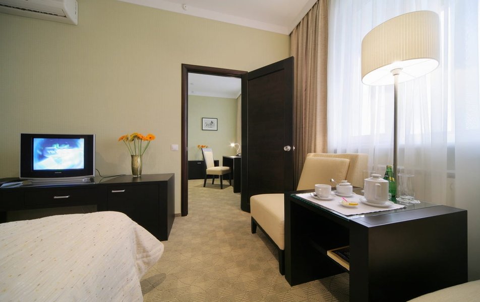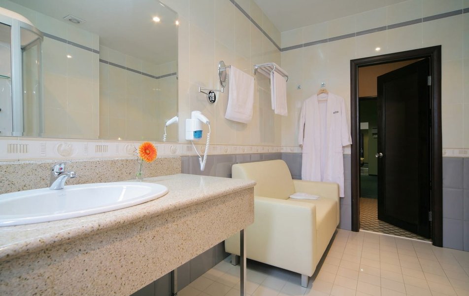 Отель оцениваю на 3 , в целом атмосфера была приятная Плюсы: На завтраке вкусные сардельки и блинчики Чистый номер Дружелюбный персонал Минусы: Далеко от центра В ванной включалась вытяжка и сразу неприятно пахло сигаретами.... На завтрак был подан не очень вкусный омлет... хотя обычно всегда его беру в других местах В нашем номере 503 была протечка когда-то, видимо, давно, однако след на потолке остался до сих пор, да и често говоря мебель для отеля 4 звёзды уже устарела, много царапин и сколов....