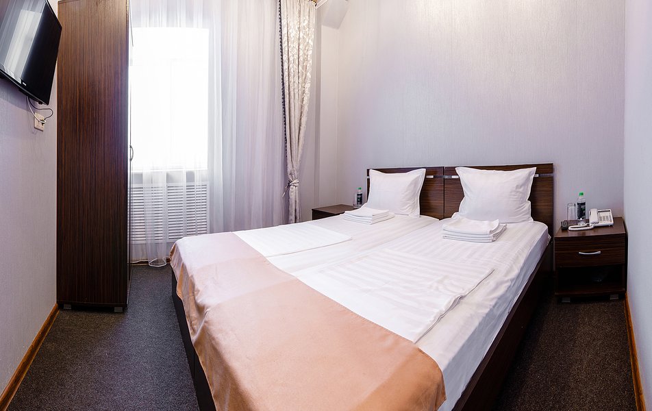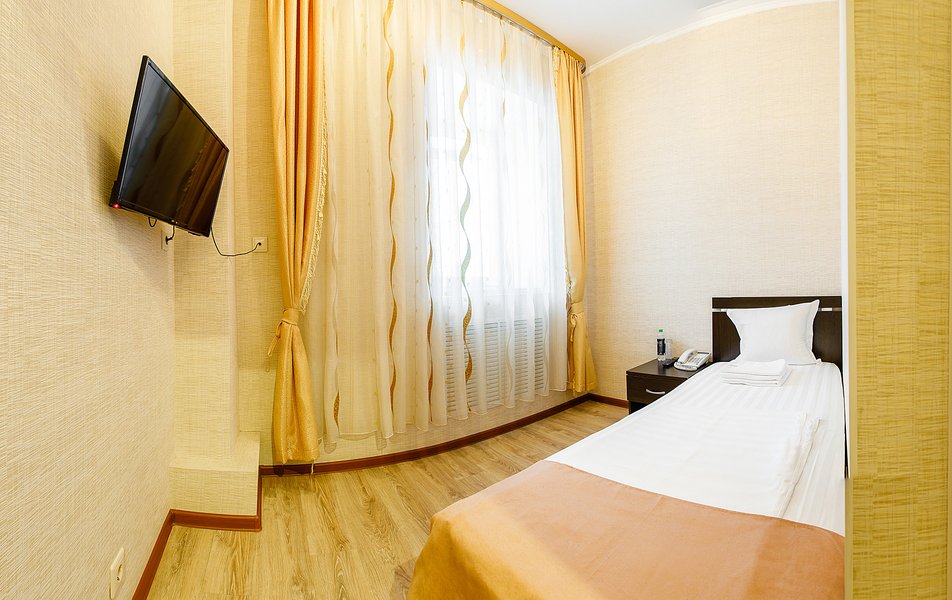 Останавливался в одноместном номере на одну ночь, в целом все понравилось. Есть охраняемая парковка. Приветливый администратор. Номер чистый, но маленький. Есть кондиционер и телевизор. шкаф, собственная ванная комната, туалет. Есть ресторан.