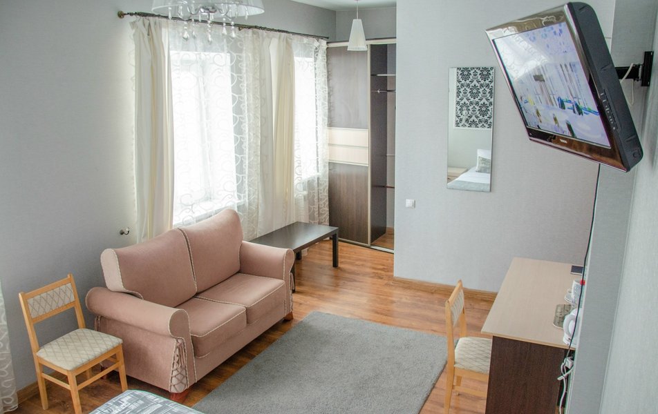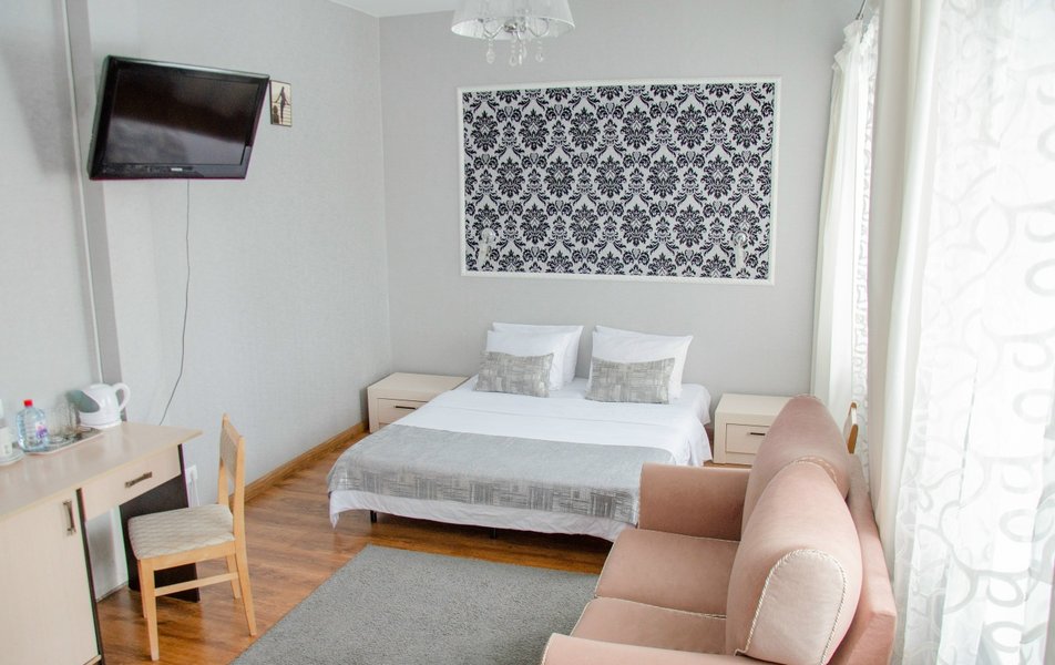 Стандартный 2-местный 1-комнатный DBL Количество комнат: 1-комнатный Тип номера: Стандартный Кол-во основных мест: 2 Мебель: вешалка, зеркало, кровать двуспальная, прикроватные тумбочки, стол, стулья, шкаф Оборудование: телевизор, чайный набор посуды, электрочайник Санузел: с душем, туалетные принадлежности Сервис: Wi-Fi бесплатно