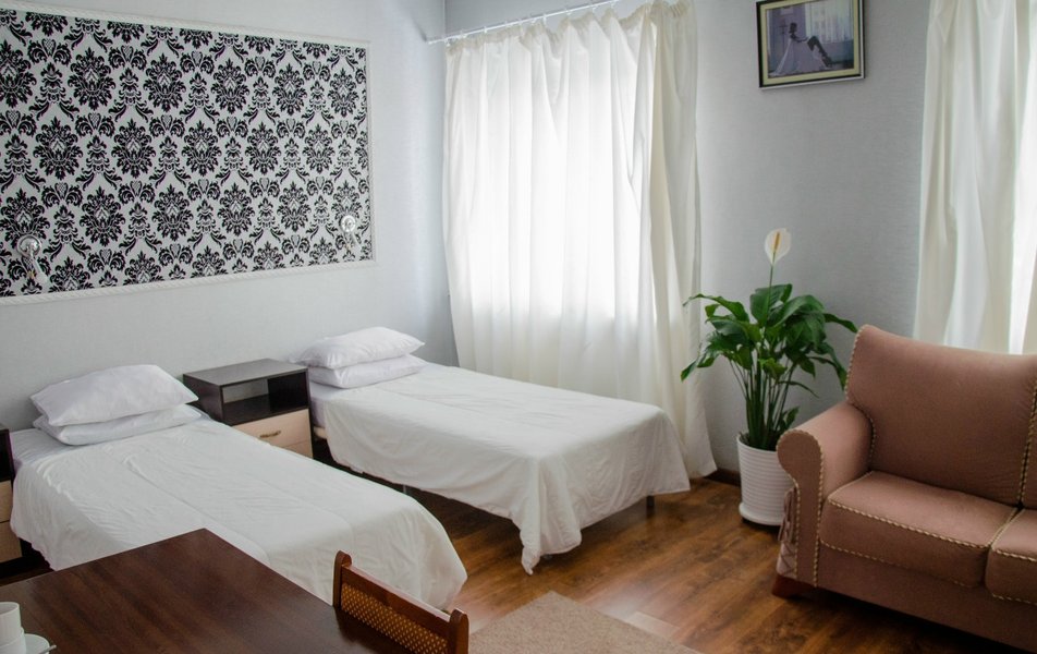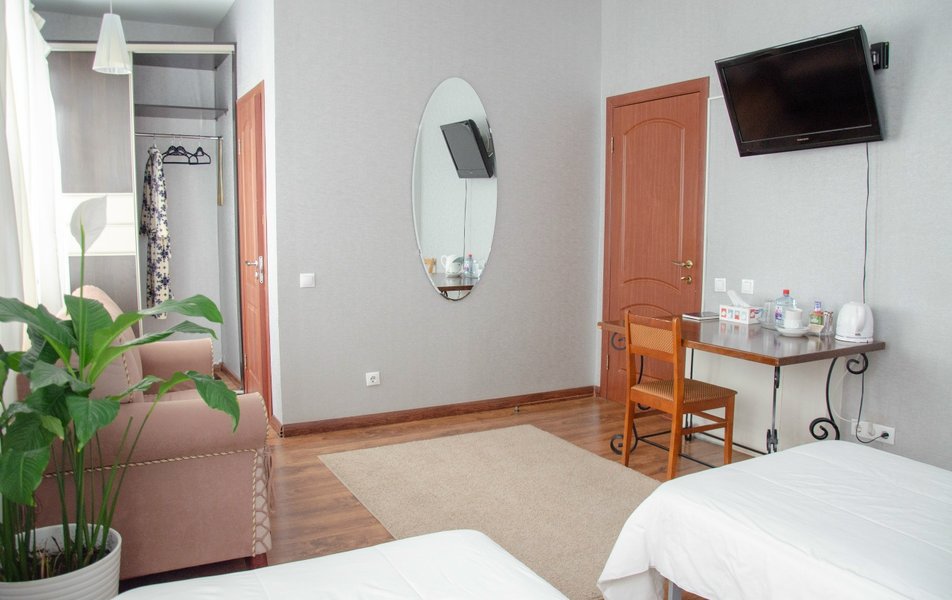 Стандартный 2-местный 1-комнатный TWIN Количество комнат: 1-комнатный Тип номера: Стандартный Кол-во основных мест: 2 Мебель: вешалка, зеркало, кровати односпальные, прикроватные тумбочки, стол, стулья, шкаф Оборудование: телевизор, чайный набор посуды, электрочайник Санузел: с душем, туалетные принадлежности Сервис: Wi-Fi бесплатно